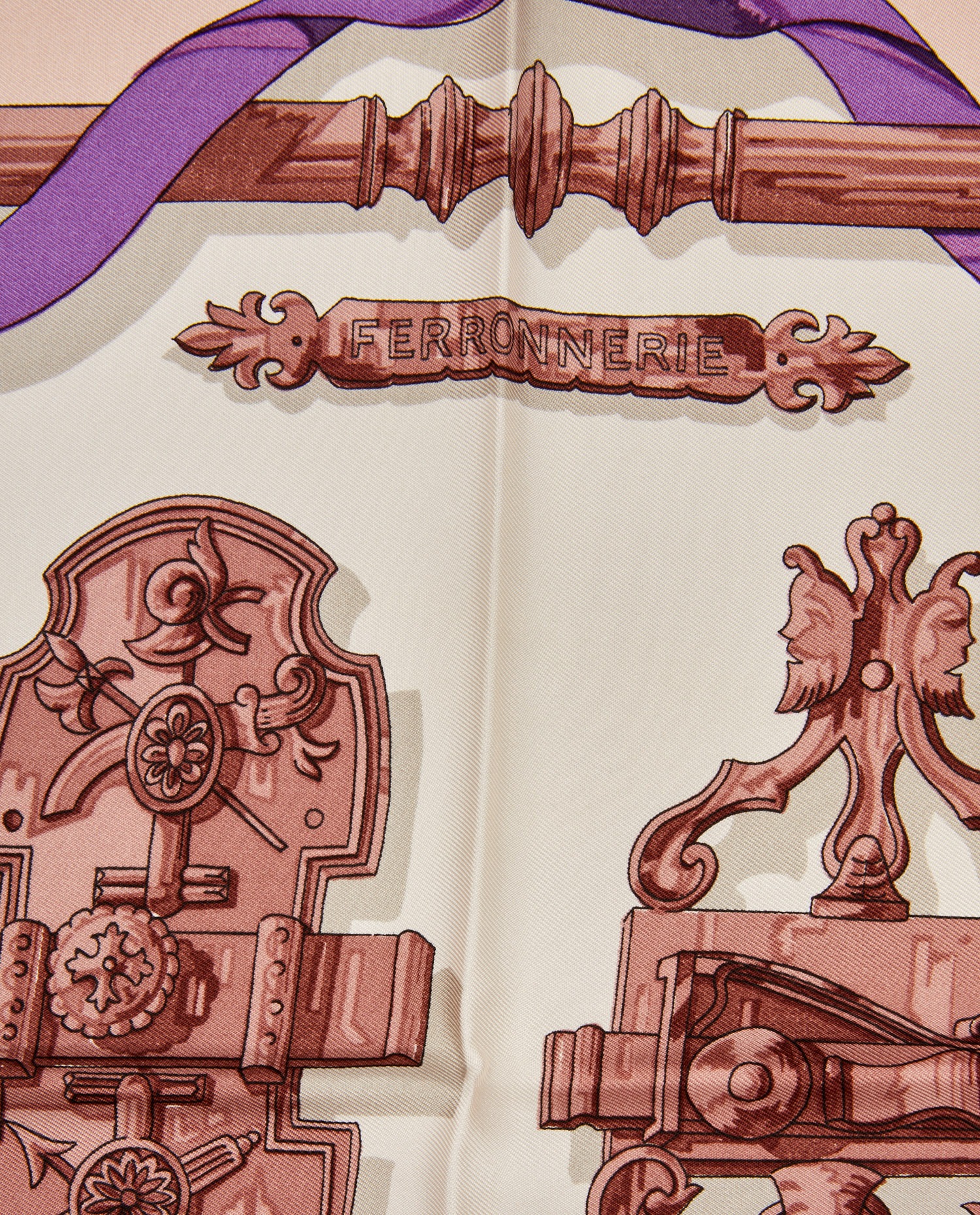Carré Hermès en soie “Ferronnerie”. En bon état. Quelques petites tâches sont visibles voir les photos.