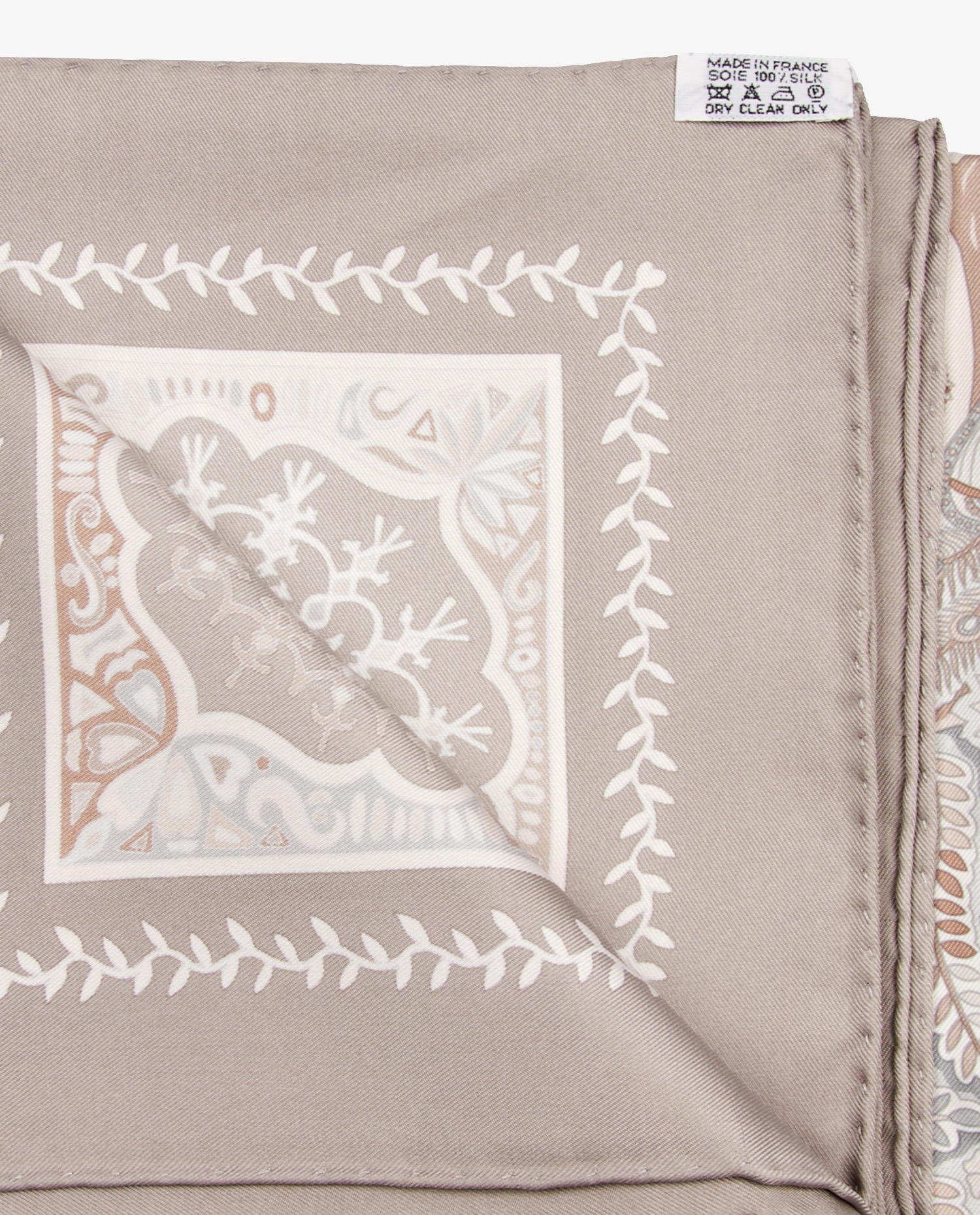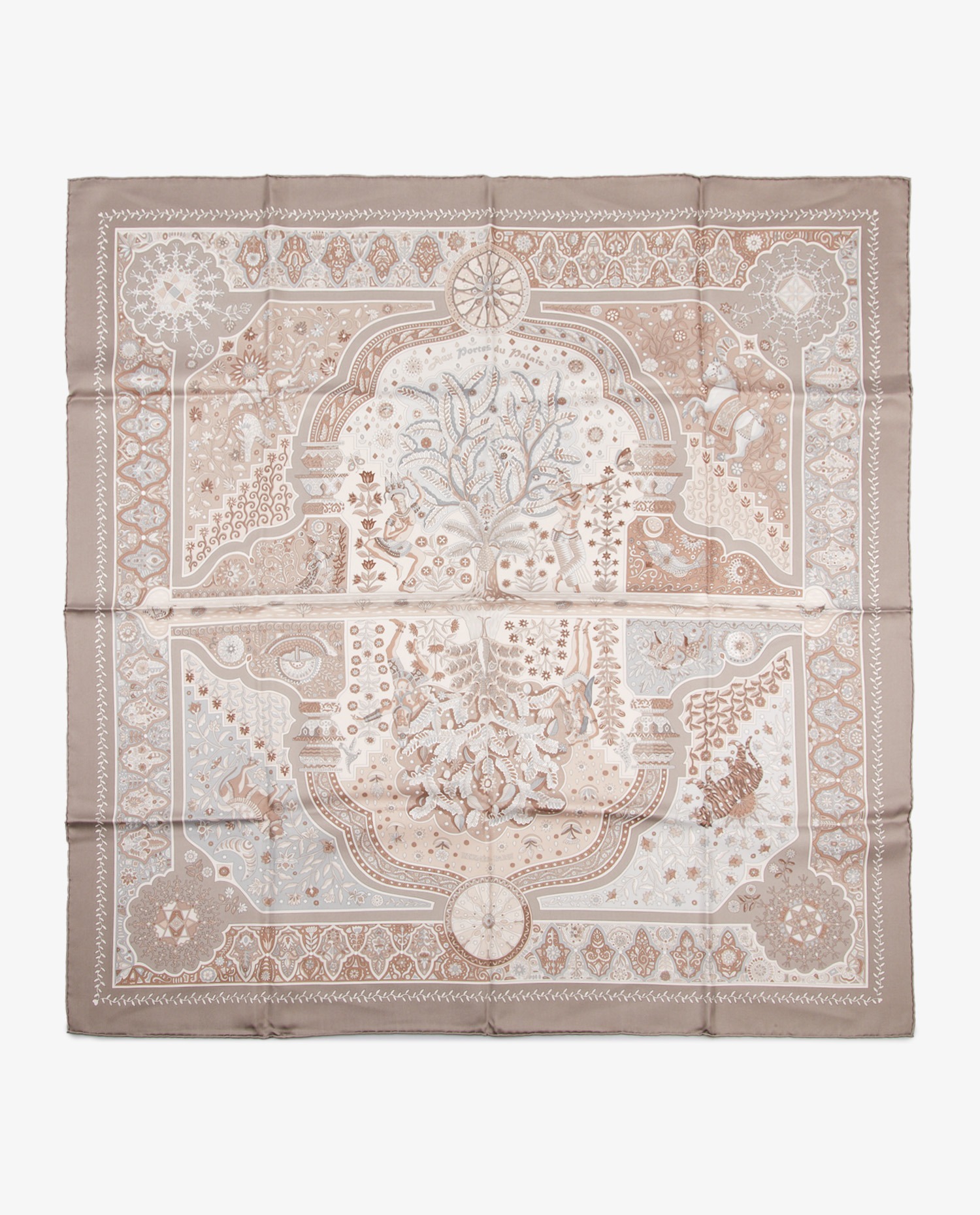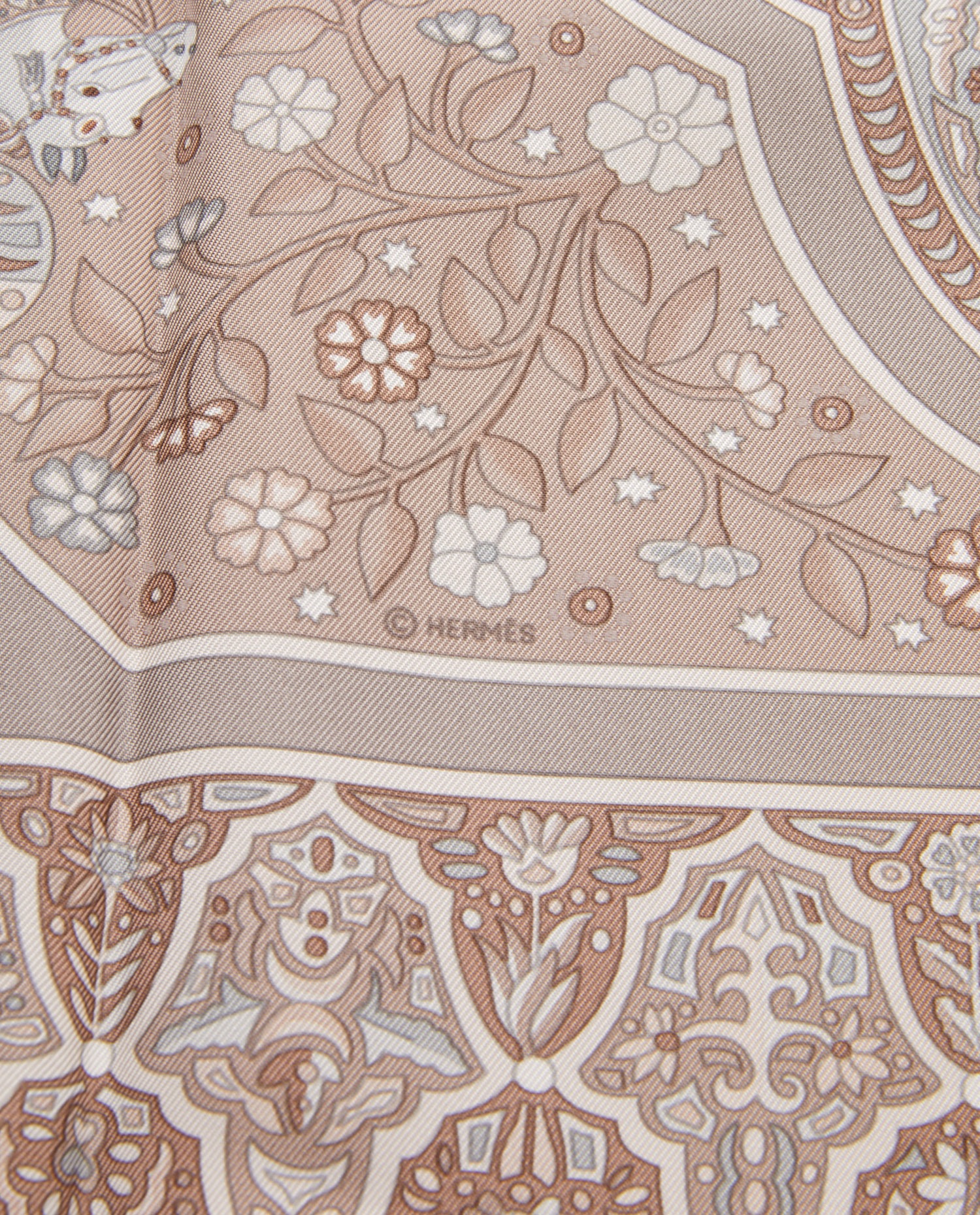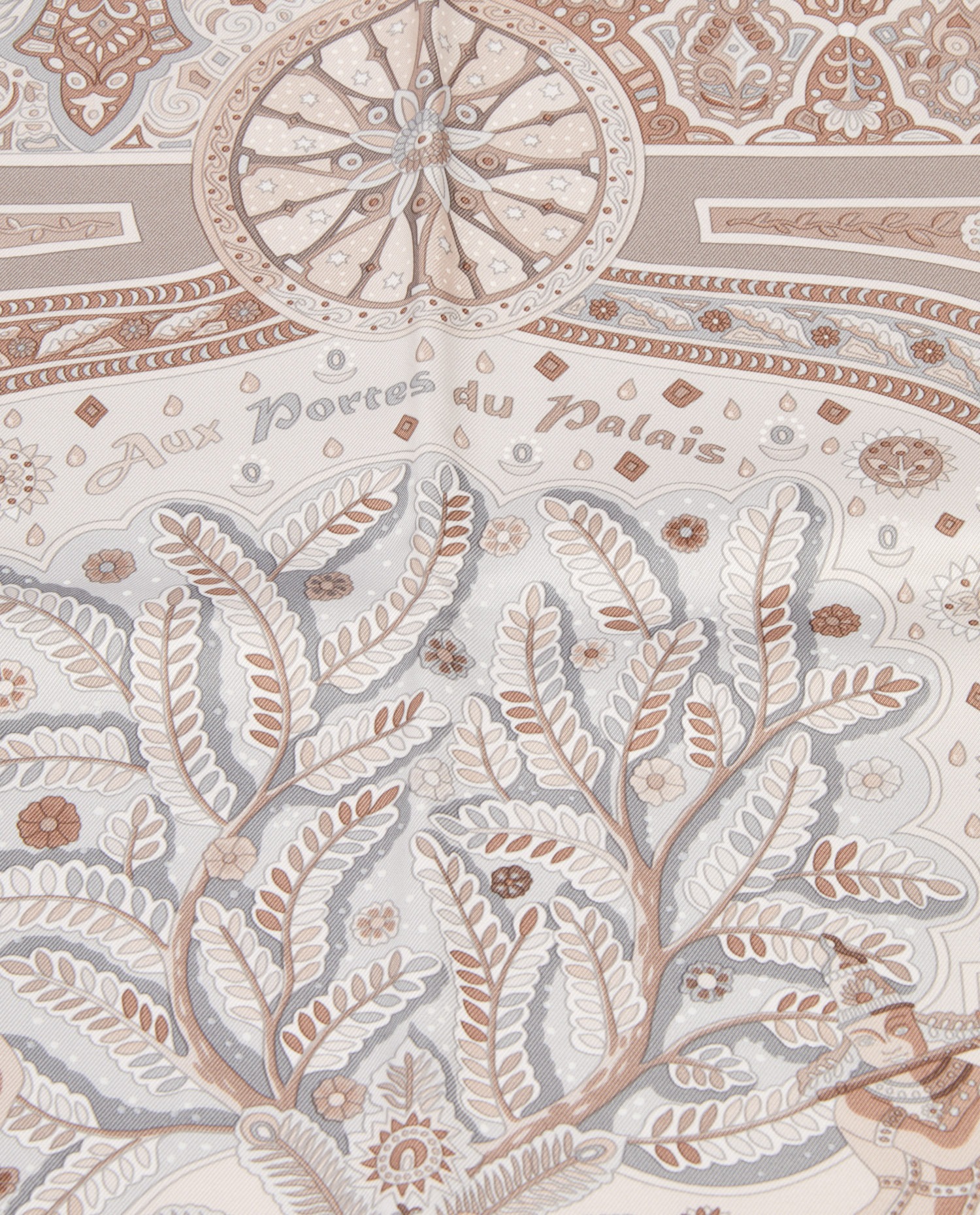 Carré en soie Hermès “Aux portes du Palais”. En très bon état.