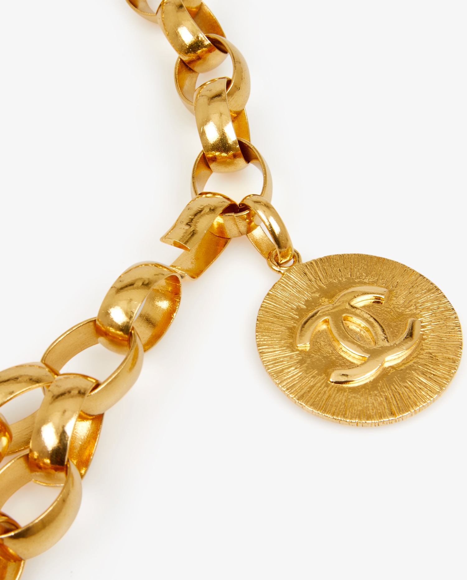 Ceinture sautoir Chanel vintage. Gros maillons dorés. En très bon état.