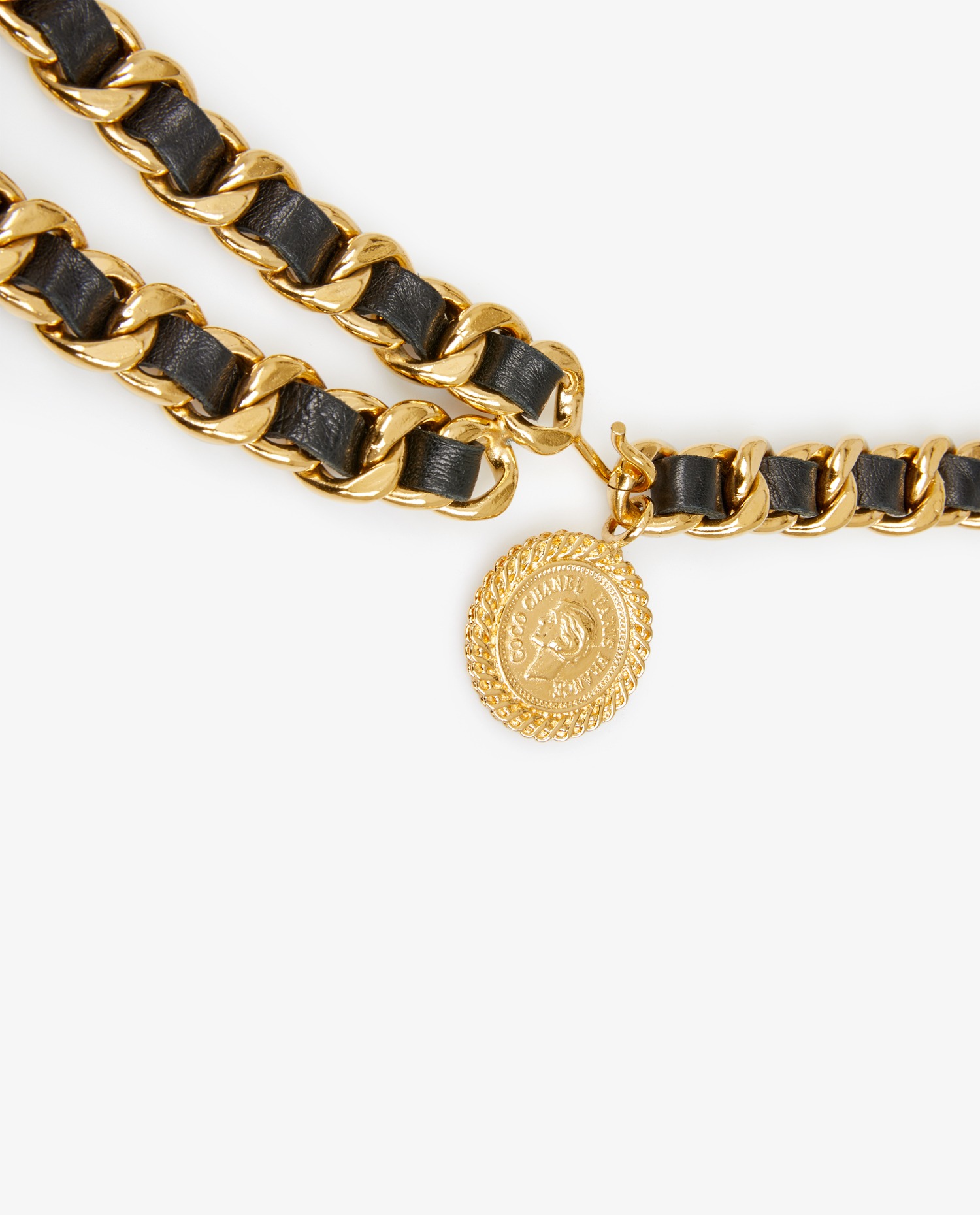Ceinture Chanel double rangs, chaine et cuir. En très bon état.
