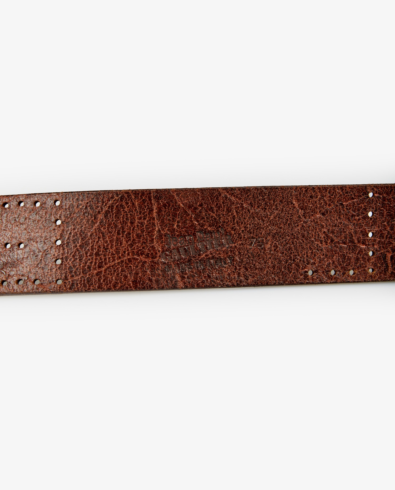 Ceinture Jean Paul Gaultier en cuir marron perforé. Boucle argent. Taille 75. En très bon état.