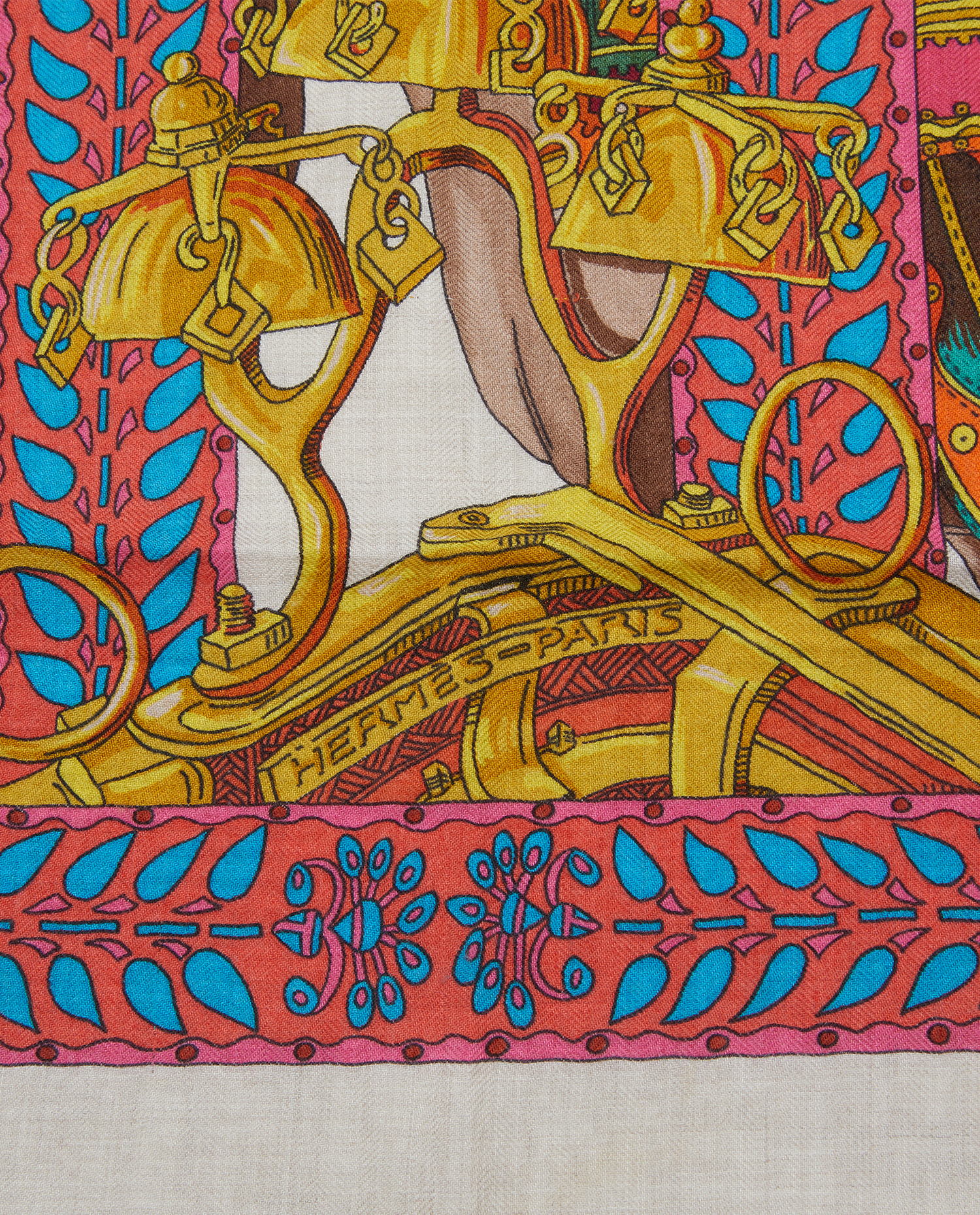 Châle Hermès en cachemire “La danse du cheval Marwari”. En très bon état.