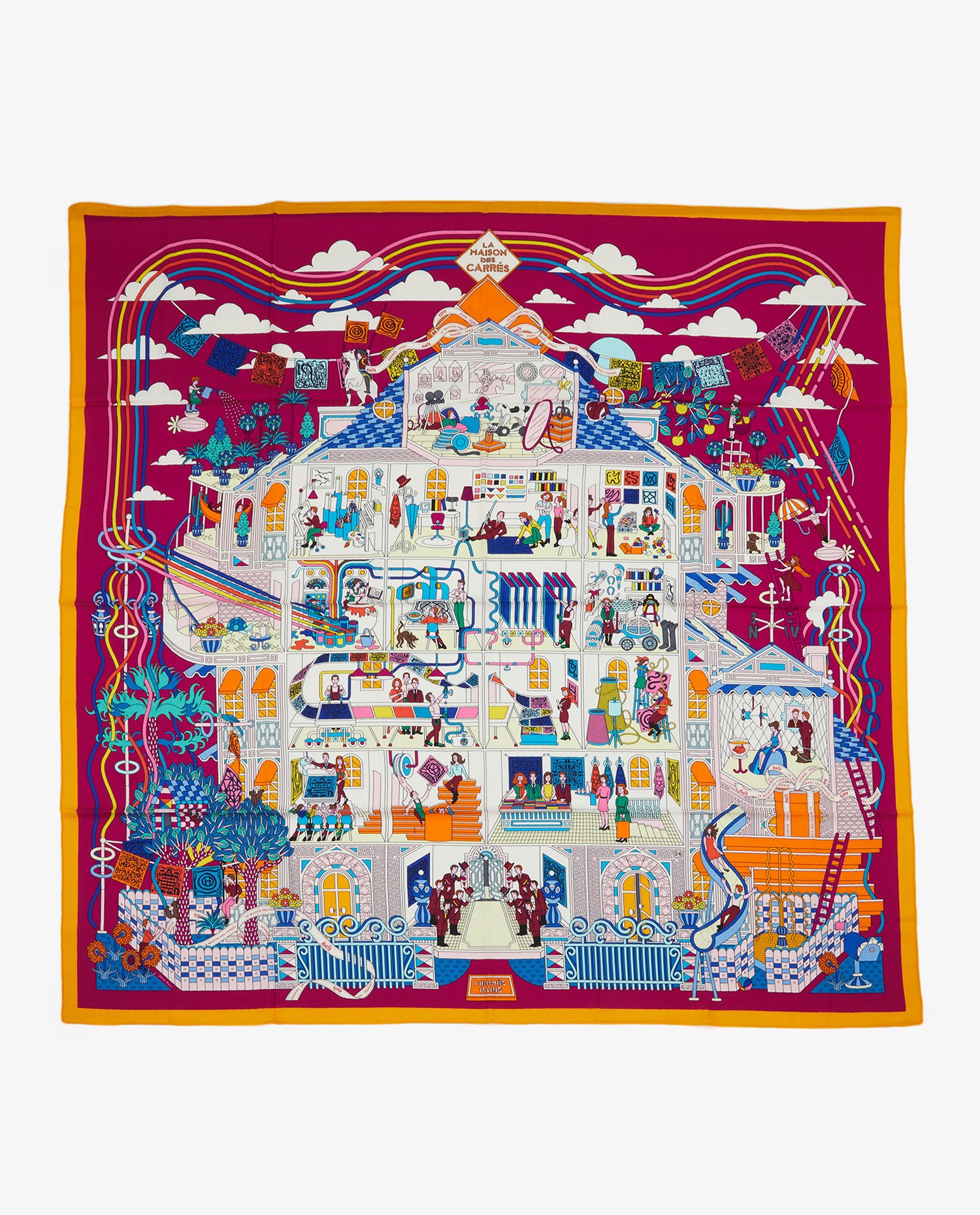 Châle Hermès “La Maison des carrés” en cachemire et soie. Jamais porté.