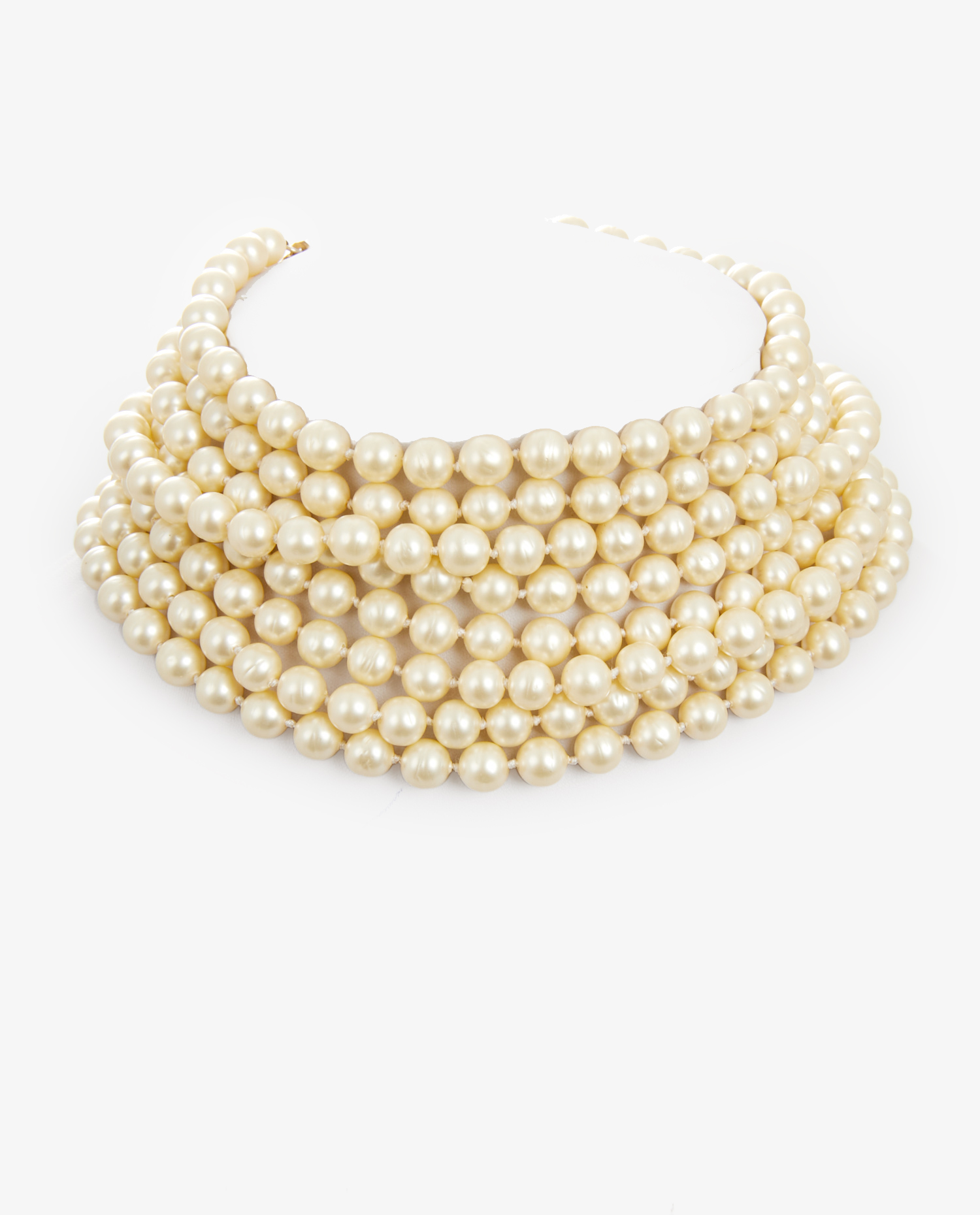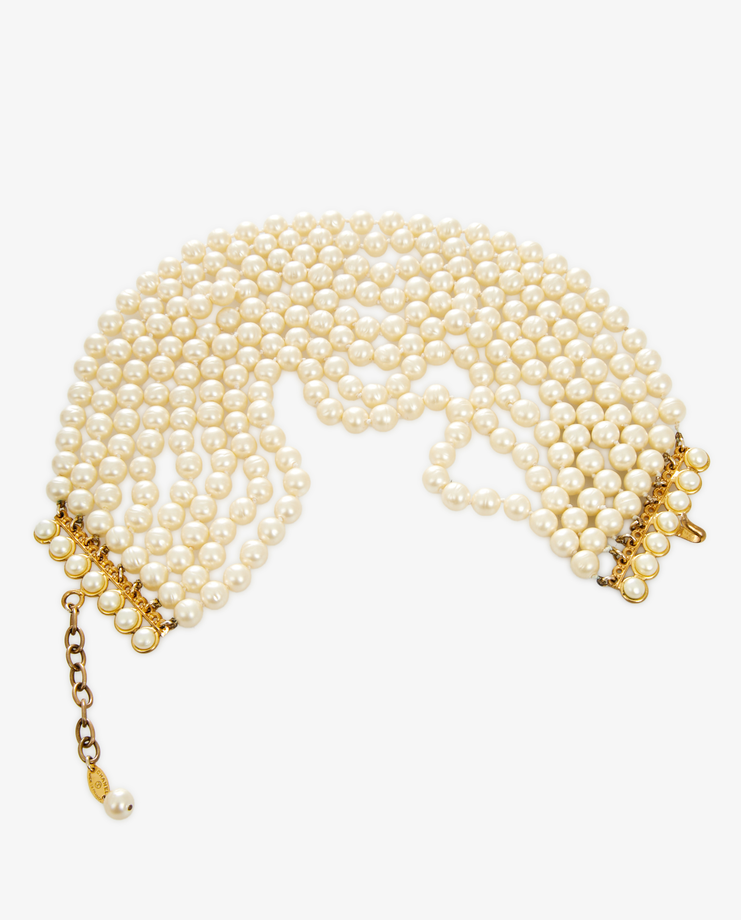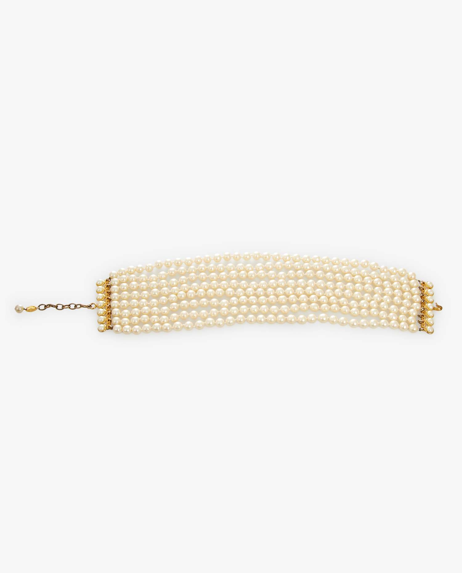 Choker perles Chanel vintage avec 8 rangs de perles. En très bon état. Livré dans sa boite d’origine.
