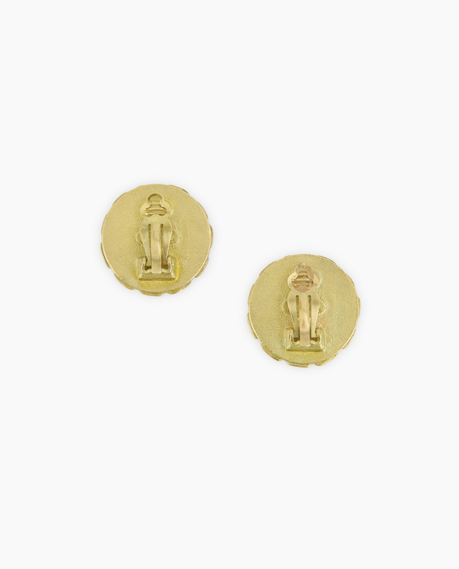 Pour préserver leur dorure et l’émail central, il est conseillé d’éviter le contact avec l’eau, les parfums et les produits cosmétiques. Ranger les clips dans une boîte à bijoux individuelle, à l’abri de l’humidité et de la lumière directe. Un chiffon doux peut être utilisé pour raviver leur éclat sans risque de rayure.