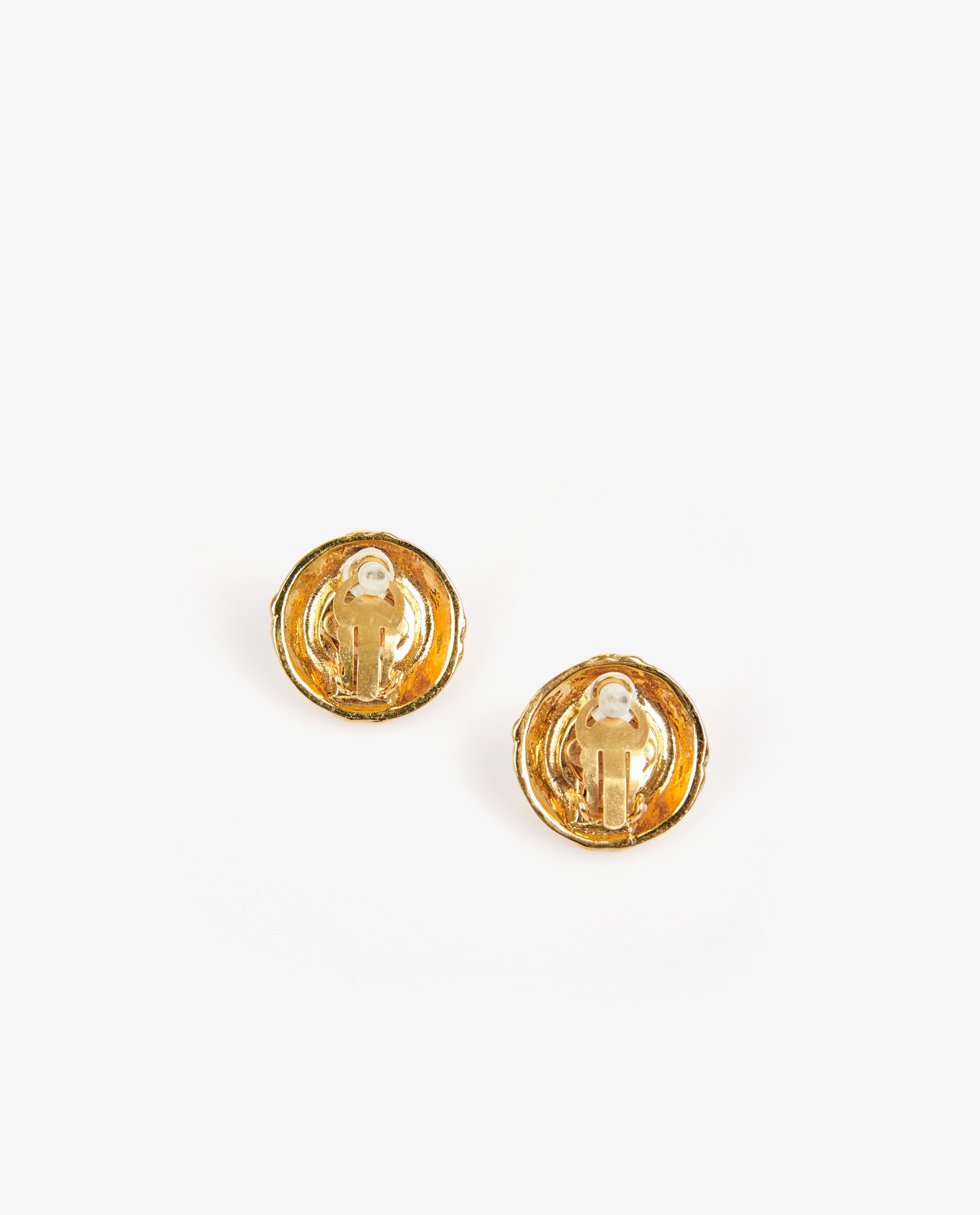 Clips Chanel perles blanches. Datant de la collection Printemps/été 1994. En très bon état. Légères rayures sur les perles.