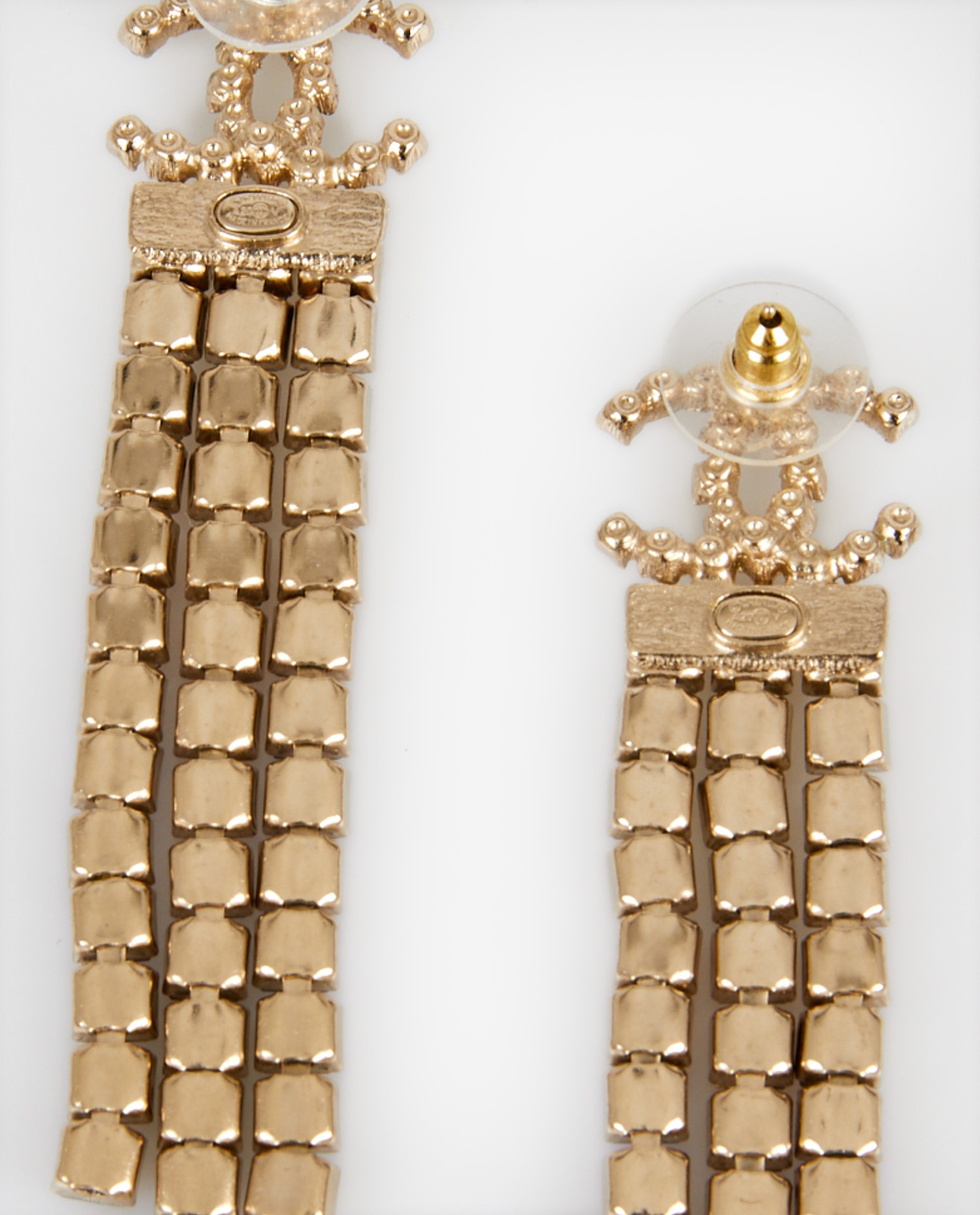 Clous pendants Chanel strass multicolore. Idéal pour habiller vos soirées glamour. En très bon état.