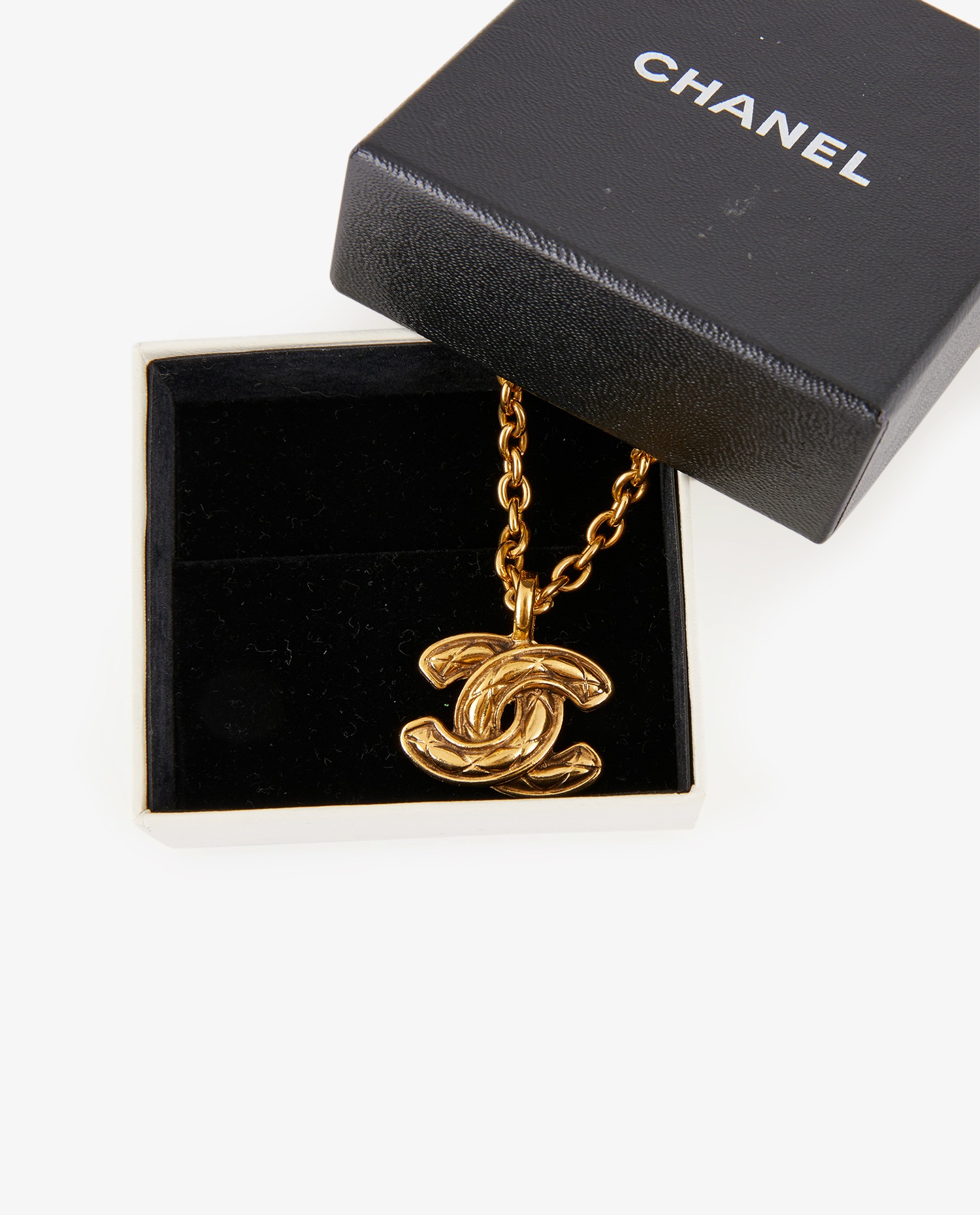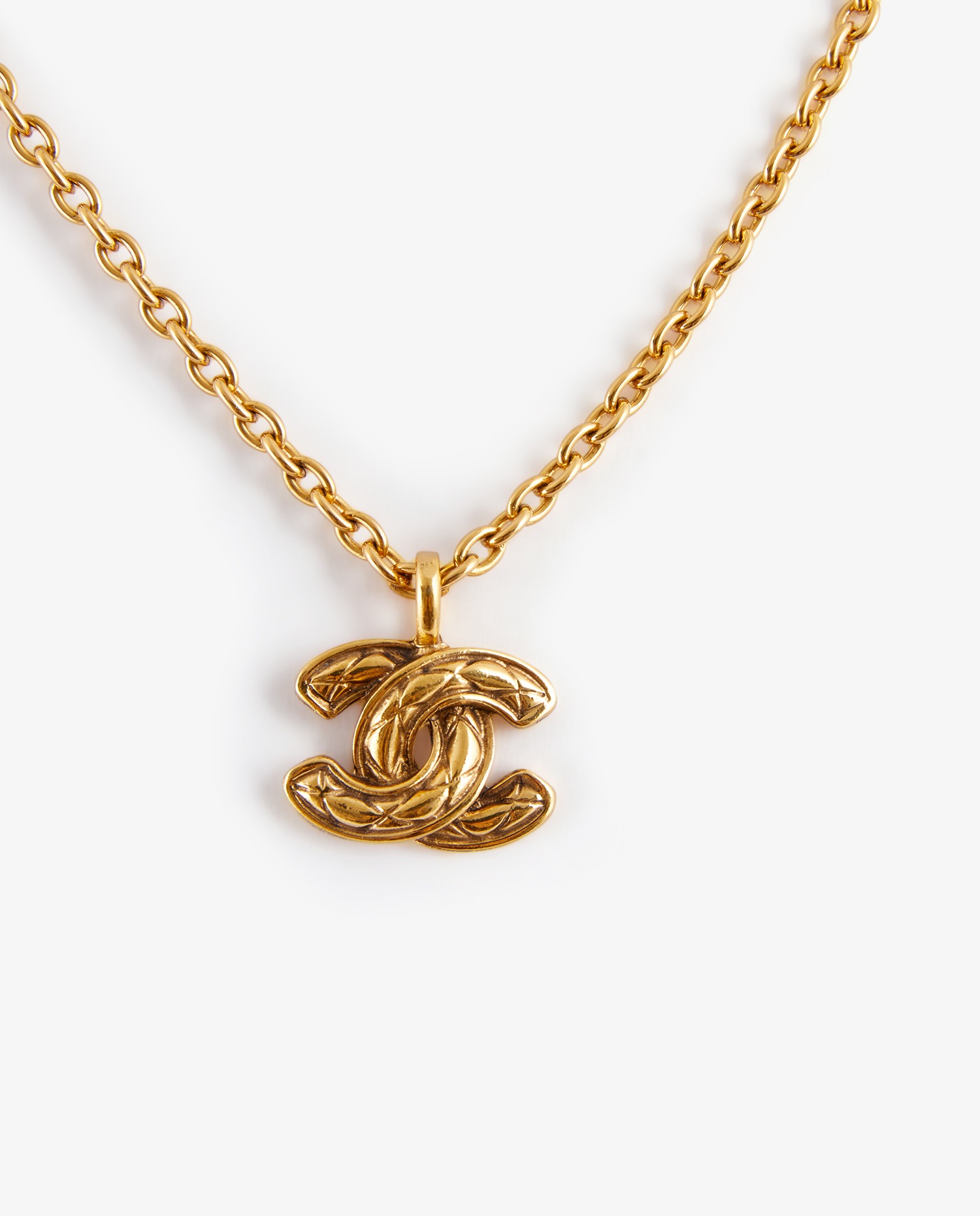 Collier Chanel CC vintage doré. Le CC est matelassé. En très bon état.