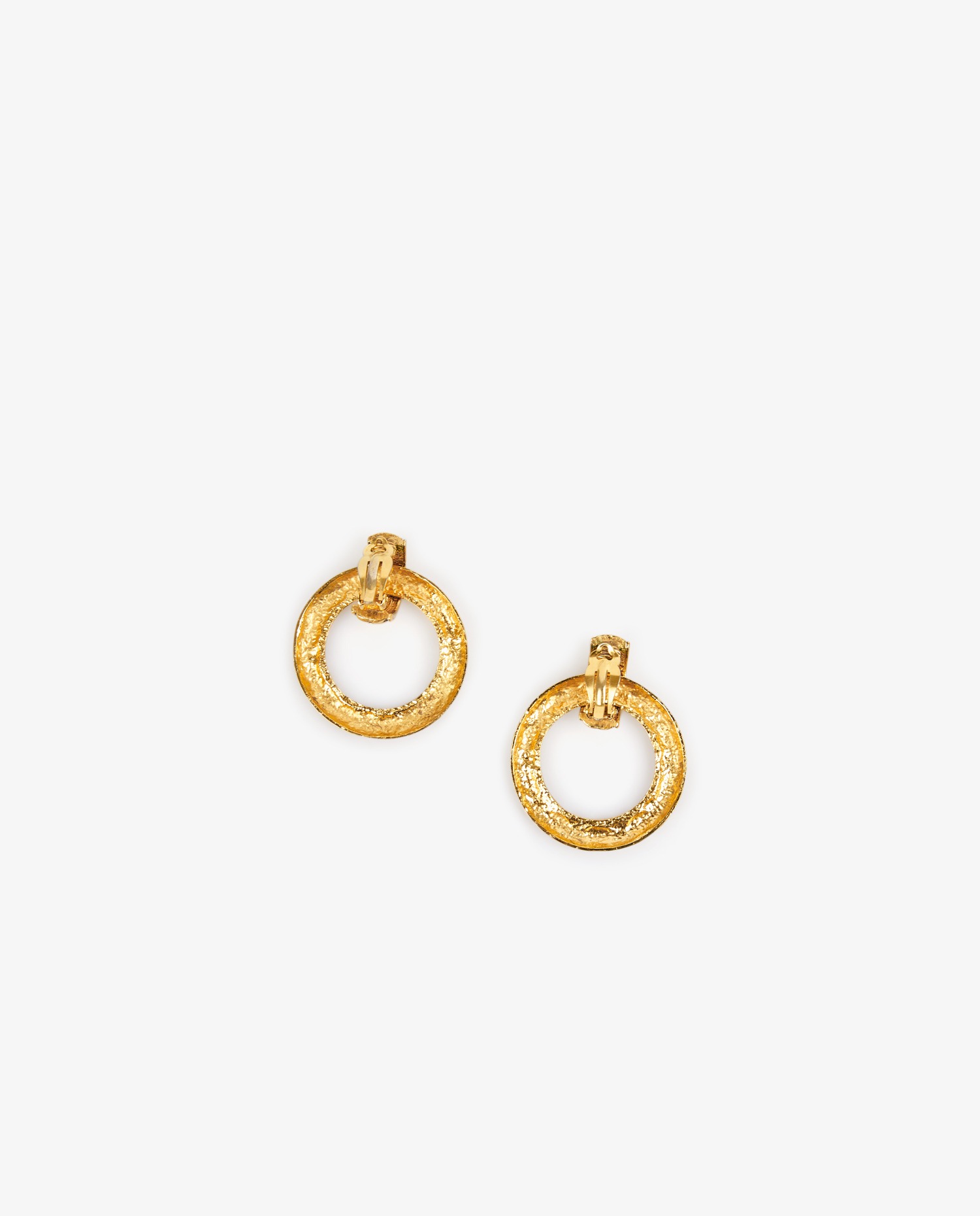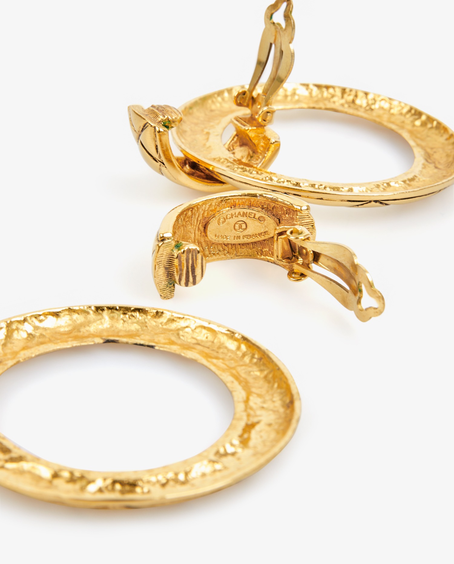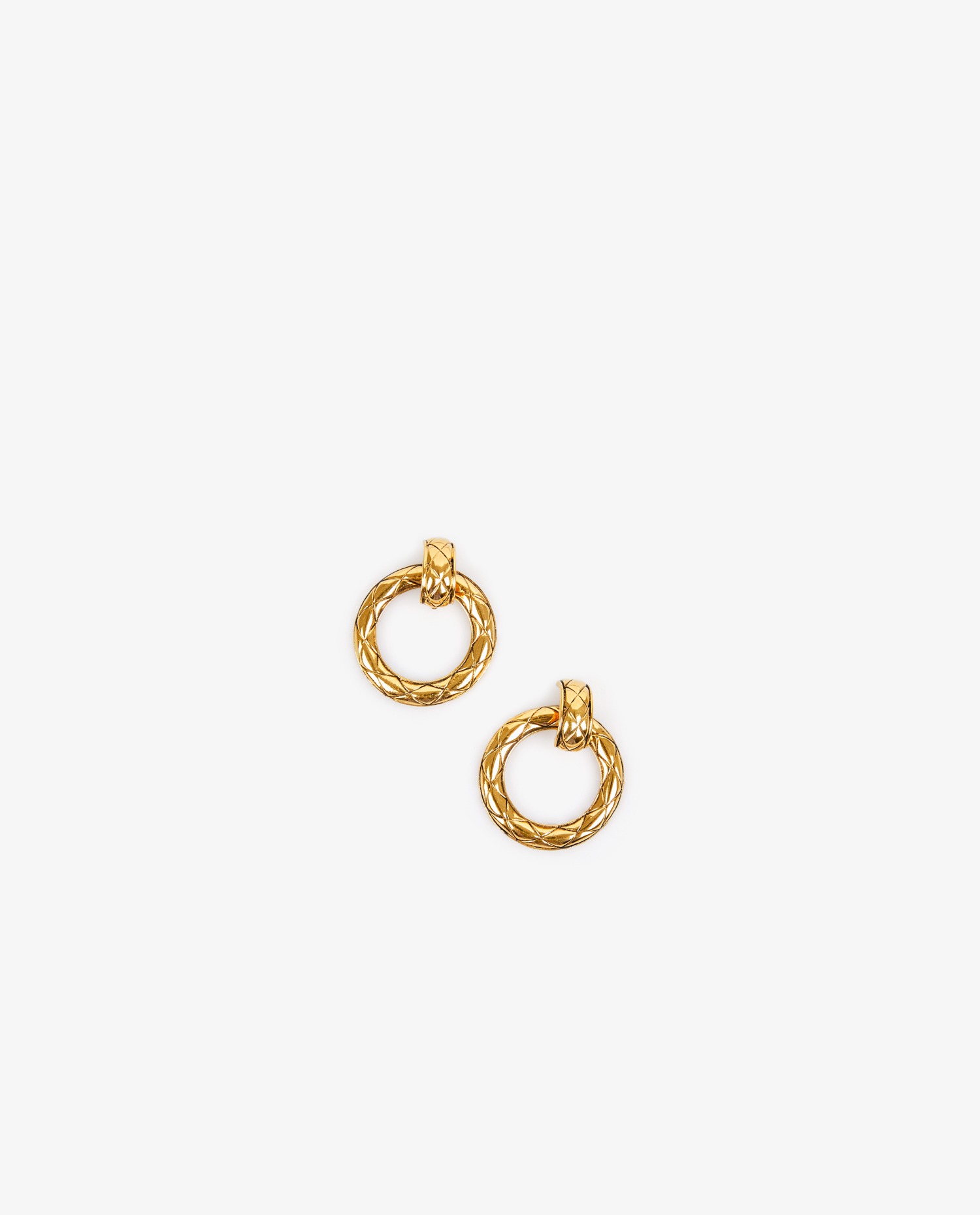 Créoles Chanel en métal matelassé doré vintage. En très bon état.