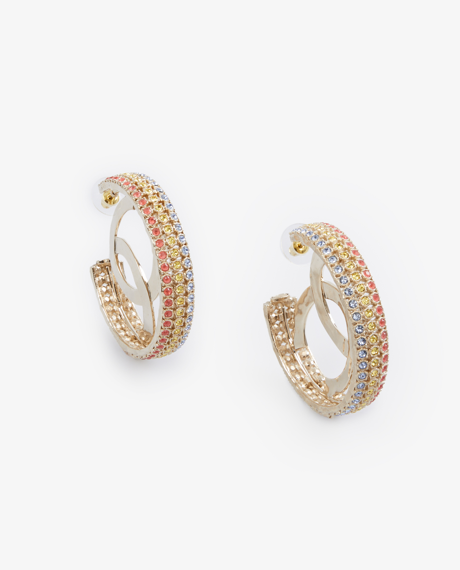 Créoles Chanel strass multicolore. CC en métal. En très bon état.