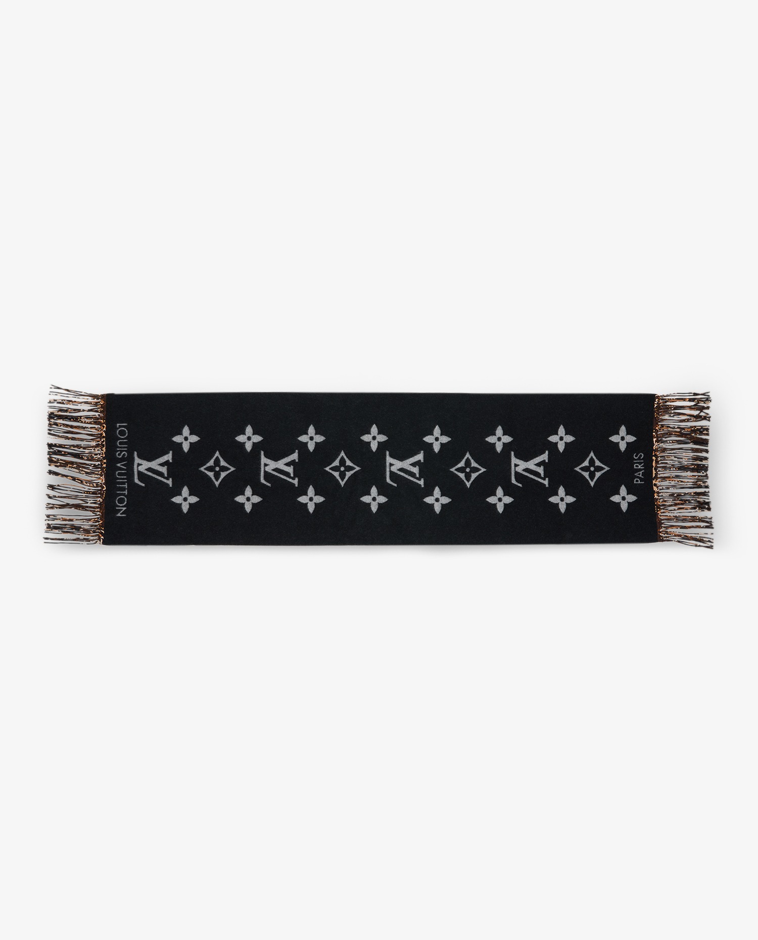 Echarpe Louis Vuitton en cachemire et les franges sont en soie. Etat neuf.