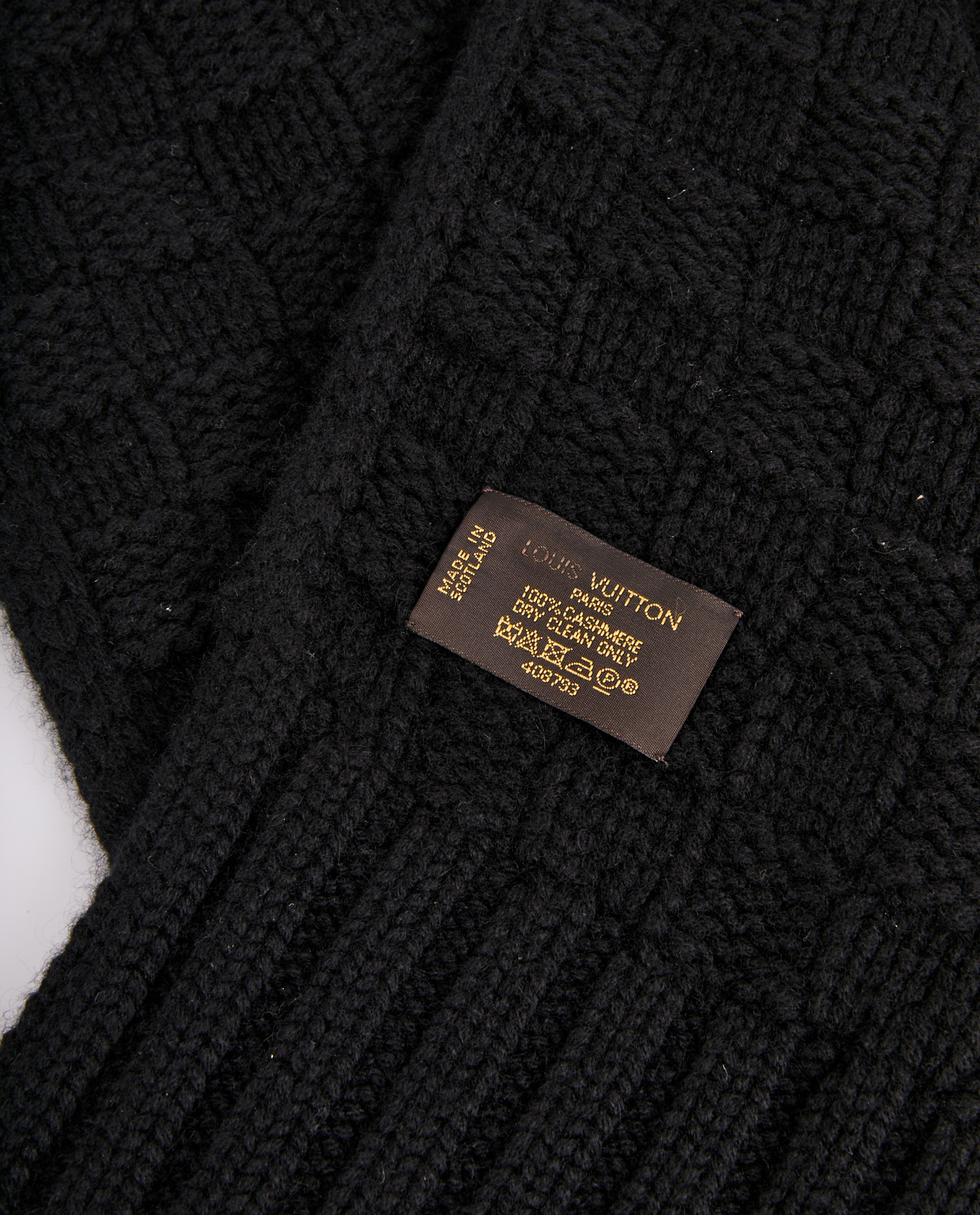 Echarpe Louis Vuitton en tricot cachemire noir. En très bon état.