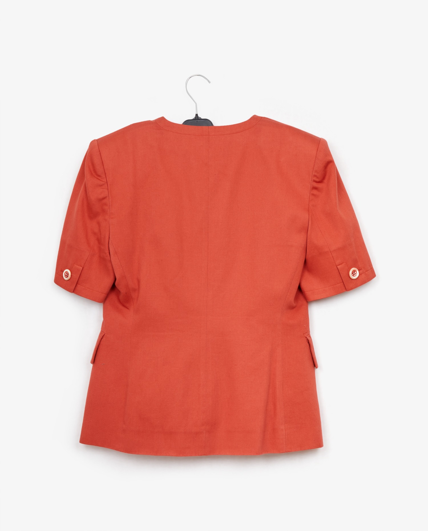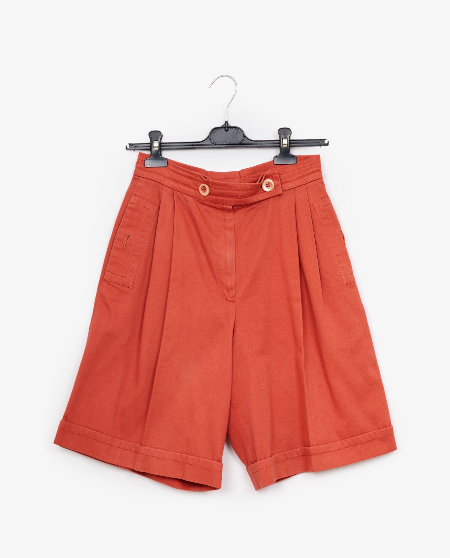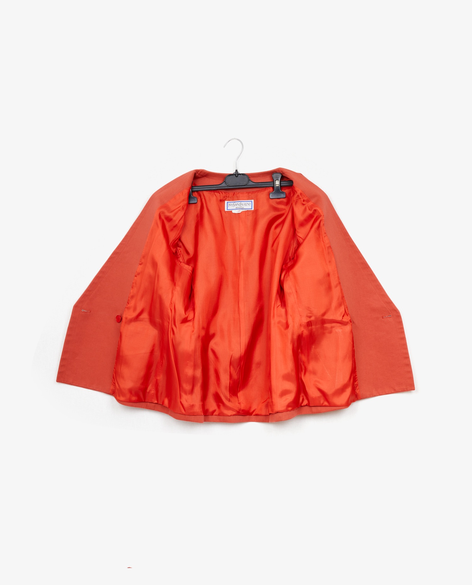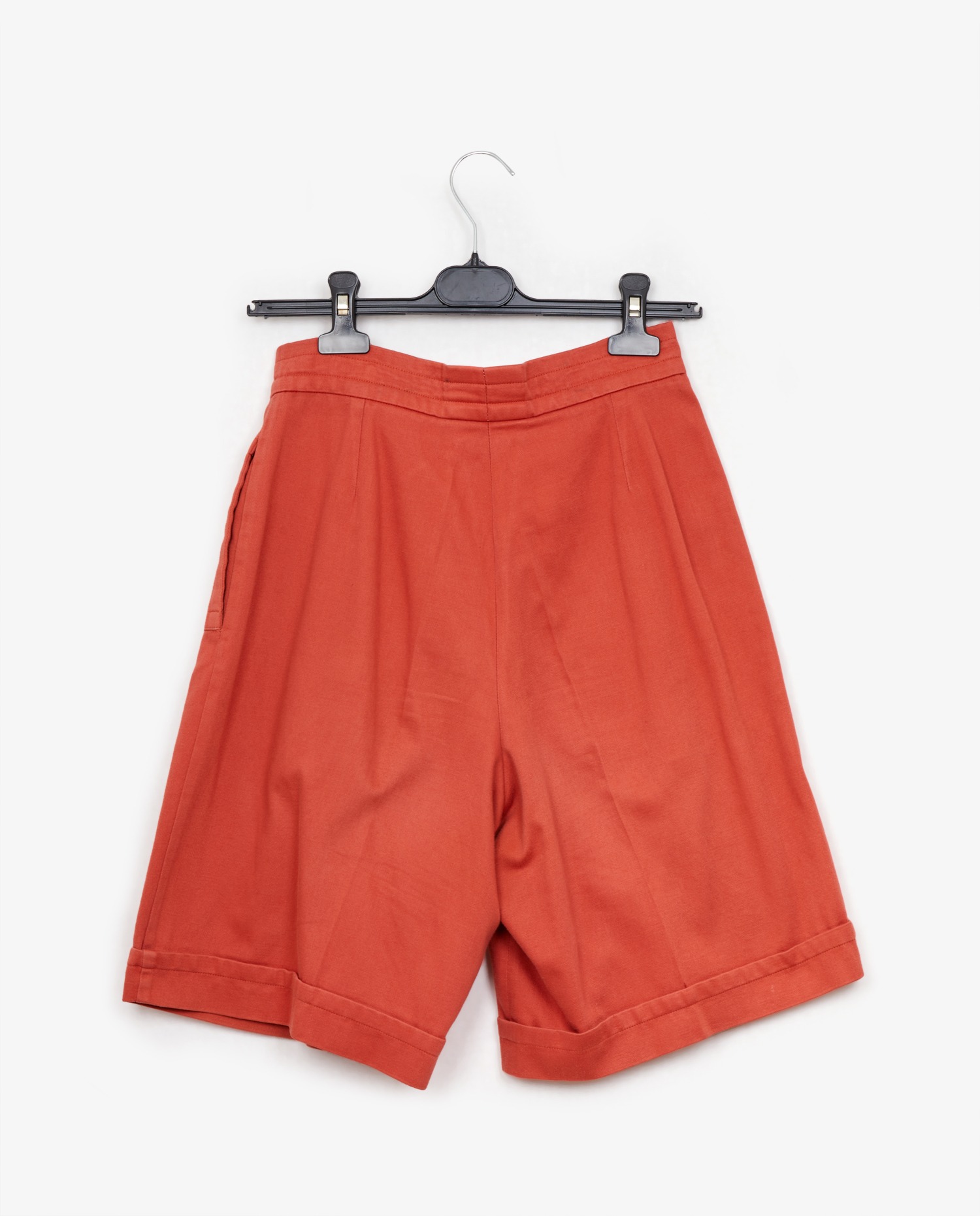 Ensemble veste bermuda Yves Saint Laurent en coton de couleur rouille. Veste croisée manches courtes. Bermuda plissé. En très bon état.