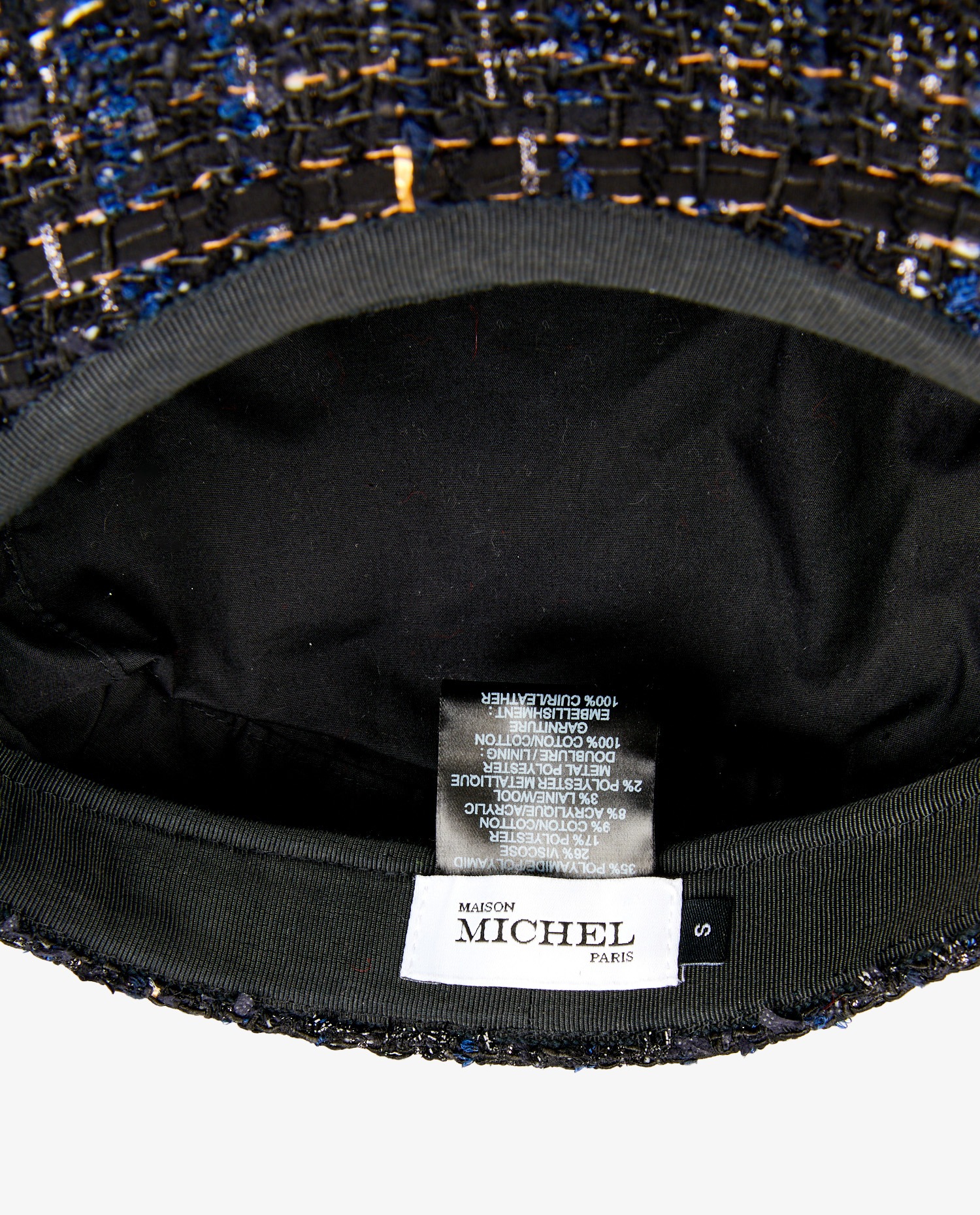 Gavroche Maison Michel en tweed bleu marine avec des fils dorés. Style très Chanel. En très bon état.