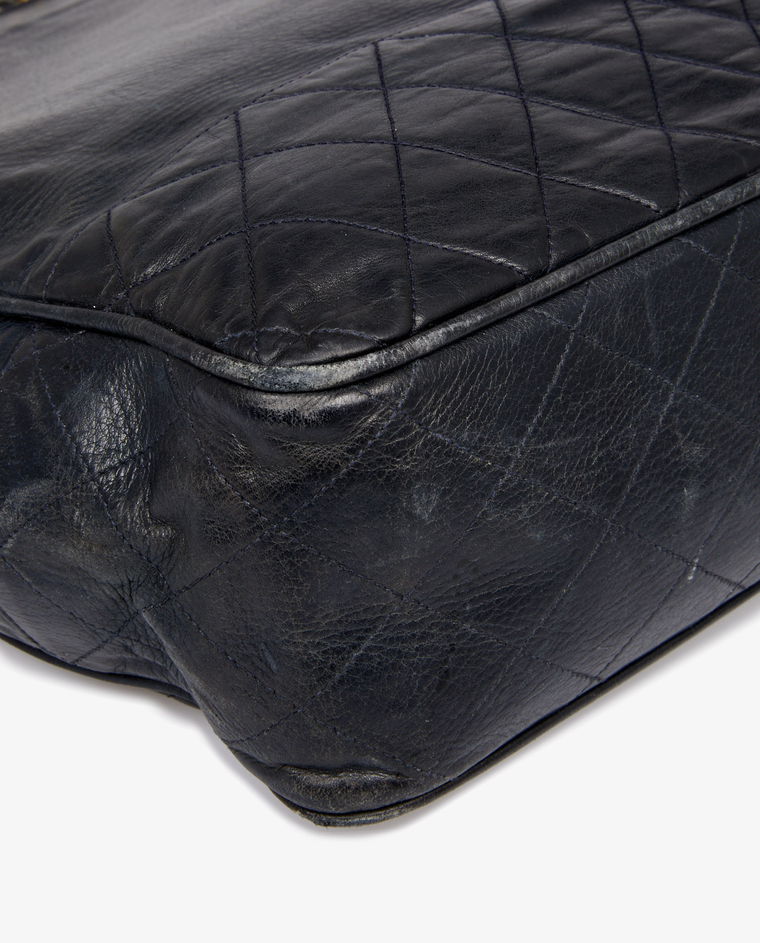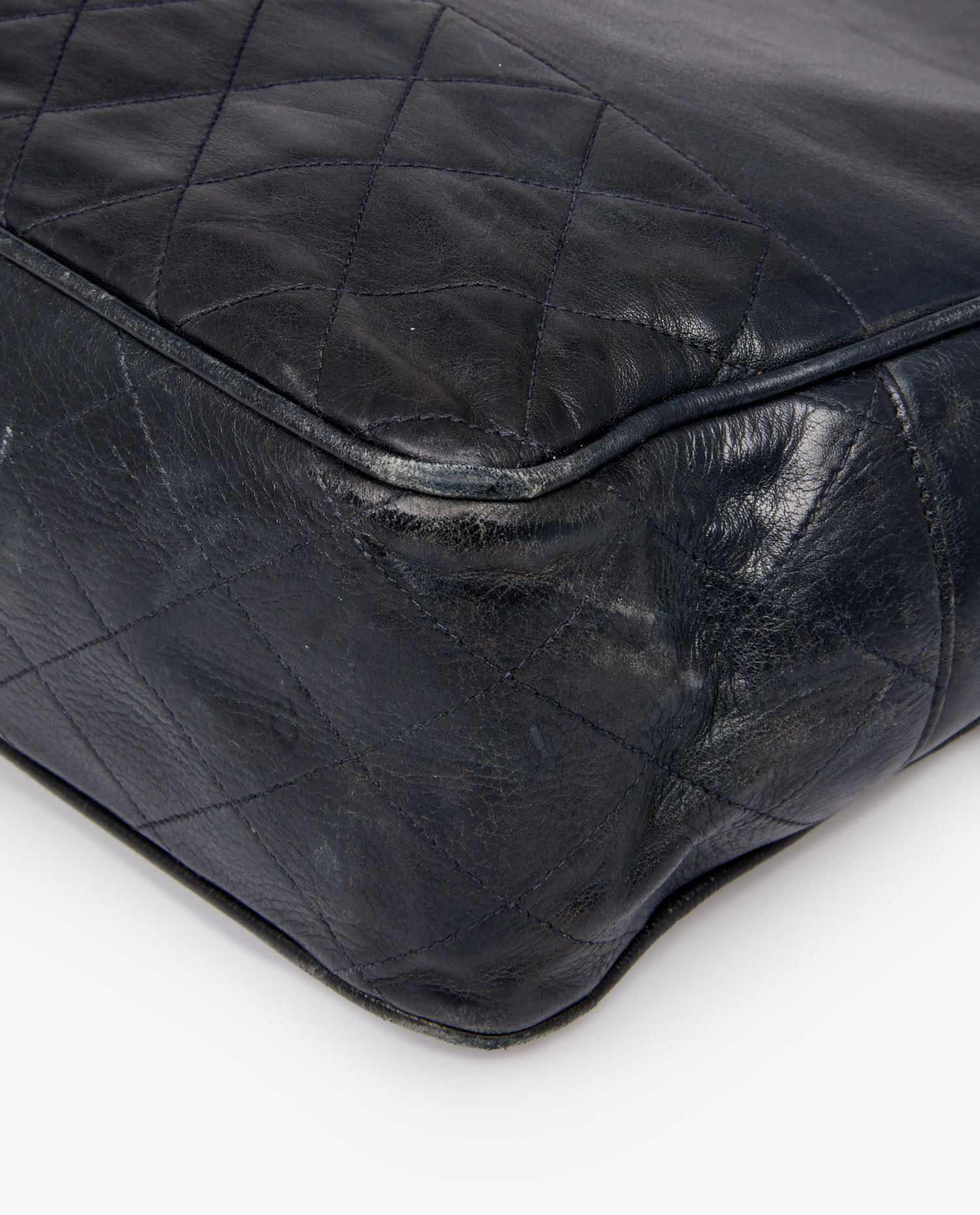 Cabas Chanel vintage en cuir d’agneau noir. Porté épaule. En bon état. Quelques marques d’usure.