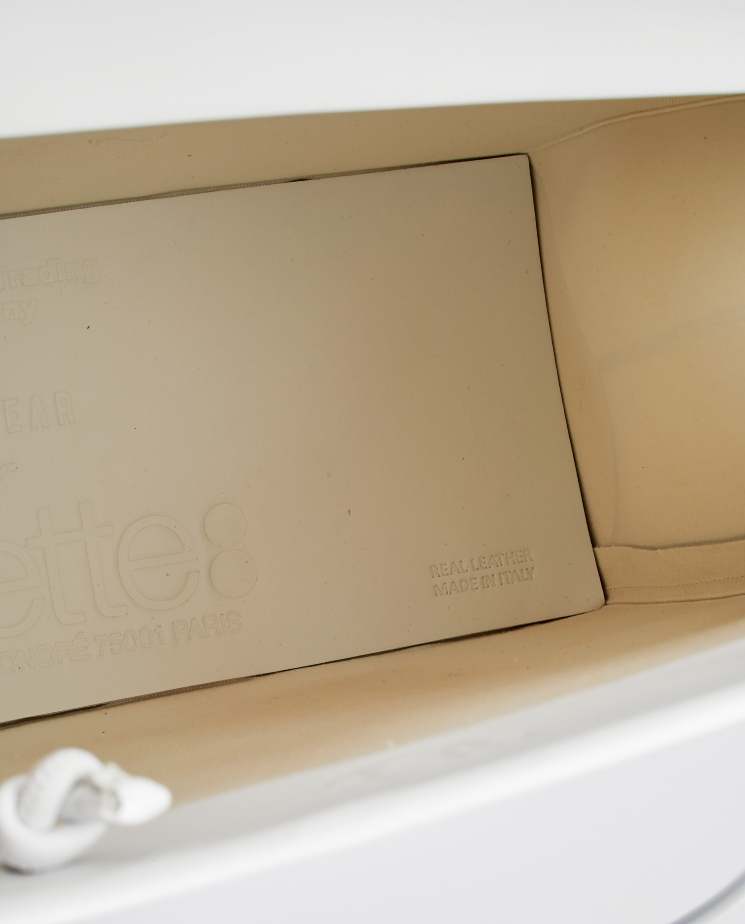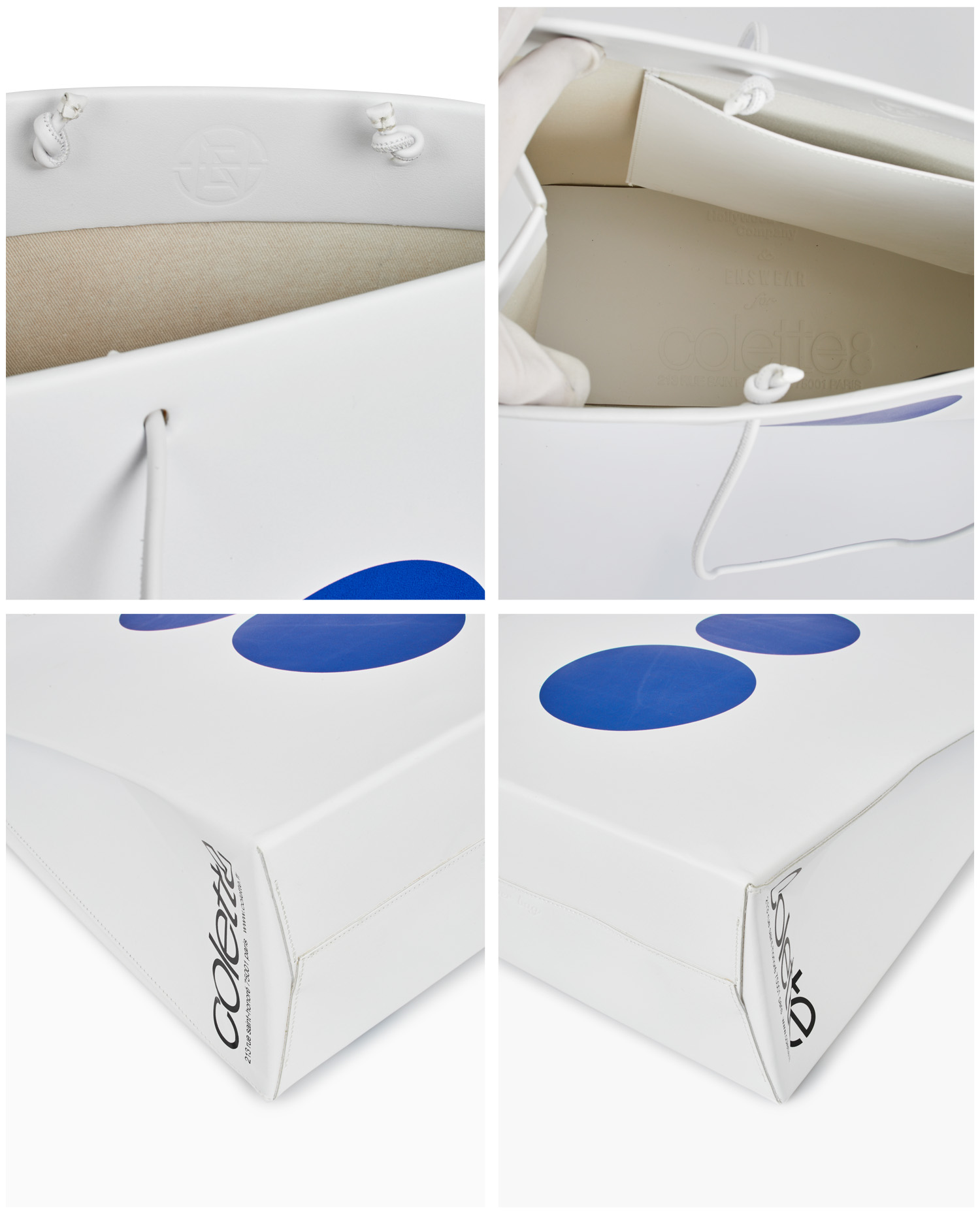 Collector ! Grand cabas Colette en cuir de vache blanc avec les deux ronds emblématiques de la Maison Colette, 213 Rue Saint Honoré. Ce sac née d’une collaboration en 2017 entre la marque Enswear et HTC. Il est produit en deux tailles, chacune en édition limitée de 200 exemplaires. Un modèle est exposé au Musée de la Mode à Paris. Etat neuf. Livré dans son dustbag.