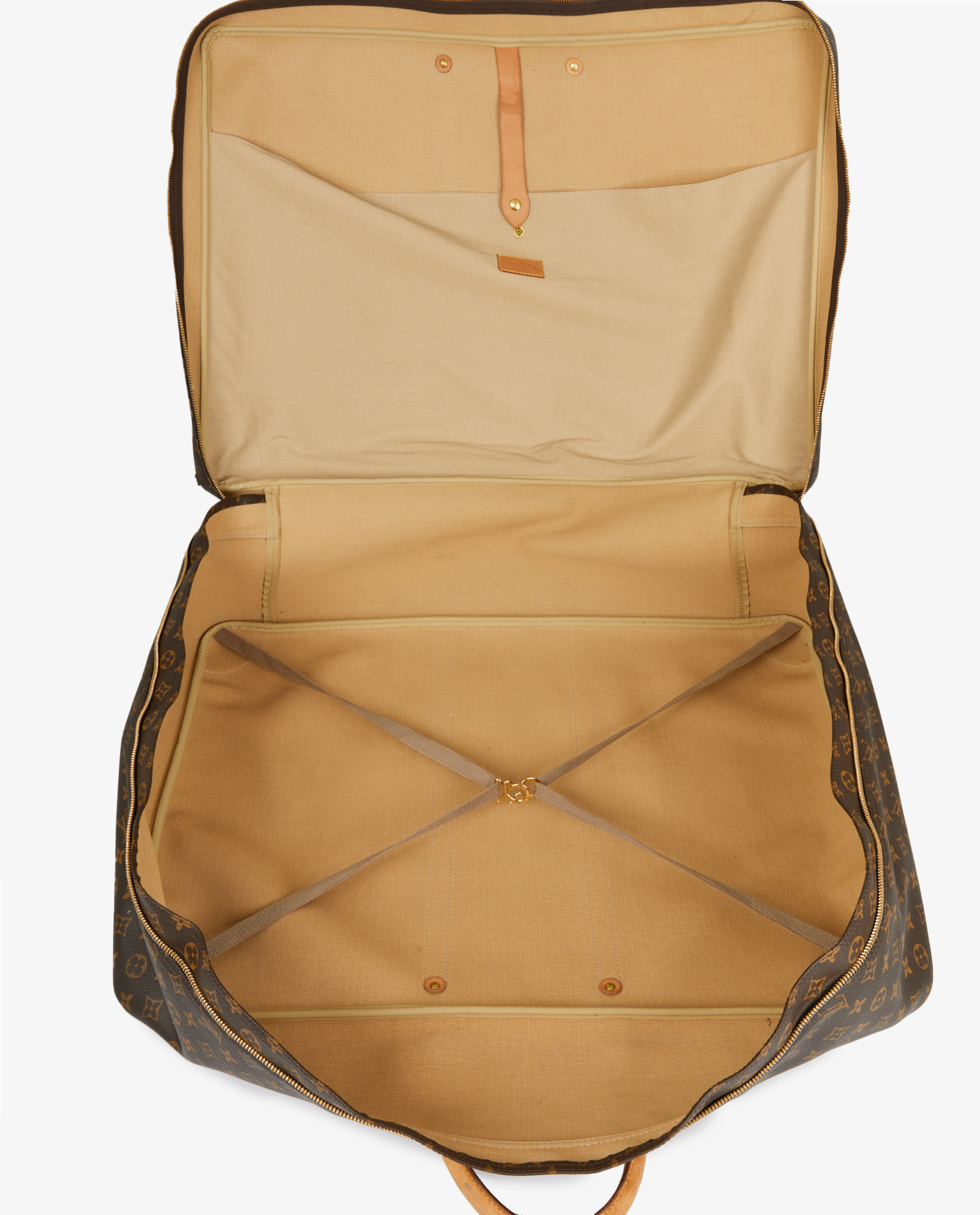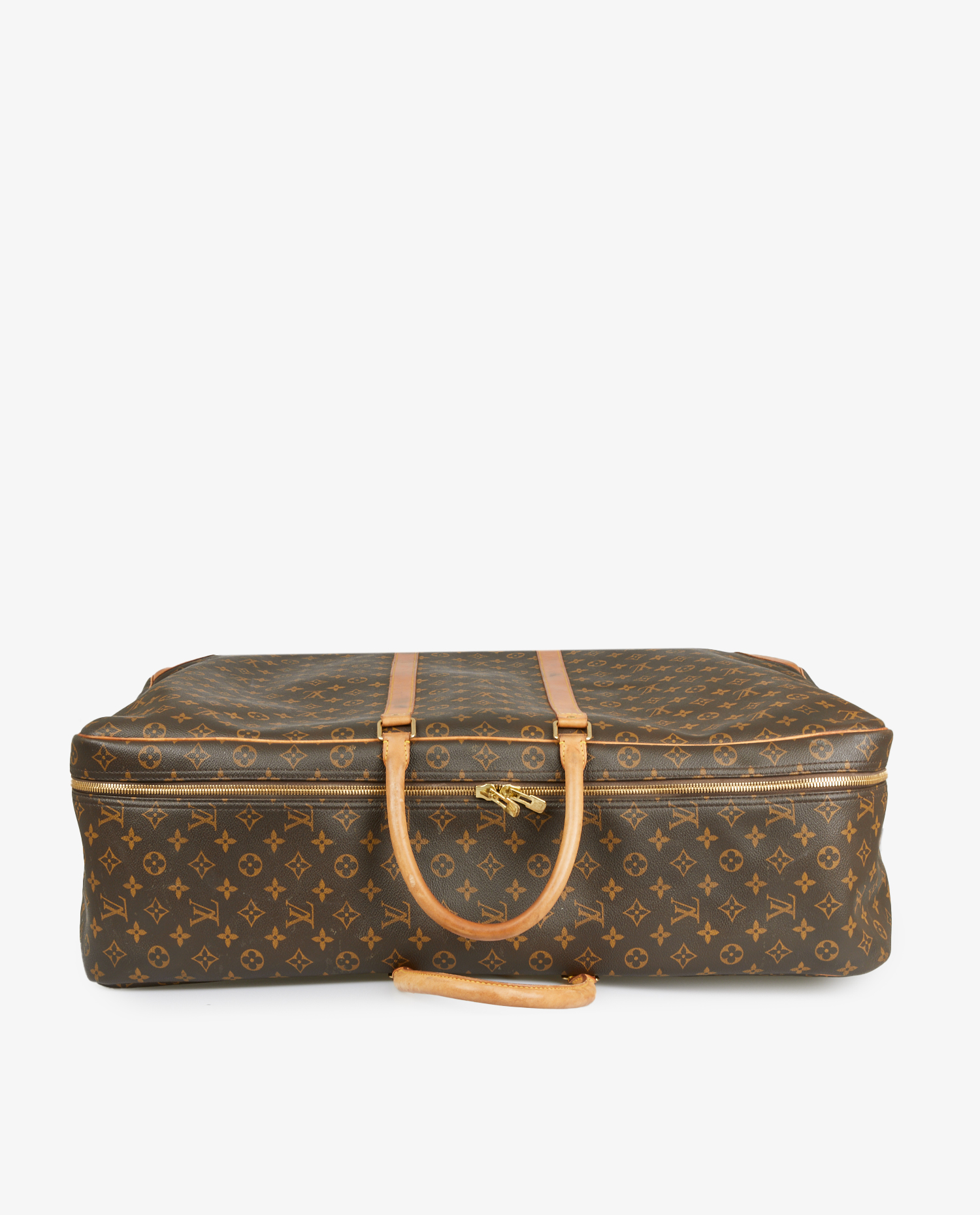 Sac de voyage Sirius 70 Louis Vuitton en toile monogramme et cuir de vache. Fermeture zippée. En très bon état. Quelques marques d’usure d’usage qui ont patinés le cuir. Voir photos.