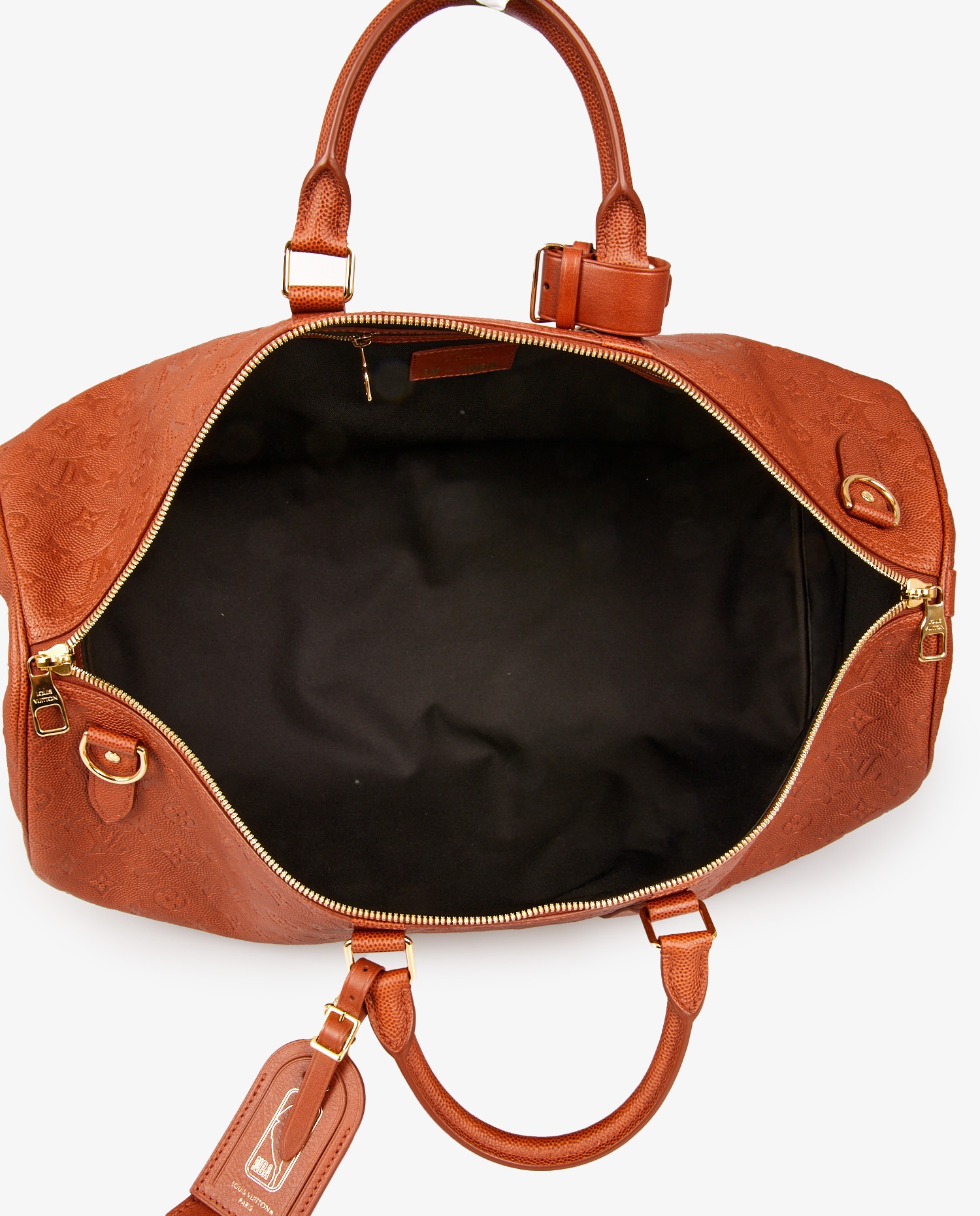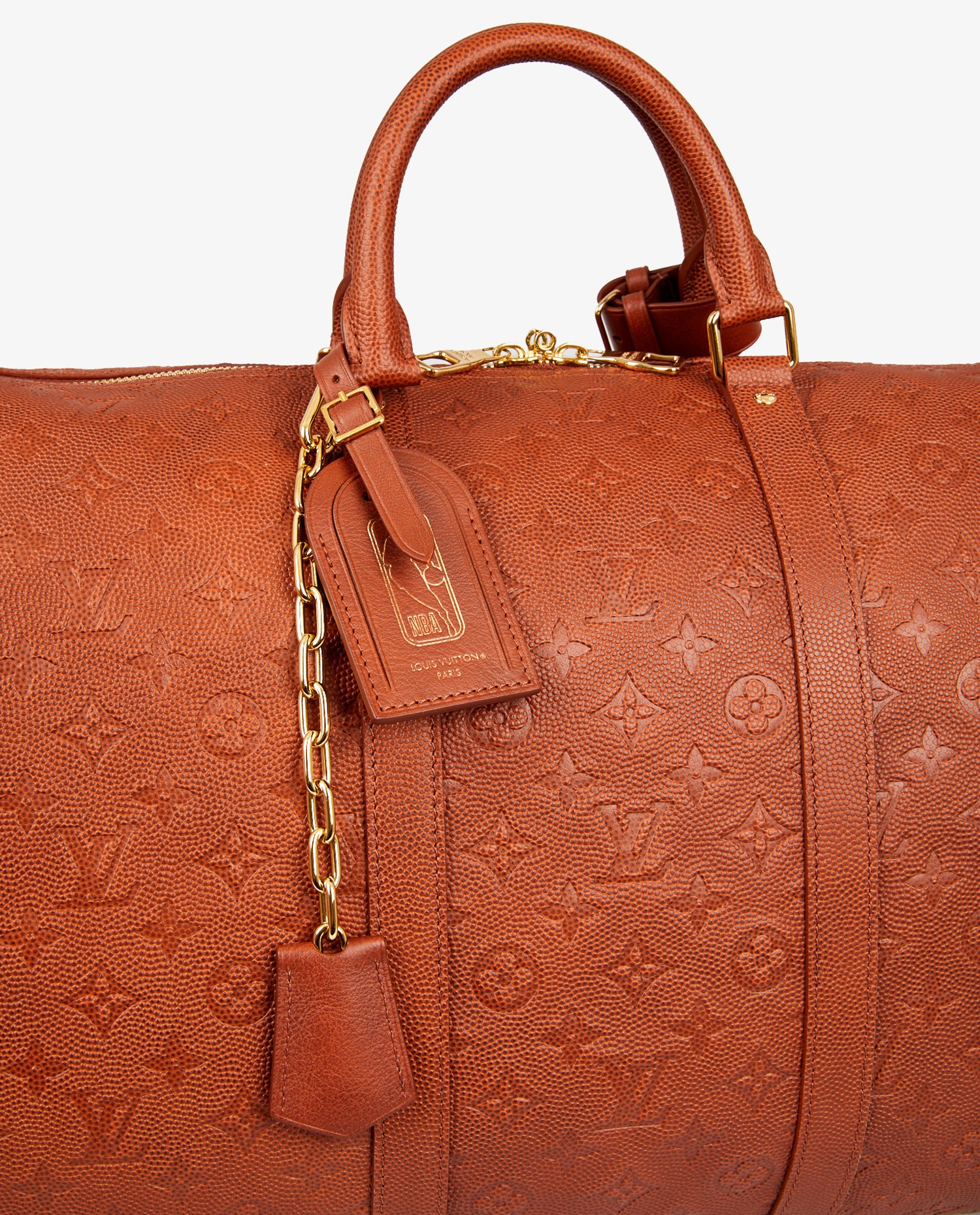 Sac de voyage Keepall 55 Louis Vuitton en collaboration avec la NBA et Virgil Abloh en 2021. Il est en cuir de veau appelé “Basketball grain”. Jamais porté. Vendu dans son dustbag et boite Louis Vuitton.