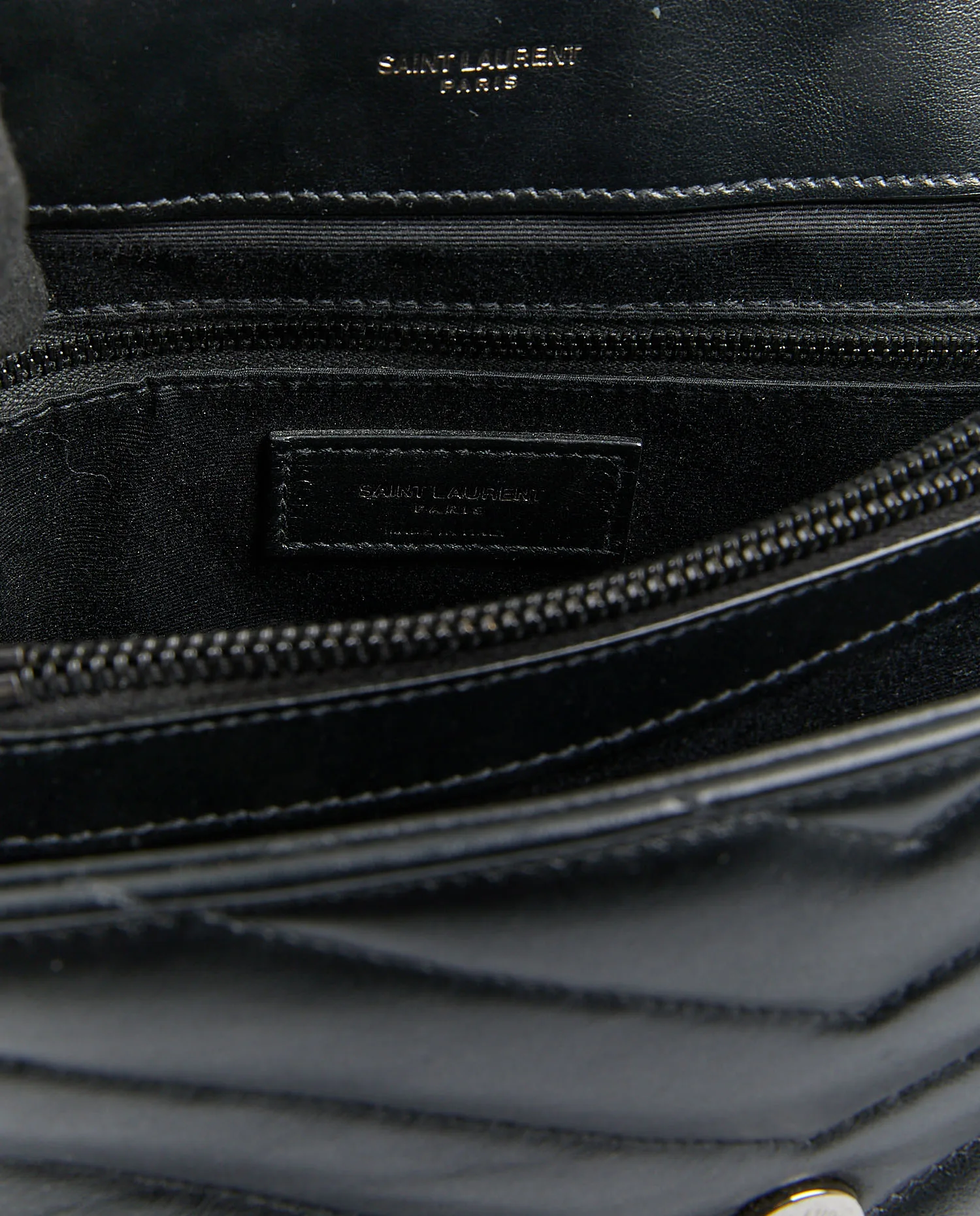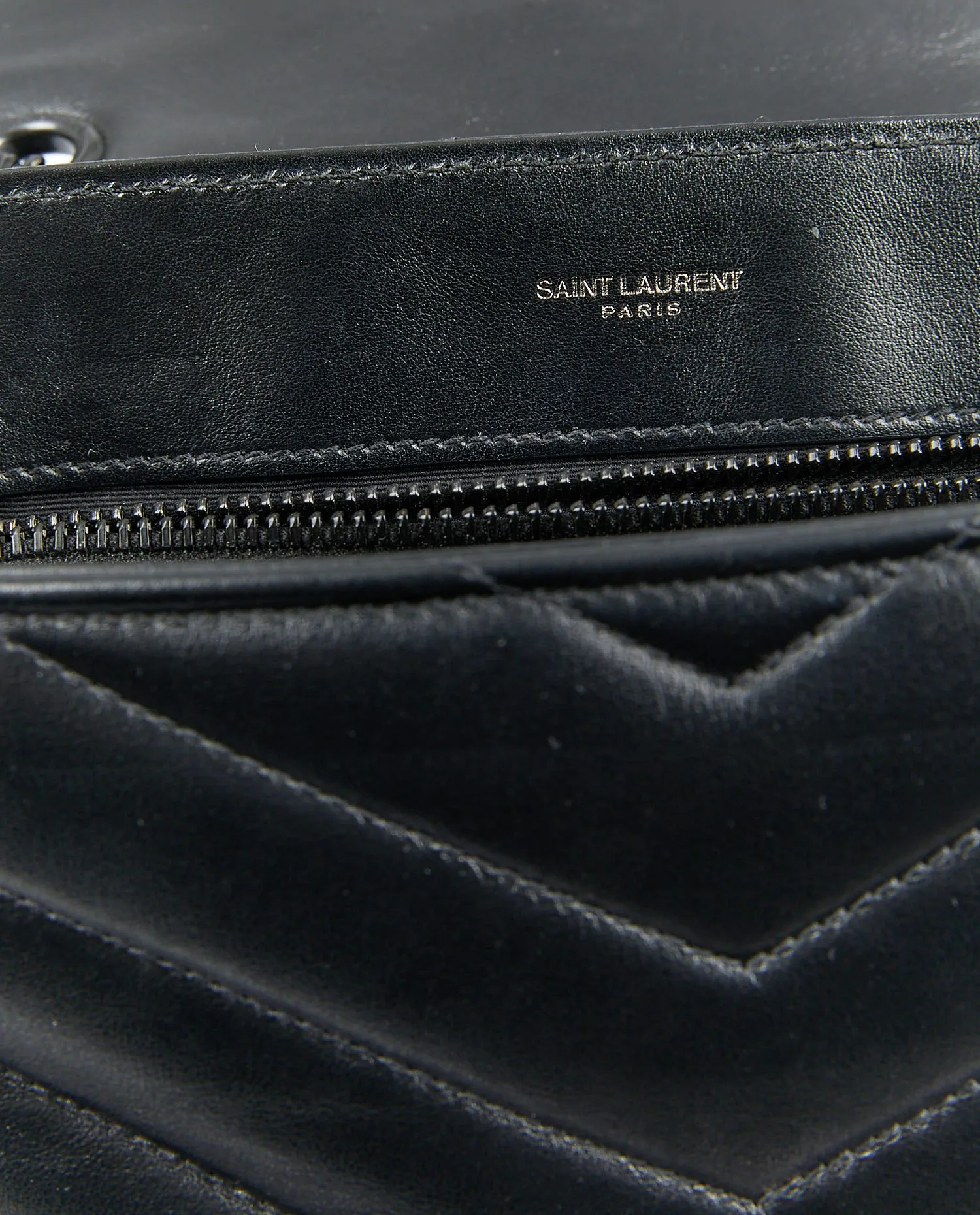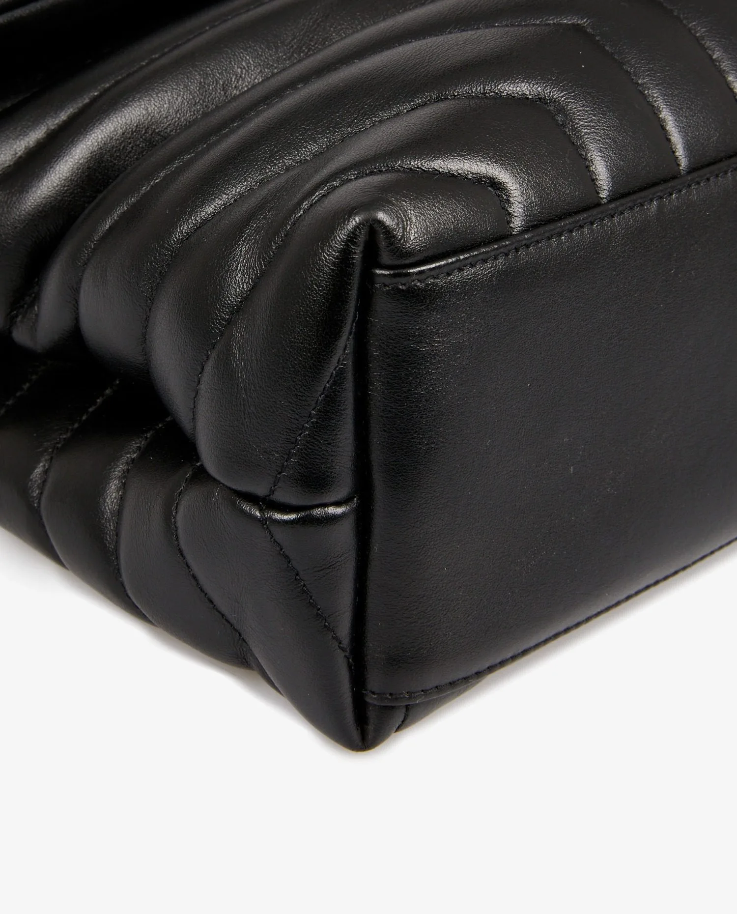 Sac Loulou Saint Laurent médium en cuir matelassé d’agneau noir. Porté épaule ou en bandoulière (103cm). En très bon état.