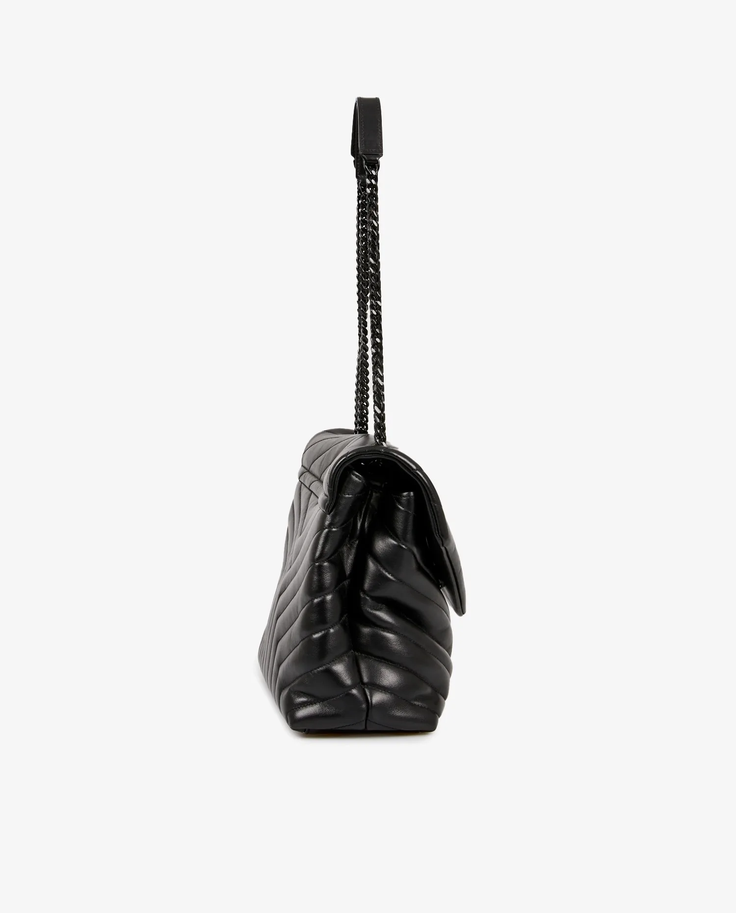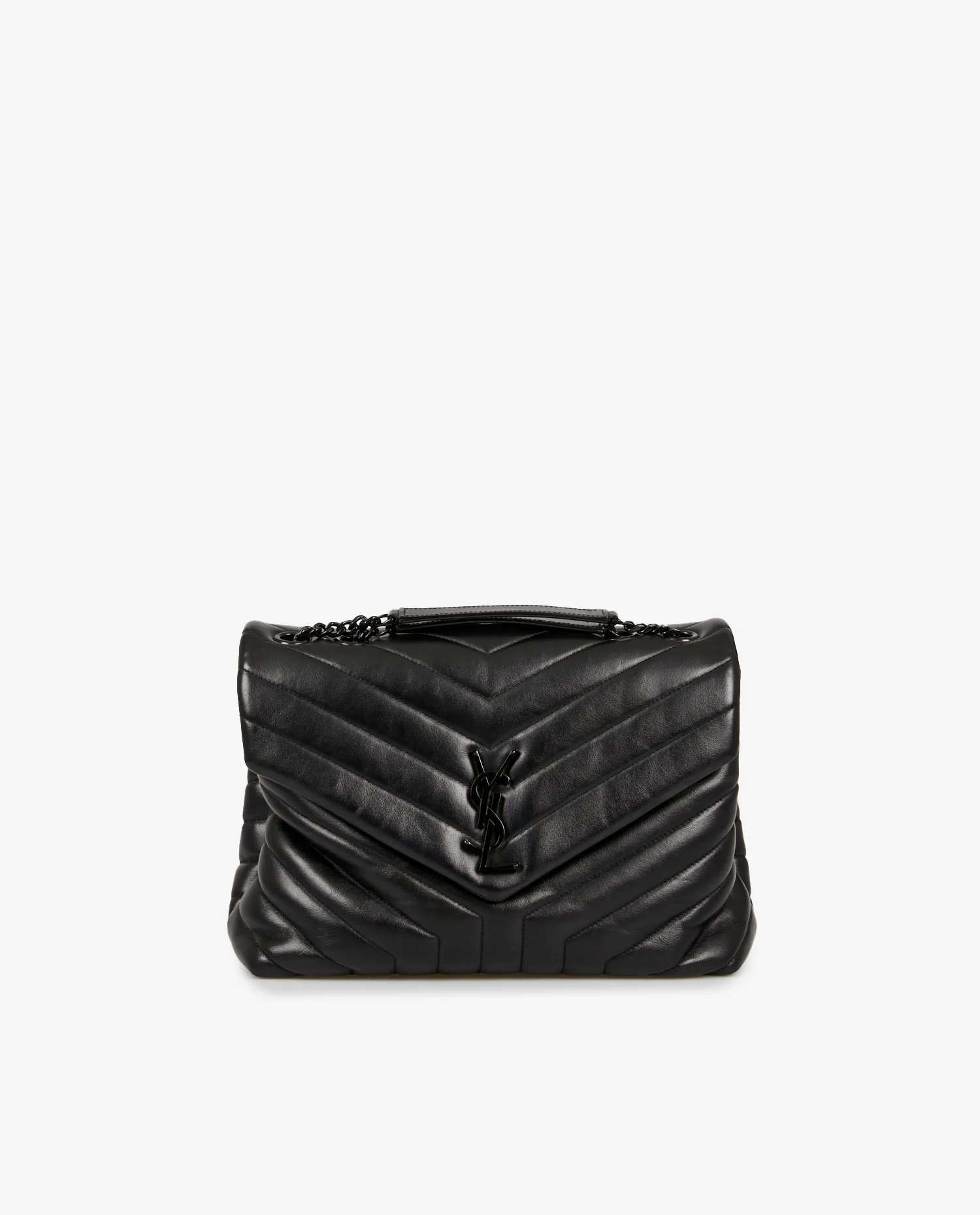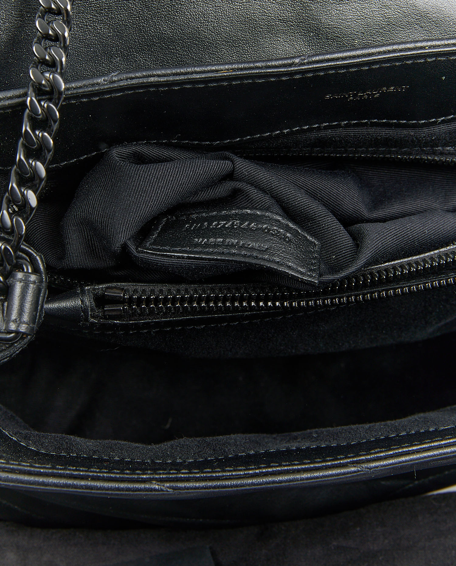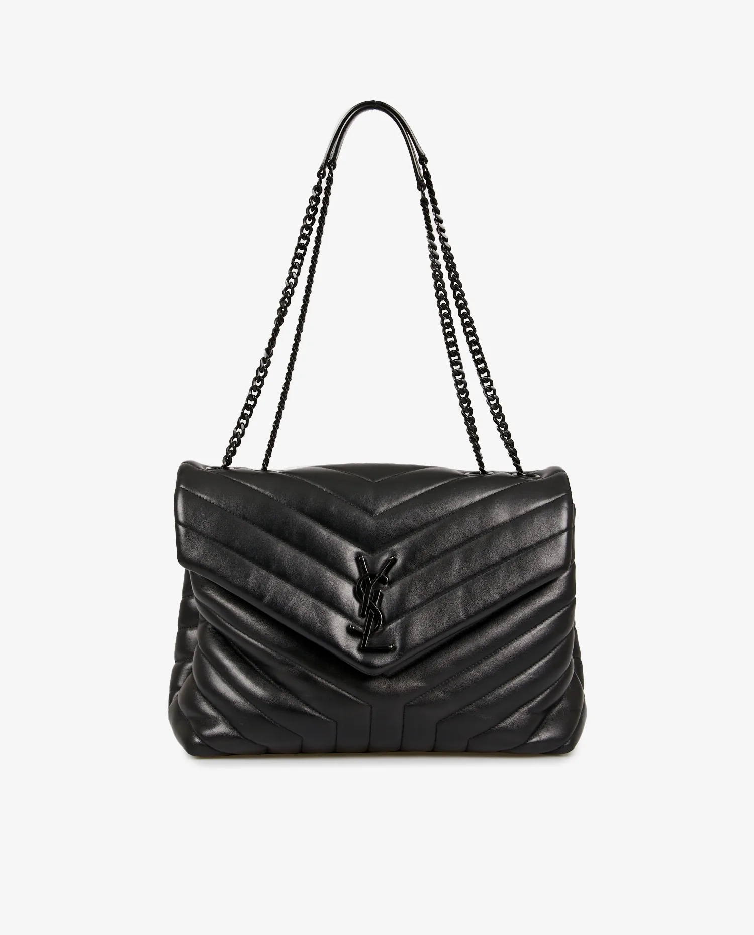 Sac Loulou Saint Laurent médium en cuir matelassé d’agneau noir. Porté épaule ou en bandoulière (103cm). En très bon état.