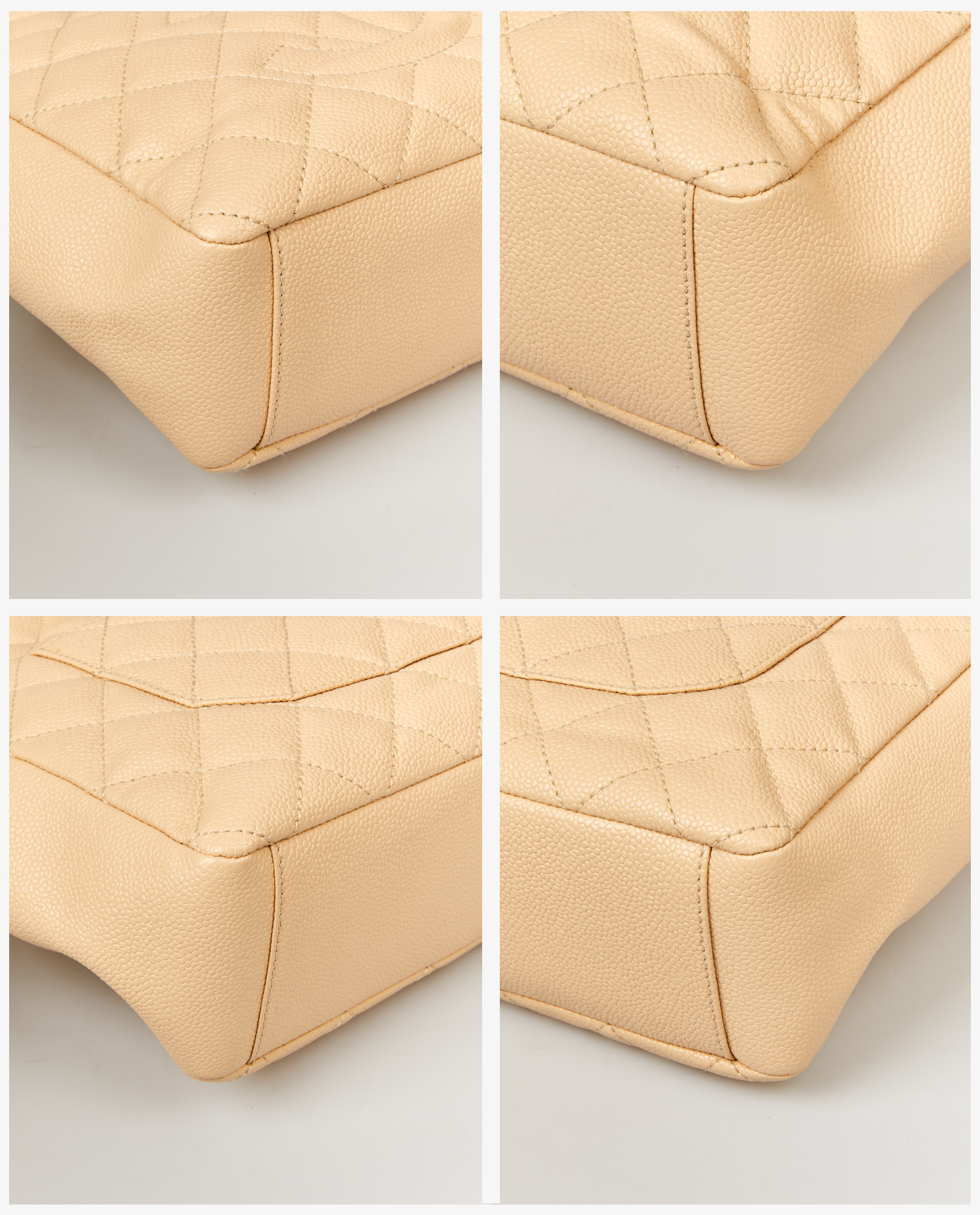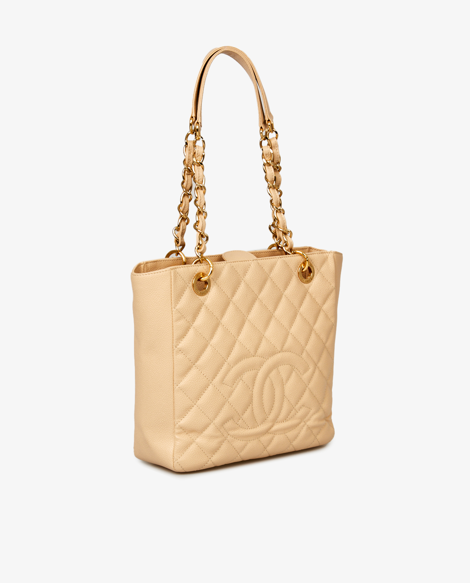 Cabas chanel cuir grainé beige. Bijouterie dorée. Porté épaule. En très bon état.
