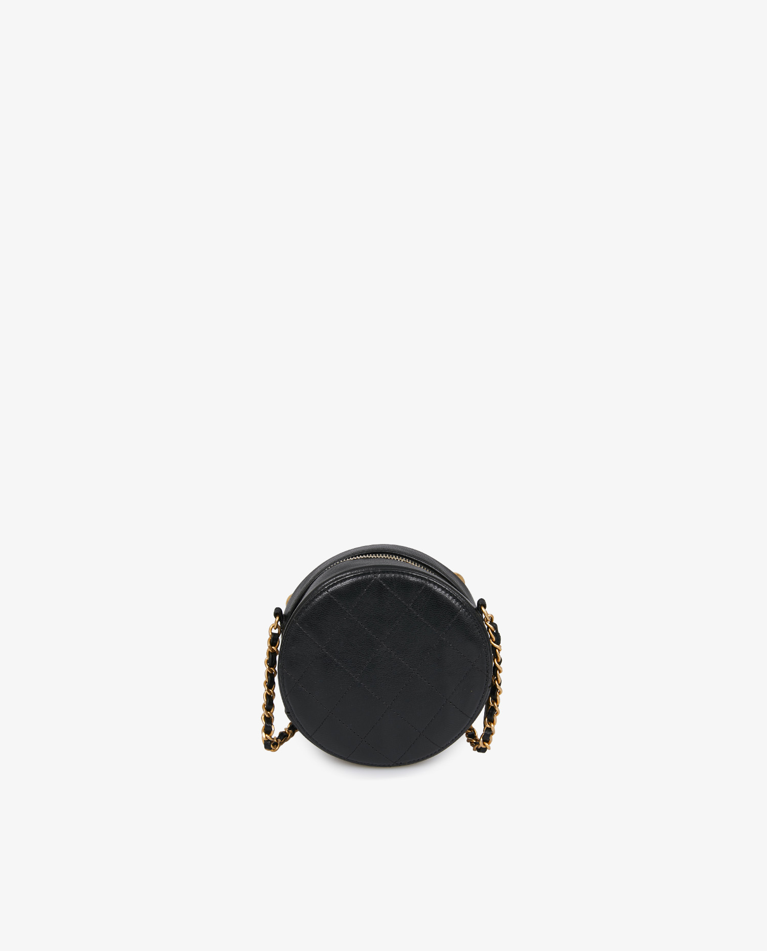 Ce sac Chanel rond marie l’élégance intemporelle du cuir matelassé à des détails joailliers emblématiques de la maison, comme les perles et la chaîne dorée. Parfait pour sublimer une tenue de jour comme de soirée, il s’agit d’une pièce qui traverse les modes sans se démoder, idéale pour les collectionneurs ou amateurs de sacs seconde mains d’exception.