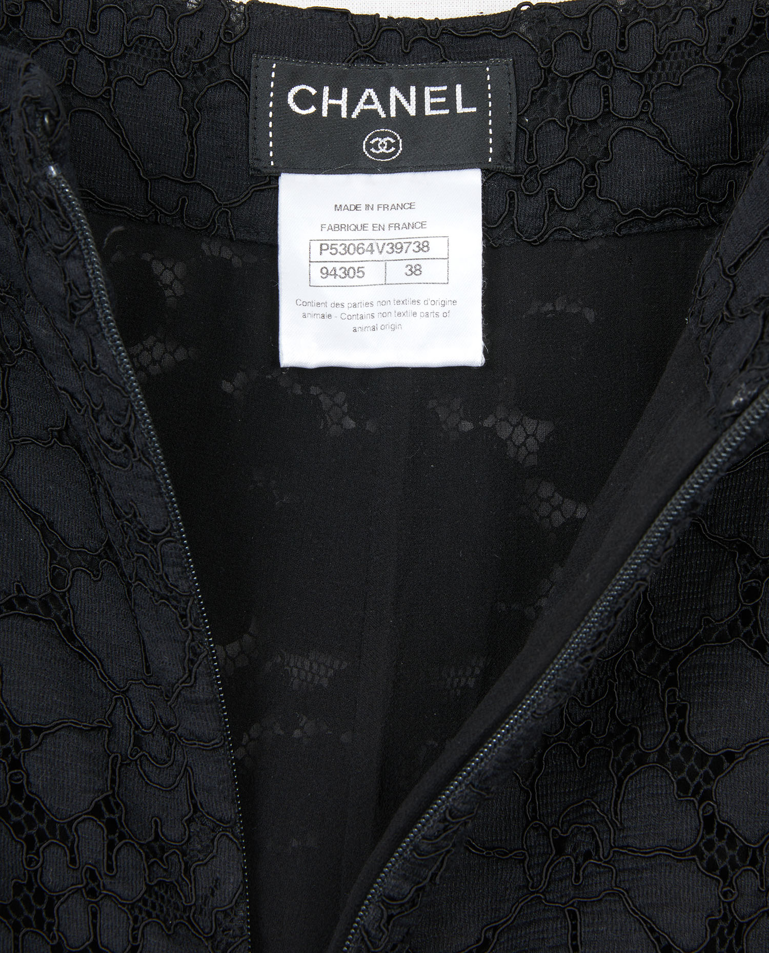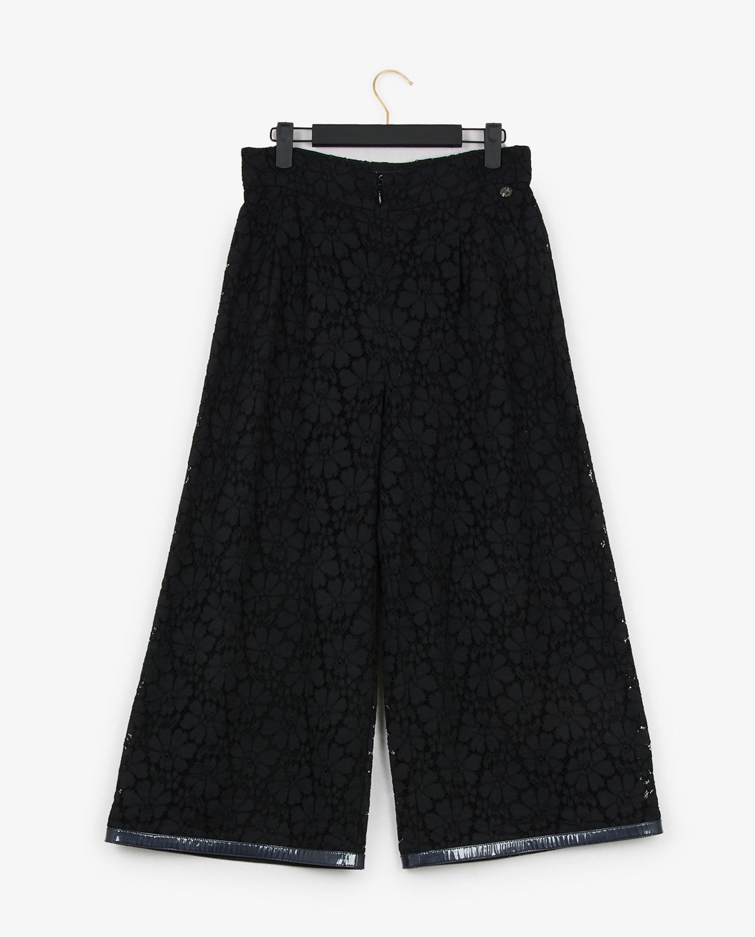 Pantalon Chanel en dentelle noire. Taille haute. Coupe droite. En très bon état.