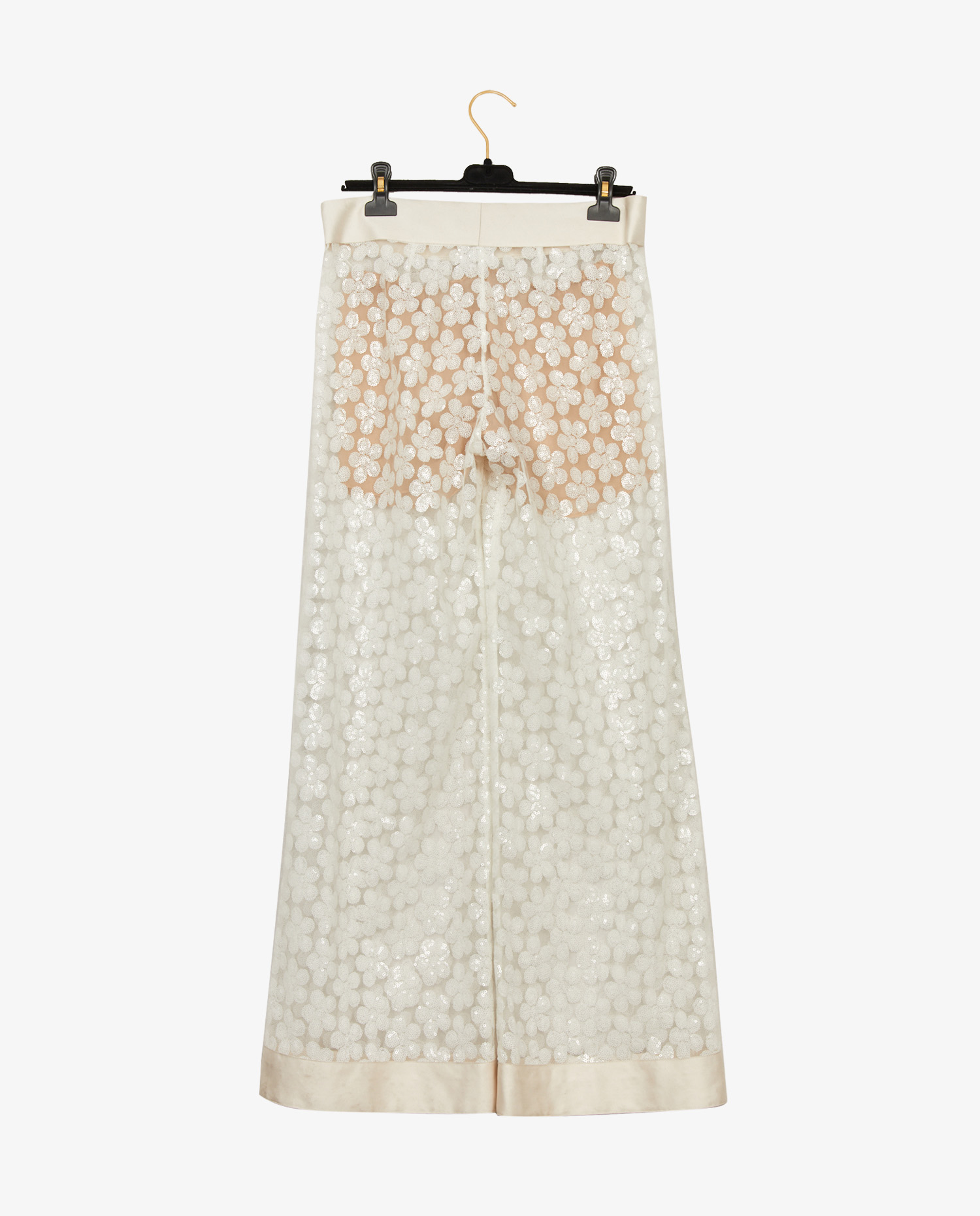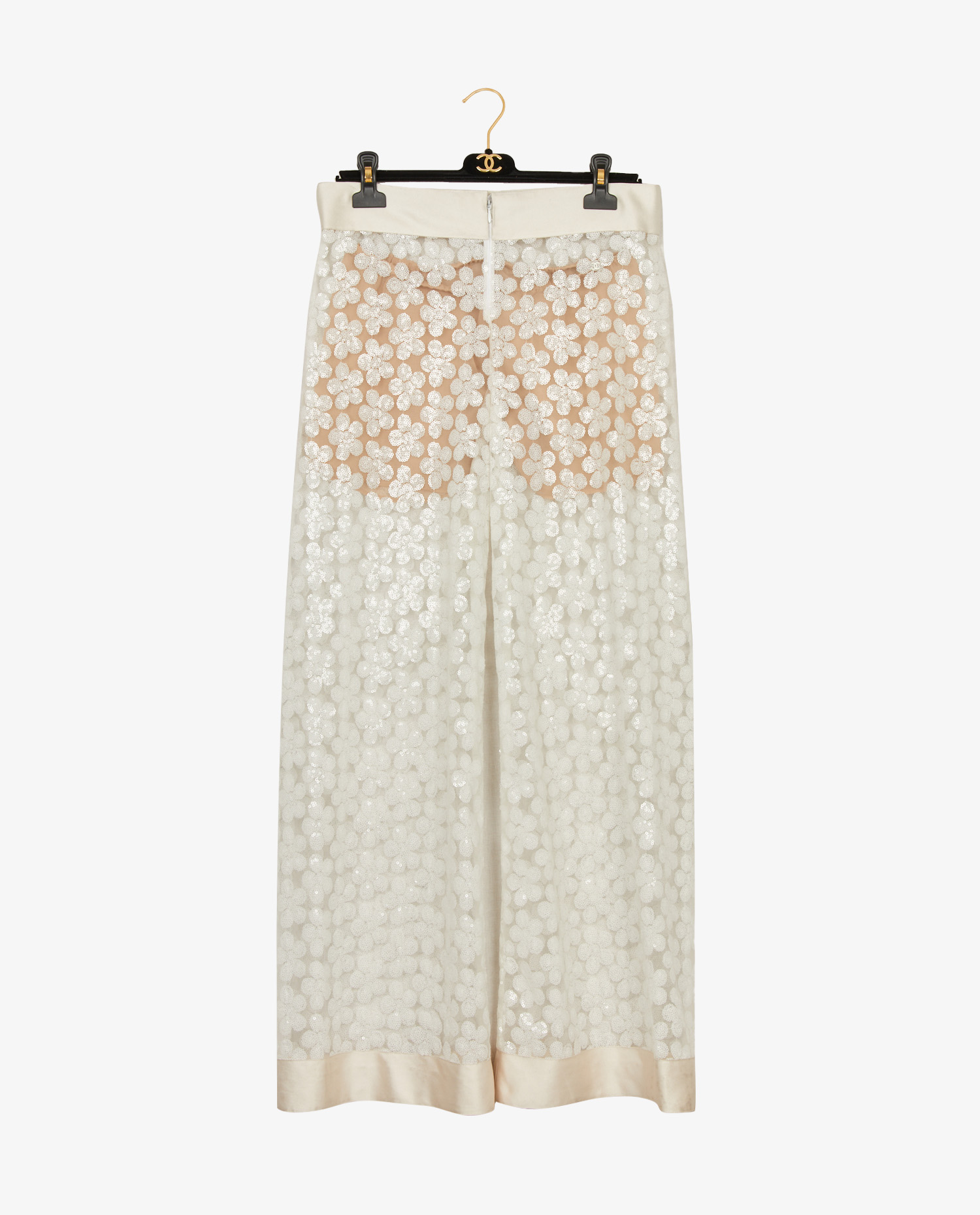 Pantalon brodé Chanel Collection Croisière, Paris-Séoul. Taille 36. Doublé à l’intérieur pour éviter la transparence. En très bon état.