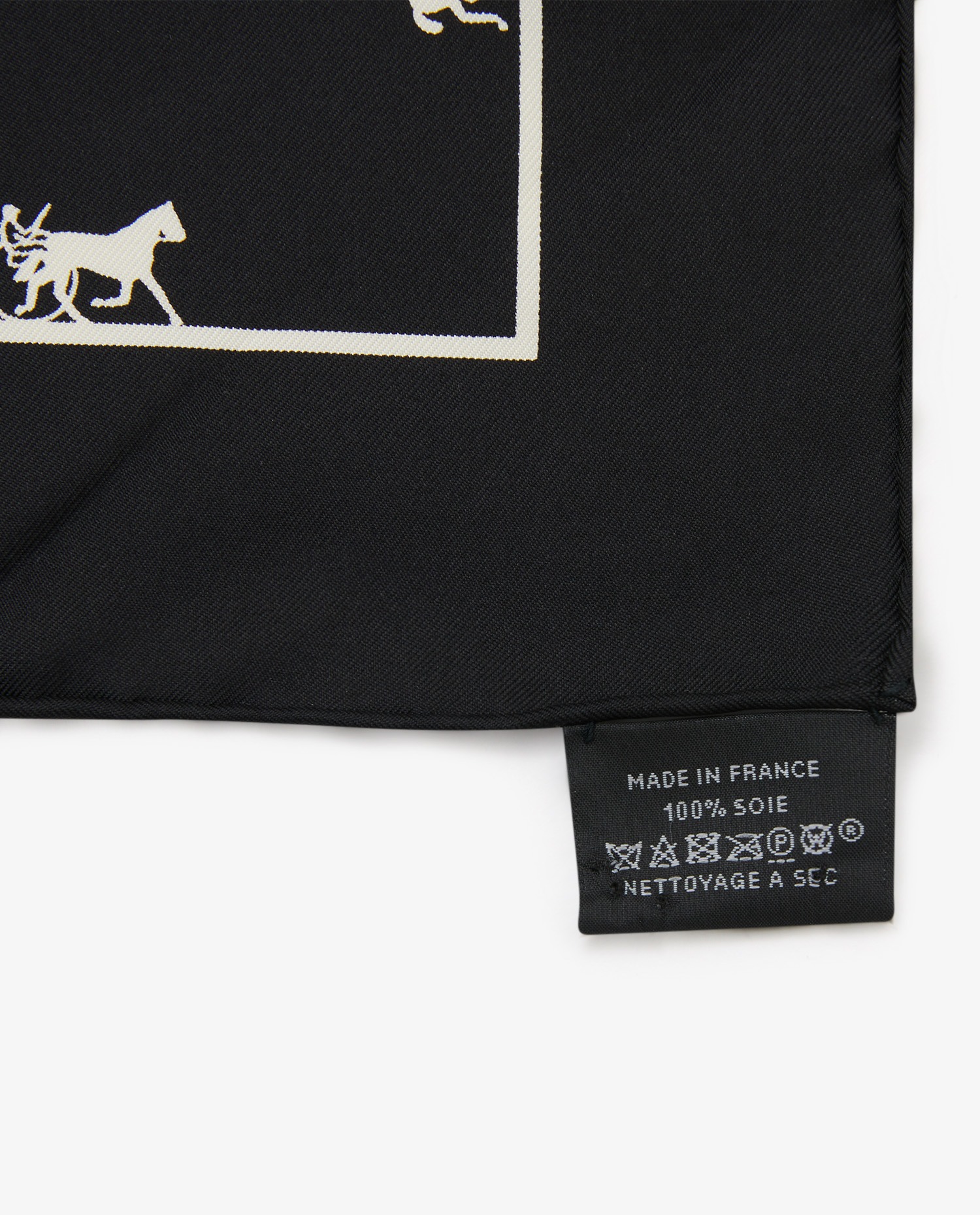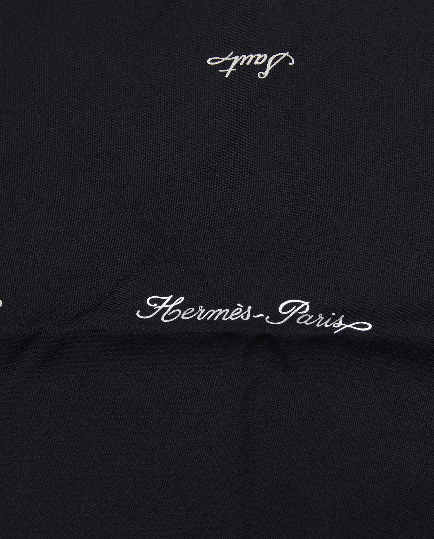 Petit foulard Hermès en soie noire et blanche. En très bon état.