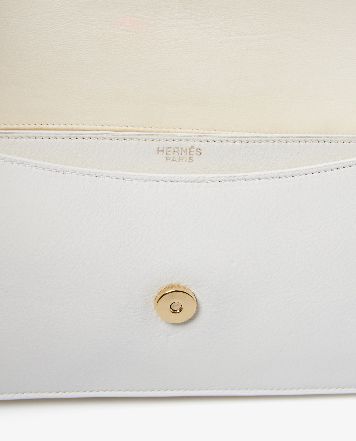 Cette pochette Hermès vintage réunit les codes du luxe discret et la rareté d’une pièce de collection dans un coloris blanc peu courant. Idéale pour les amateurs de maroquinerie d’époque ou les connaisseurs de la maison Hermès, elle combine intemporalité et authenticité. Son format pratique, sa fabrication en cuir noble et son excellent état en font un accessoire durable, raffiné et chargé d’histoire.