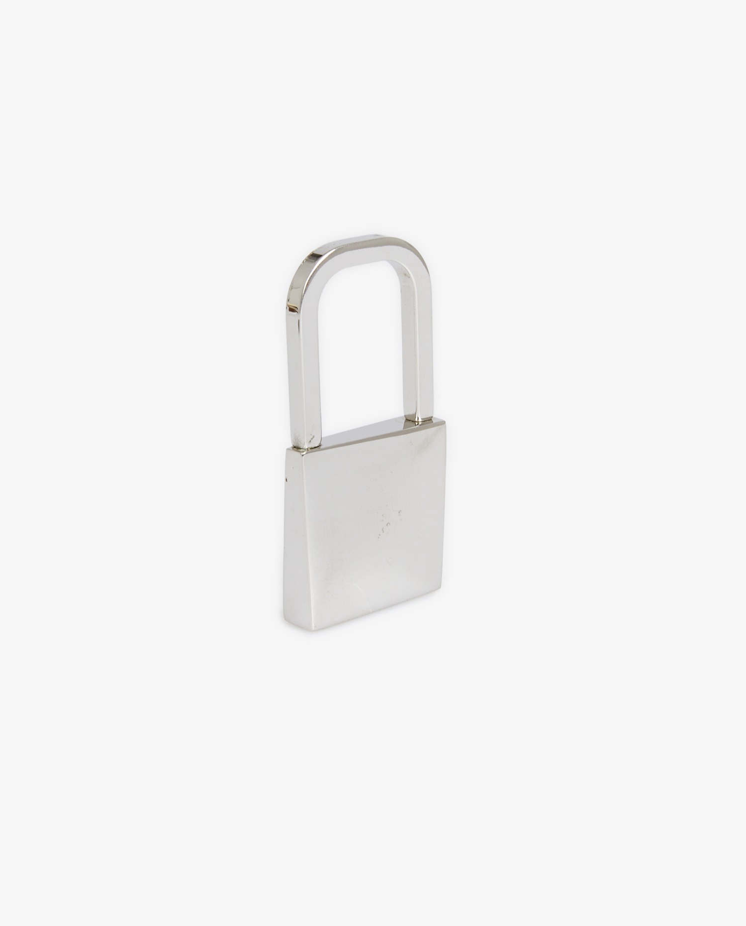 Porte clefs Salvatore Ferragamo en métal argent. Bon état. Petit accro sur l’une des faces (Voir photos).