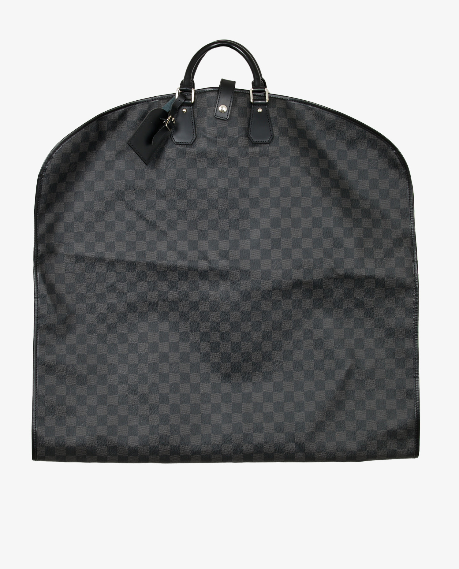 Porte habits Louis Vuitton en toile damier gris et noir. Fermeture zippée. Bijouterie argent. Poignée en cuir noir. Porte adresse et deux cintres. En très bon état.