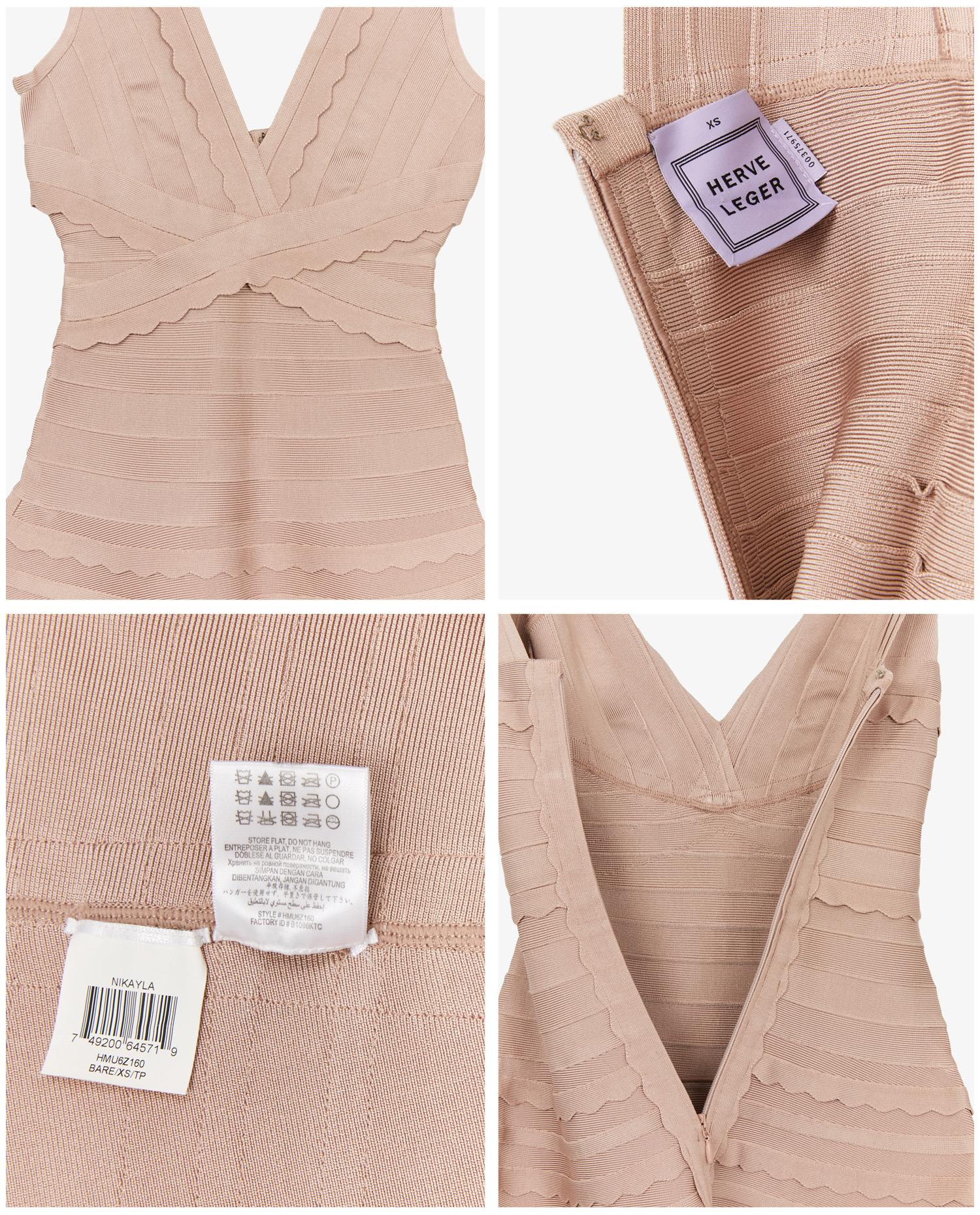 Robe Hervé Léger “Bandage” en rayon rose poudrée. Col V. Elle est moulante sur la partie haute du corps et à volants sur la partie basse. Très élégante. Taille XS, équivaut à un 34fr. Jamais porté.