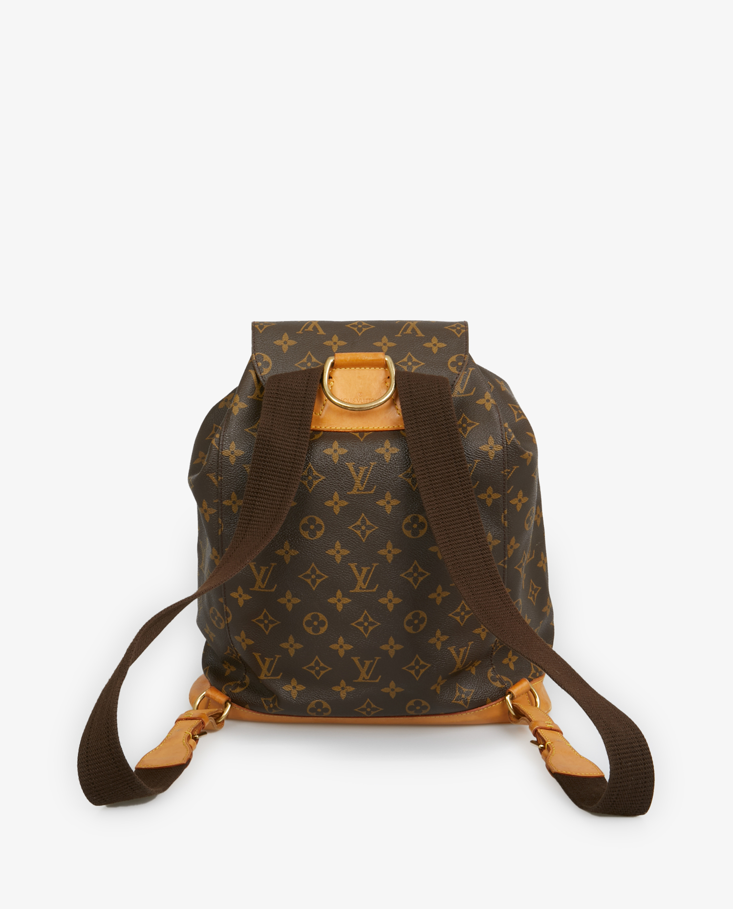 Sac à dos Montsouris Louis Vuitton monogram grand modèle. Cuir de vachette et toile monogramme. En bon état. Quelques tâches sur le cuir qui donne un effet vintage.