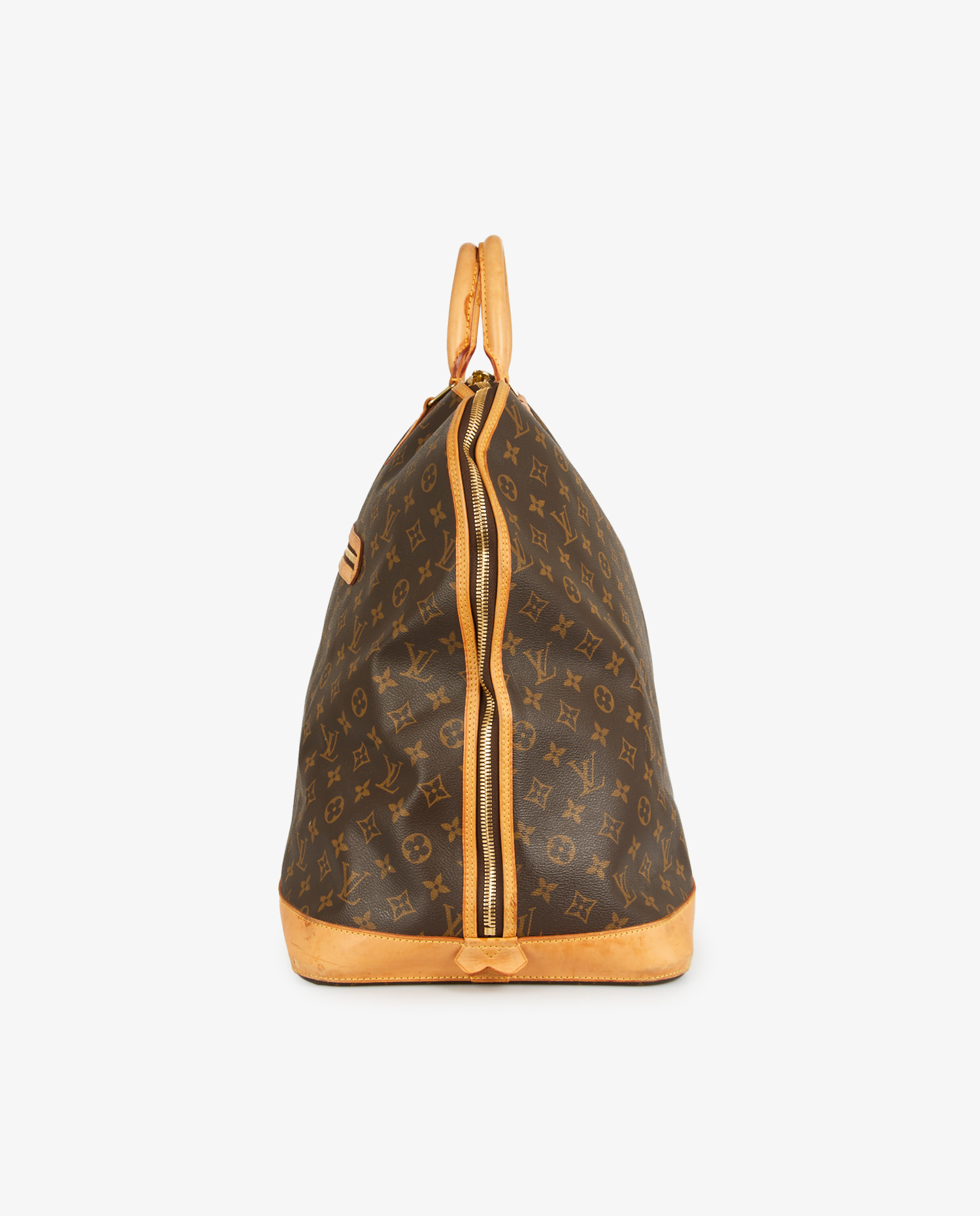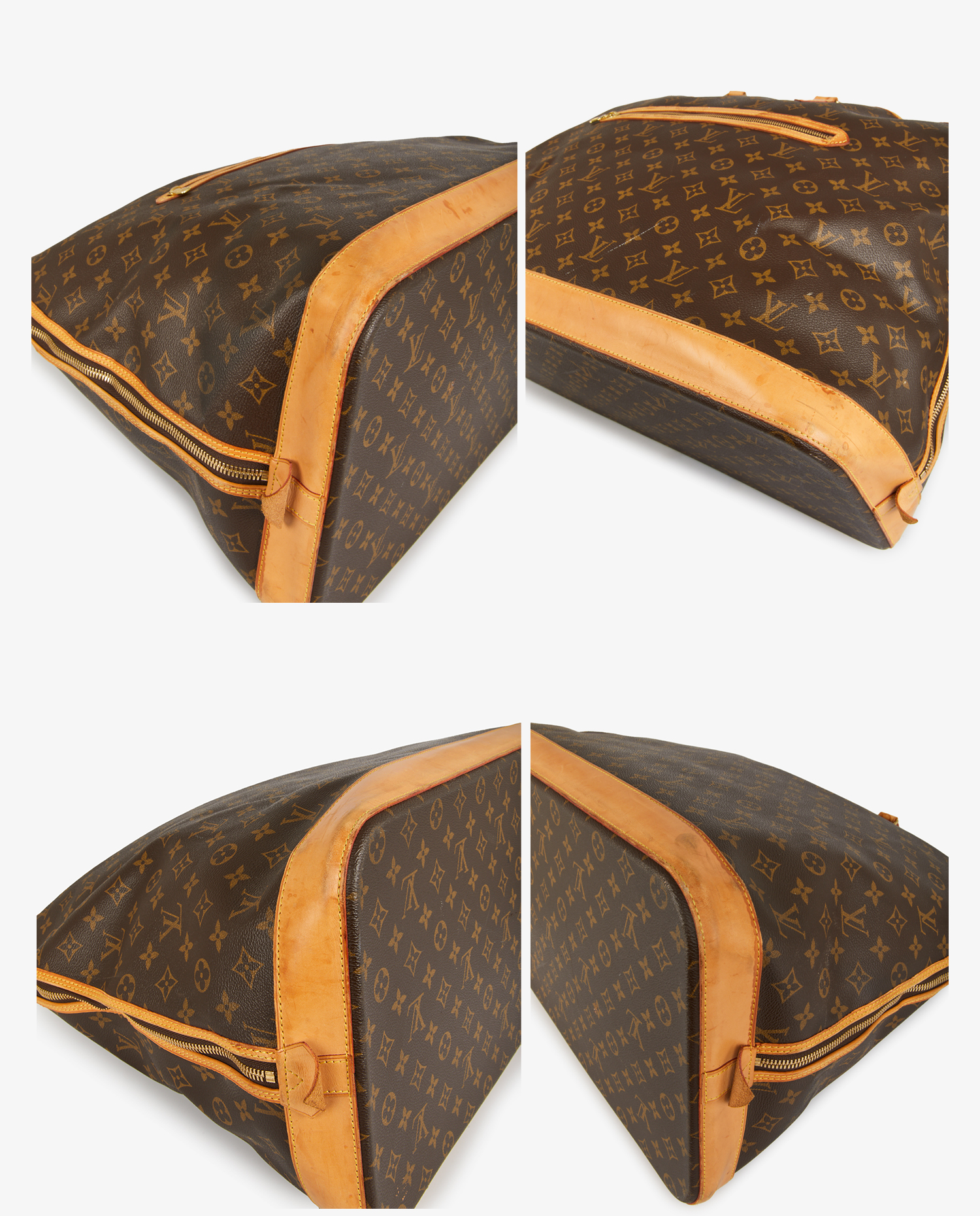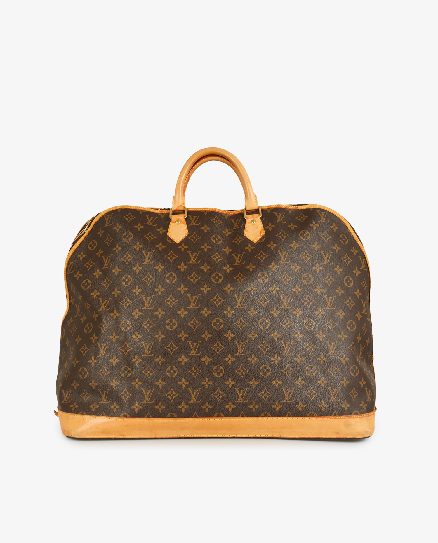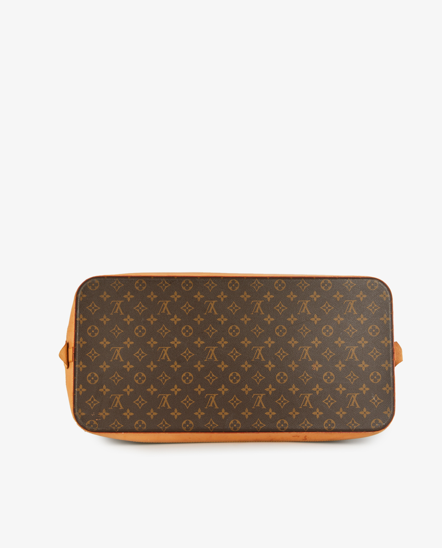 Sac Alma Louis Vuitton de voyage en toile monogramme et finitions en cuir de vache naturelle. Fermeture zippée. Porté main. L’intérieur est en toile marron avec un grand espace de rangement. En bon état. Quelques marques d’usure d’usage sur les parties en cuir. Voir les photos.