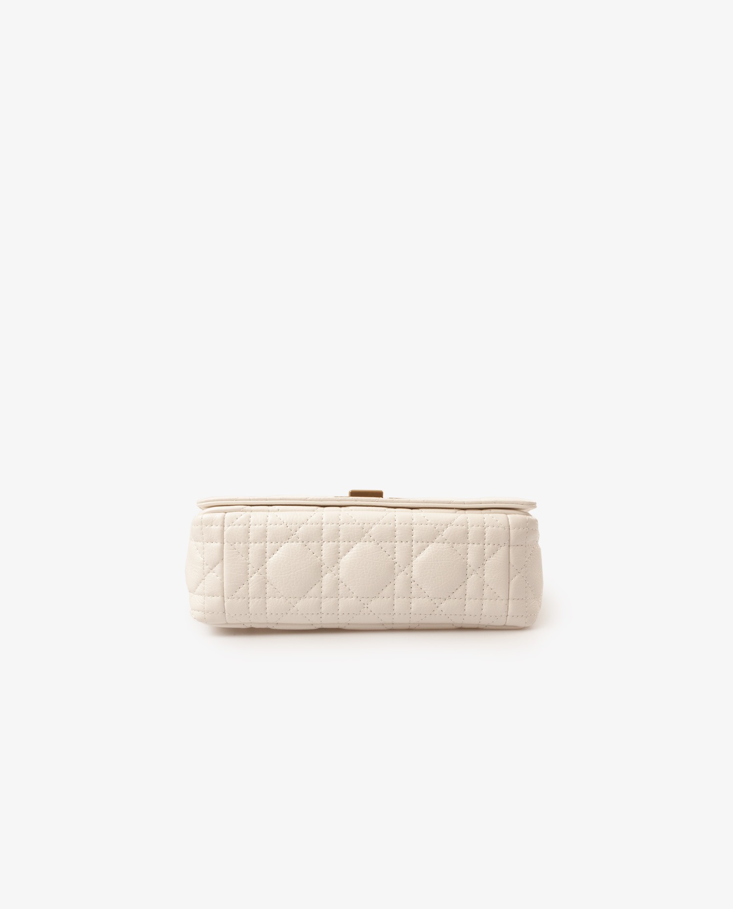 En quelques mots, le sac Dior Caro allie modernité et élégance avec l’effet matelassé des coutures Macrocannage. En cuir de veau couleur latte. Ce sac est doté d’un rabat ponctué d’un fermoir twist CD en ruthénium, inspiré d’un flacon de parfum Christian Dior. La bandoulière chaîne détachable à maillons signature CD offrira un porter main, épaule ou crossbody, et pourra être remplacée par une large bandoulière brodée de la Maison pour le porter aussi bien en journée qu’en soirée.