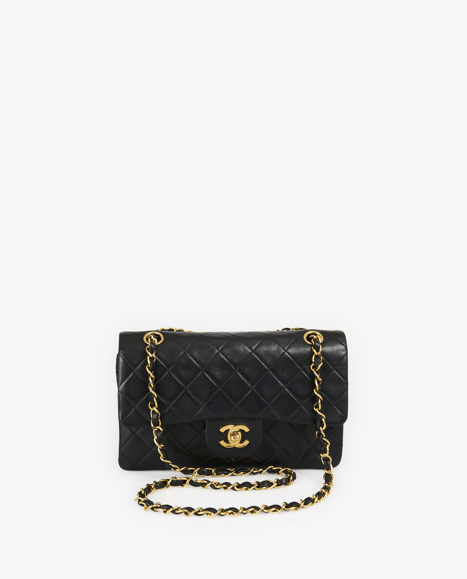 Le sac Classique Chanel, aussi appelé “Timeless”, a été imaginé par Karl Lagerfeld à partir du modèle 2.55 créé par Coco Chanel en 1955. En 1983, Lagerfeld y apporte sa touche distinctive en ajoutant le fermoir CC tournant et en modernisant les lignes. Le modèle de 23 cm, plus compact que le 2.55 traditionnel, devient rapidement un incontournable du vestiaire féminin dans les années 90. Les modèles produits entre 1997 et 1999 se distinguent notamment par l’utilisation de cuir d’agneau souple et de finitions en métal doré 24 carats, aujourd’hui introuvables sur les productions contemporaines.
