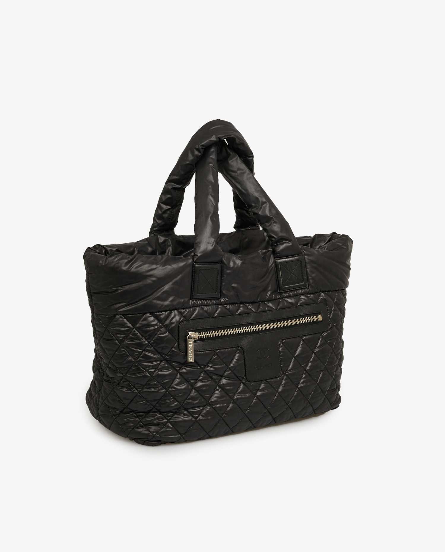 Grand sac Cocoon Chanel en toile noire. Porté épaule. Fermeture zippée. En très bon état.