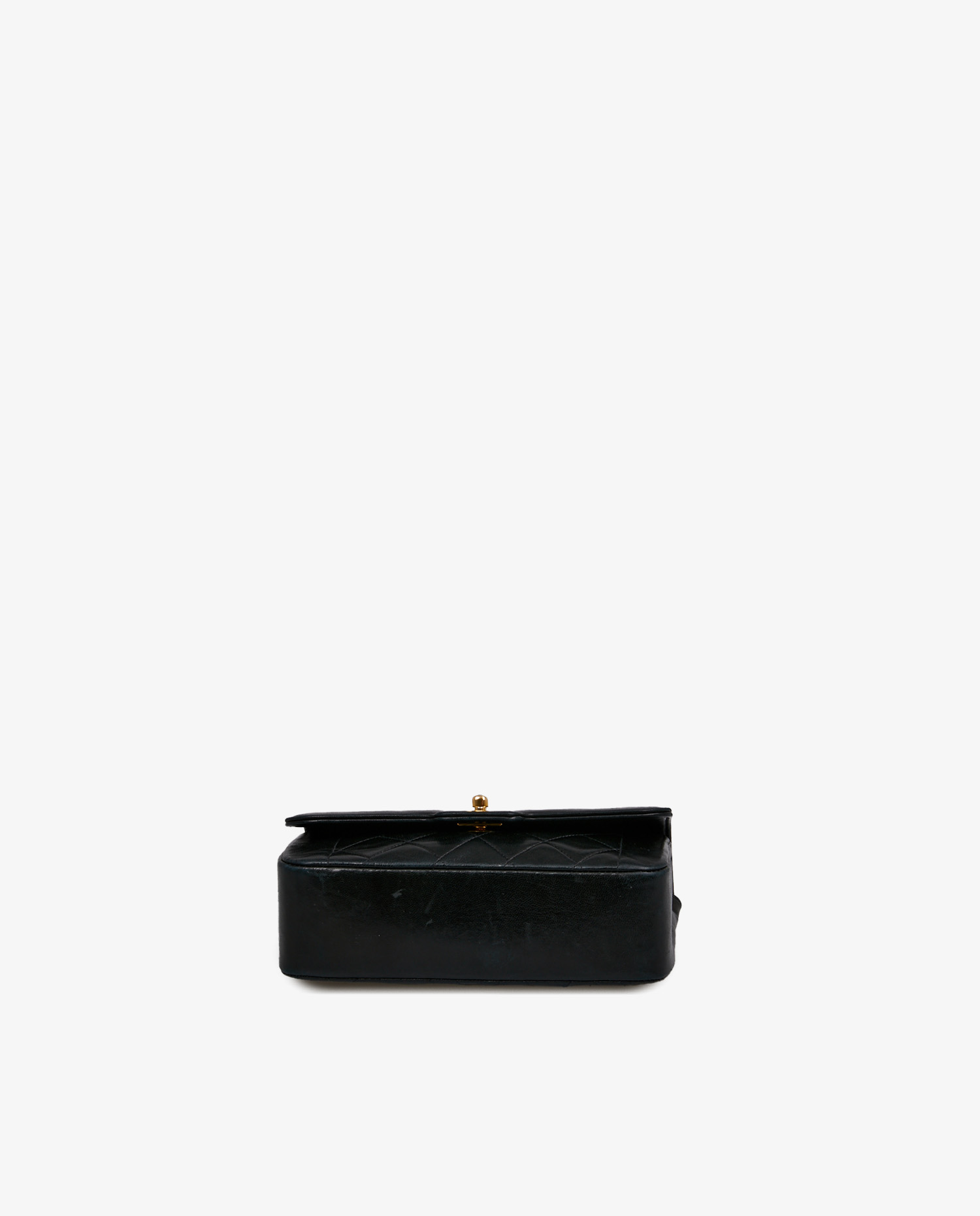 Mini sac Diana Chanel vintage en cuir d’agneau matelassé noir. La bijouterie est en métal doré plaqué 24K. Il se porte à l’épaule ou en crossbody à l’aide d’une bandoulière en métal doré matelassé. L’intérieur est en cuir bordeaux. En très bon état. Livré dans son dustbag d’origine.