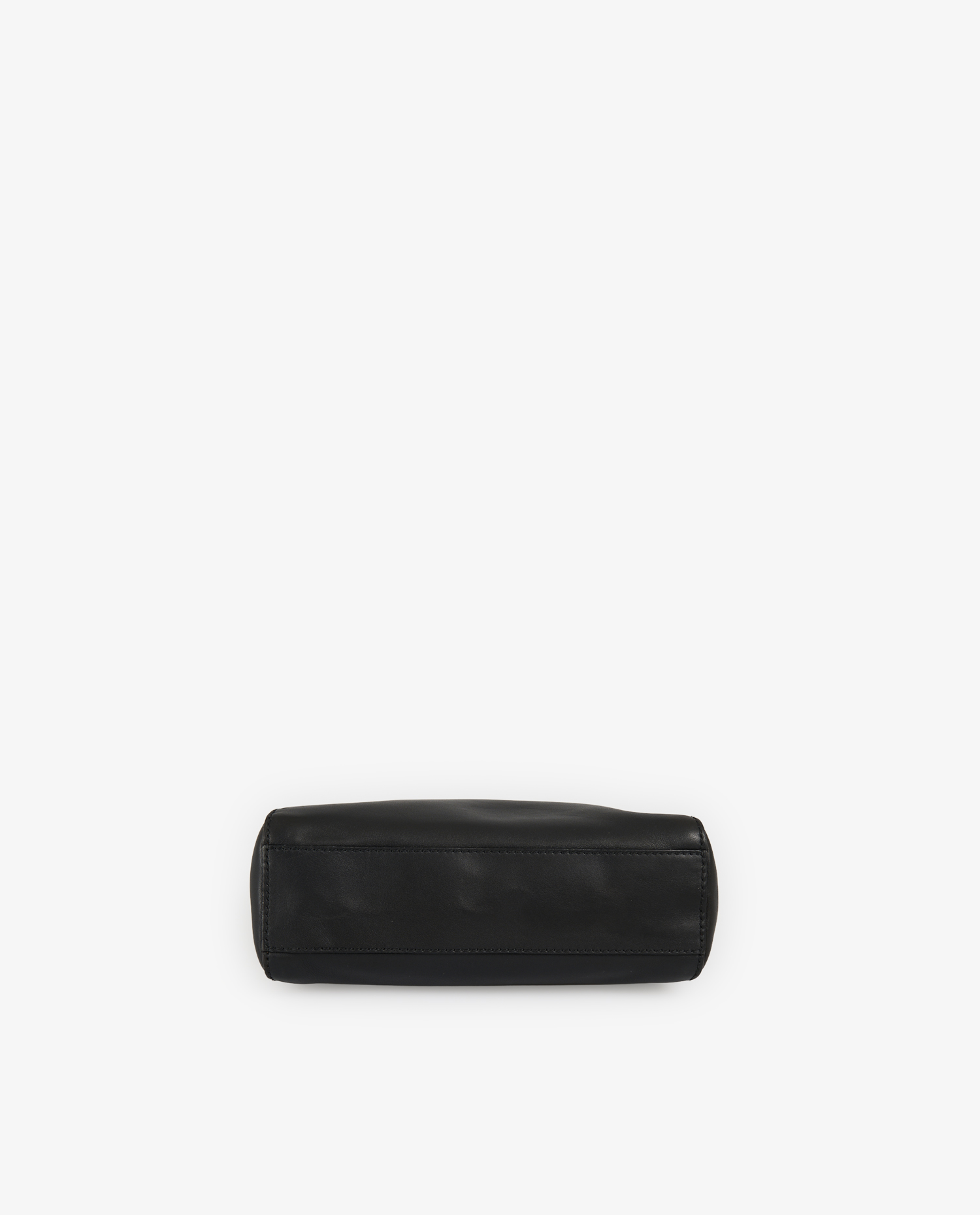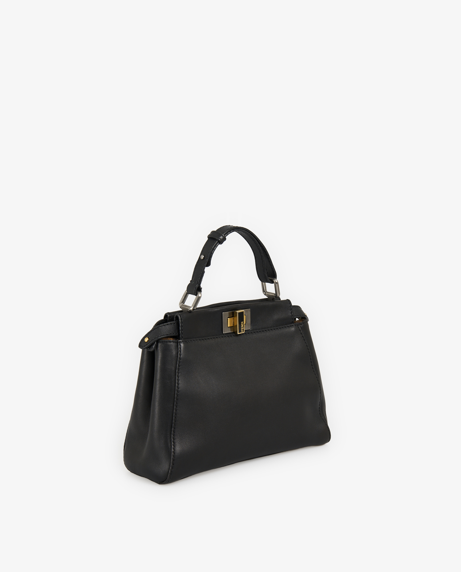 Introduit pour la première fois en 2009 par Silvia Venturini Fendi, le sac Peekaboo tire son nom de son ouverture caractéristique en deux volets qui révèlent subtilement l’intérieur du sac, comme dans le jeu enfantin “coucou, caché”. Il s’est rapidement imposé comme un incontournable de la maison Fendi, associant rigueur architecturale et touche espiègle. Le format Mini, apparu dans les collections ultérieures, répond à une demande croissante pour des sacs compacts mais sophistiqués, adaptés à une vie urbaine active tout en conservant l’identité forte du modèle.