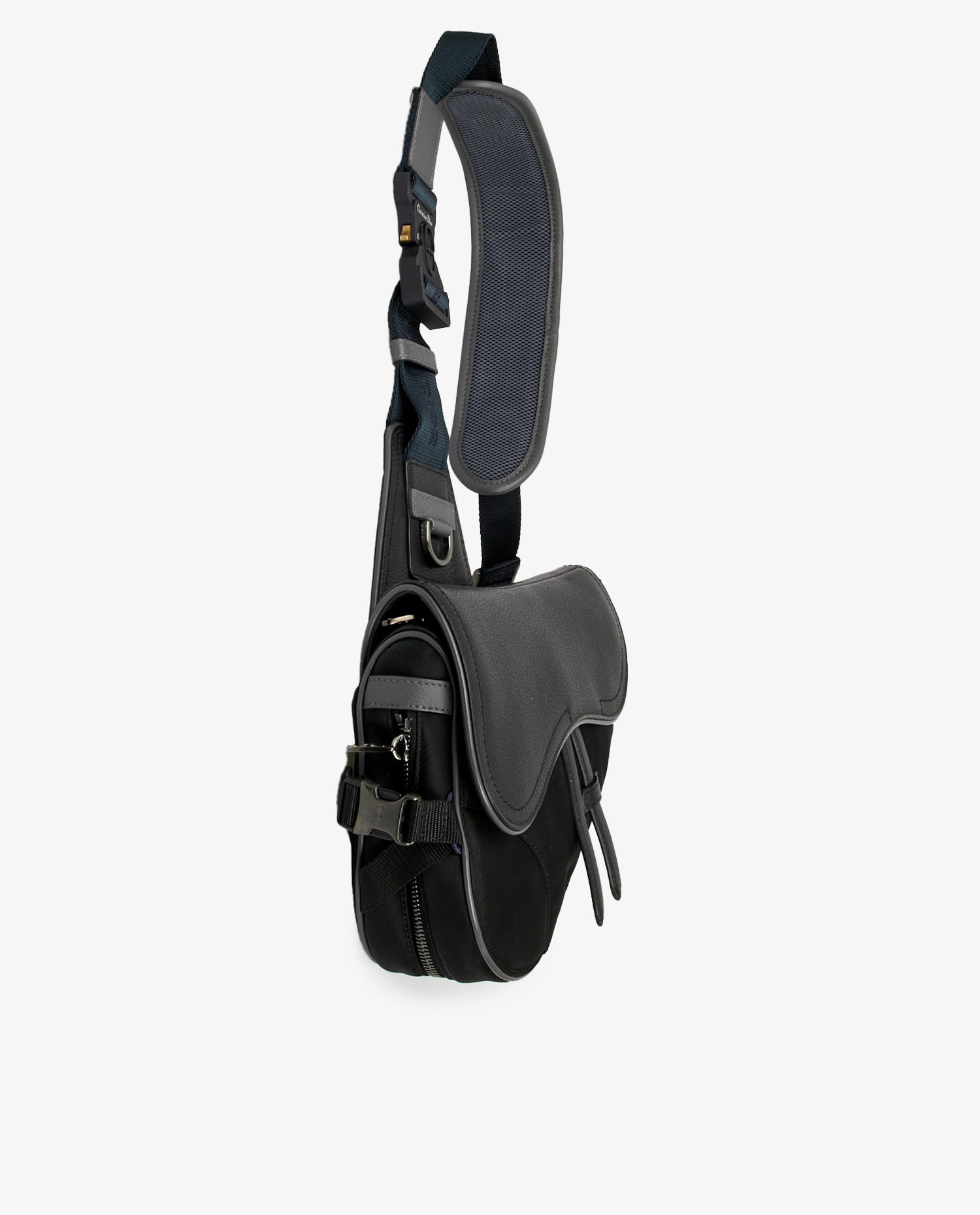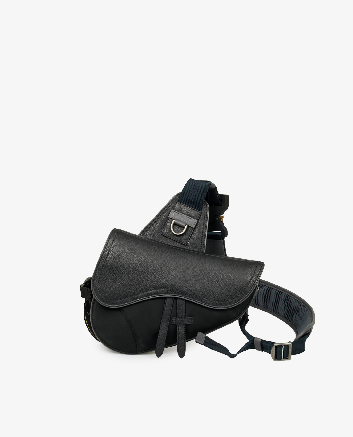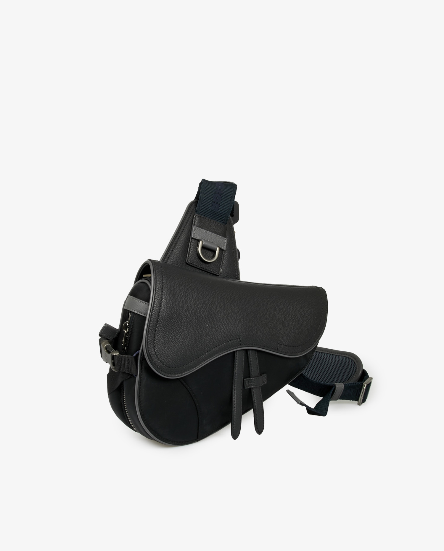 Sac Saddle Dior homme en cuir grainé noir. Bijouterie argent mat. Fermeture aimantée et zippée. L’intérieur est en toile noire. En très bon état. Livré dans son dustbag d’origine. Prix public 2900 euros.