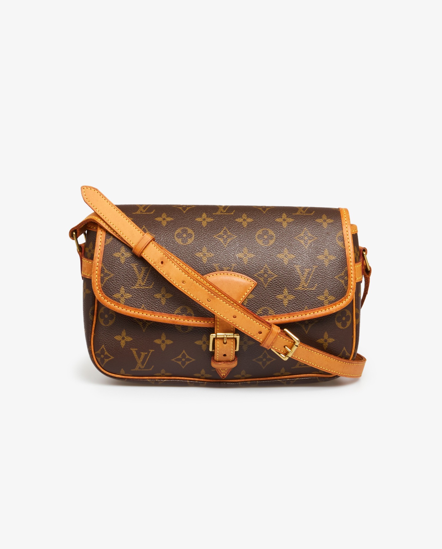 Sac Sologne Louis Vuitton en toile monogram et cuir de vachette. Il se porte à l’épaule ou en crossbody à l’aide d’une bandoulière réglable qui mesure : au plus court 116 cm et au plus long 133 cm. Possibilité de rajouter des trous pour la raccourcir. En très bon état. Quelques tâches d’usure naturelle sur le cuir de la bandoulière.