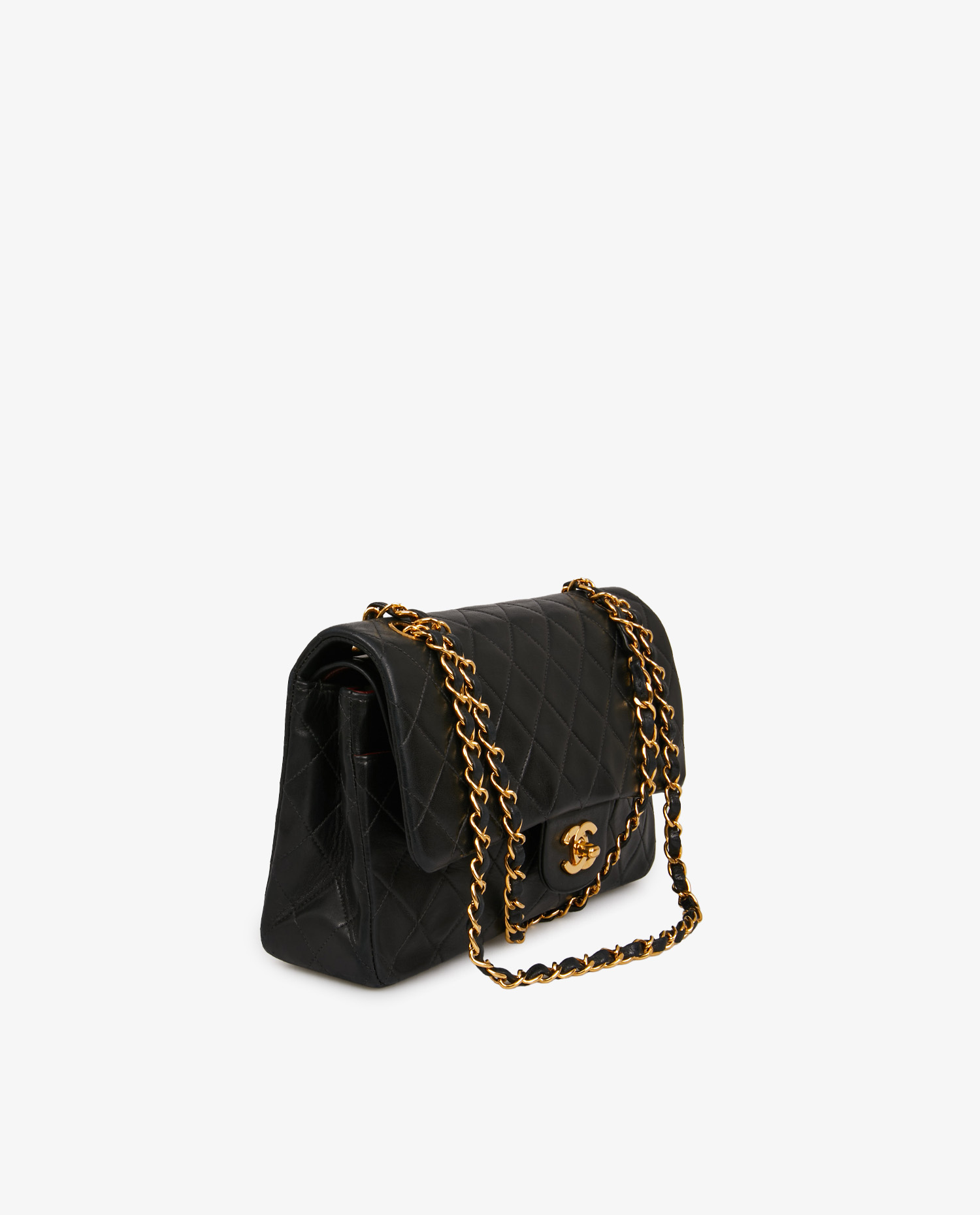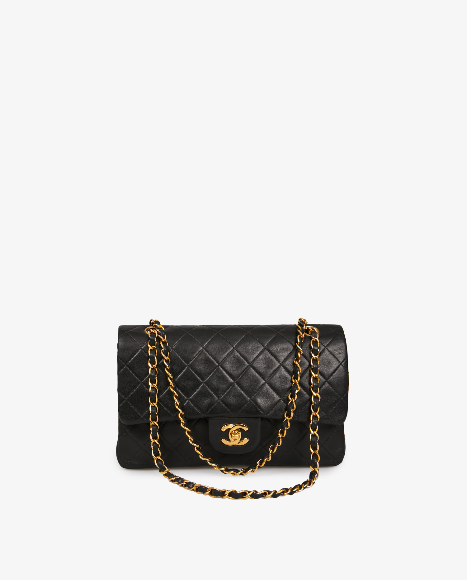 Introduit par Karl Lagerfeld dans les années 80 en réinterprétation du 2.55 de Coco Chanel, le Timeless à double rabat devient rapidement une icône de la maison. Le design conserve le matelassage losangé, la chaîne entrelacée et la fermeture tournante CC, tout en y ajoutant des détails pratiques et modernes comme la poche extérieure dite “Mona Lisa”. Entre 1991 et 1994, les modèles Chanel étaient encore fabriqués en France avec des finitions exceptionnelles, notamment l’utilisation de dorure 24K sur la bijouterie, aujourd’hui arrêtée.