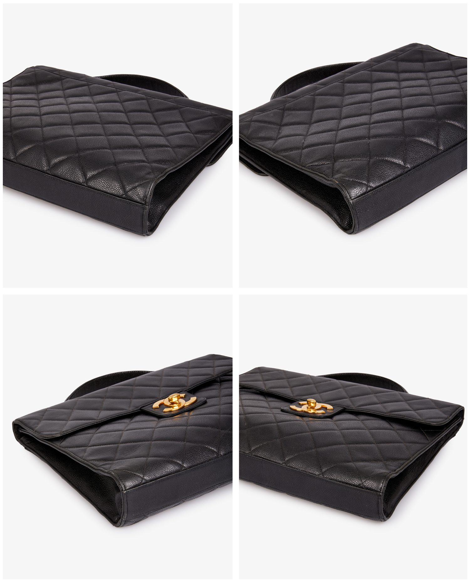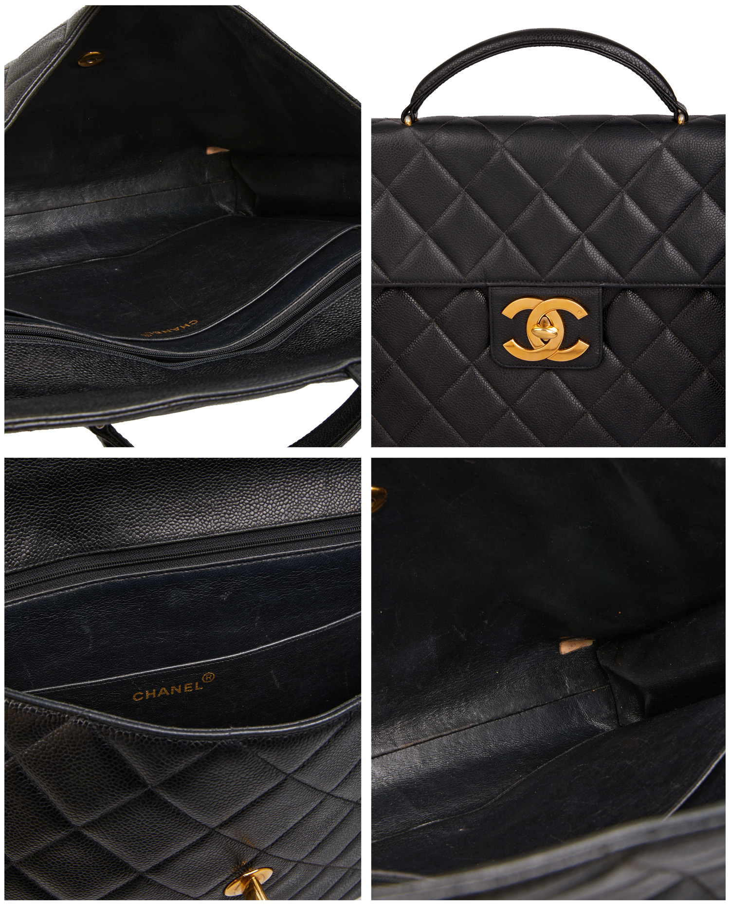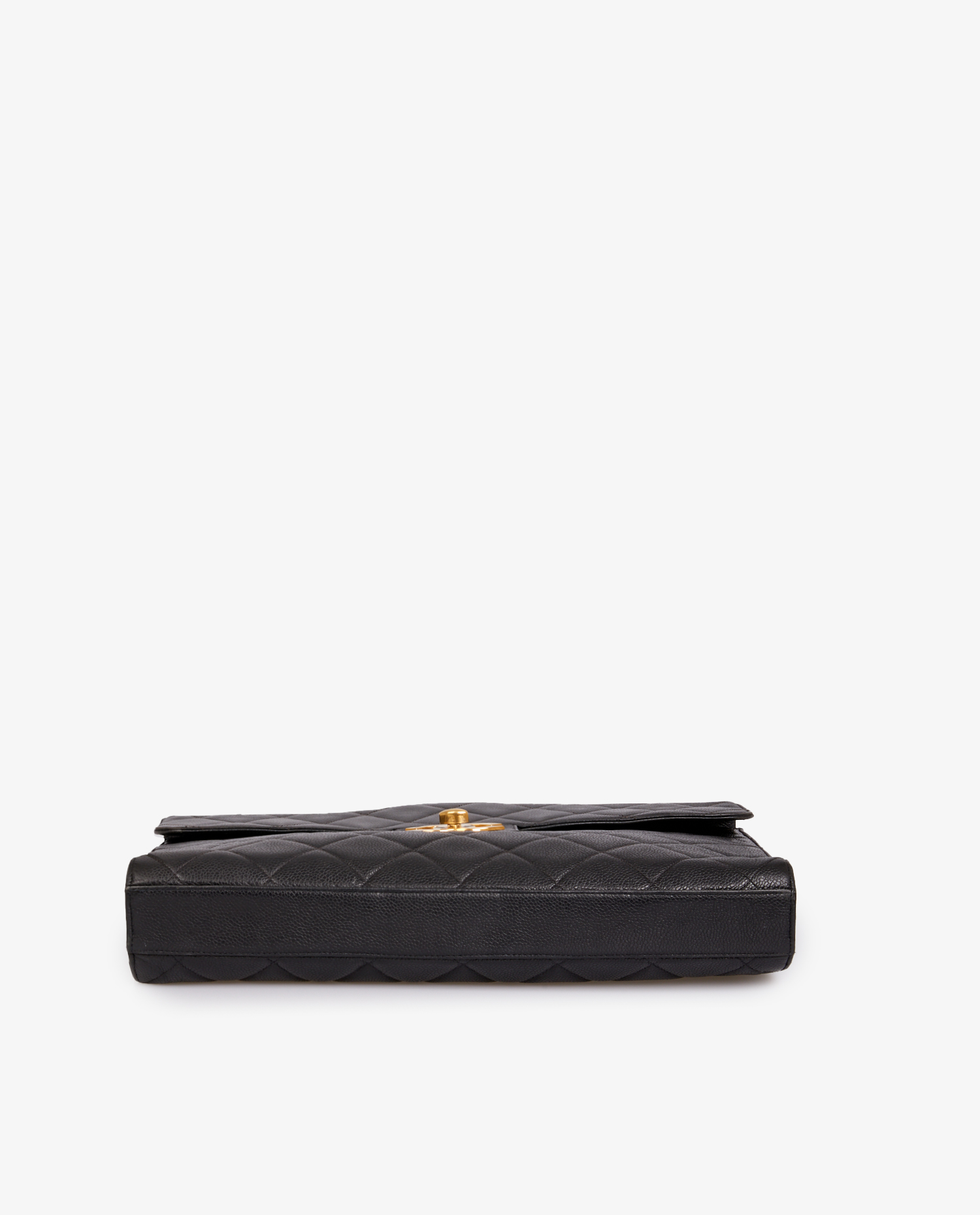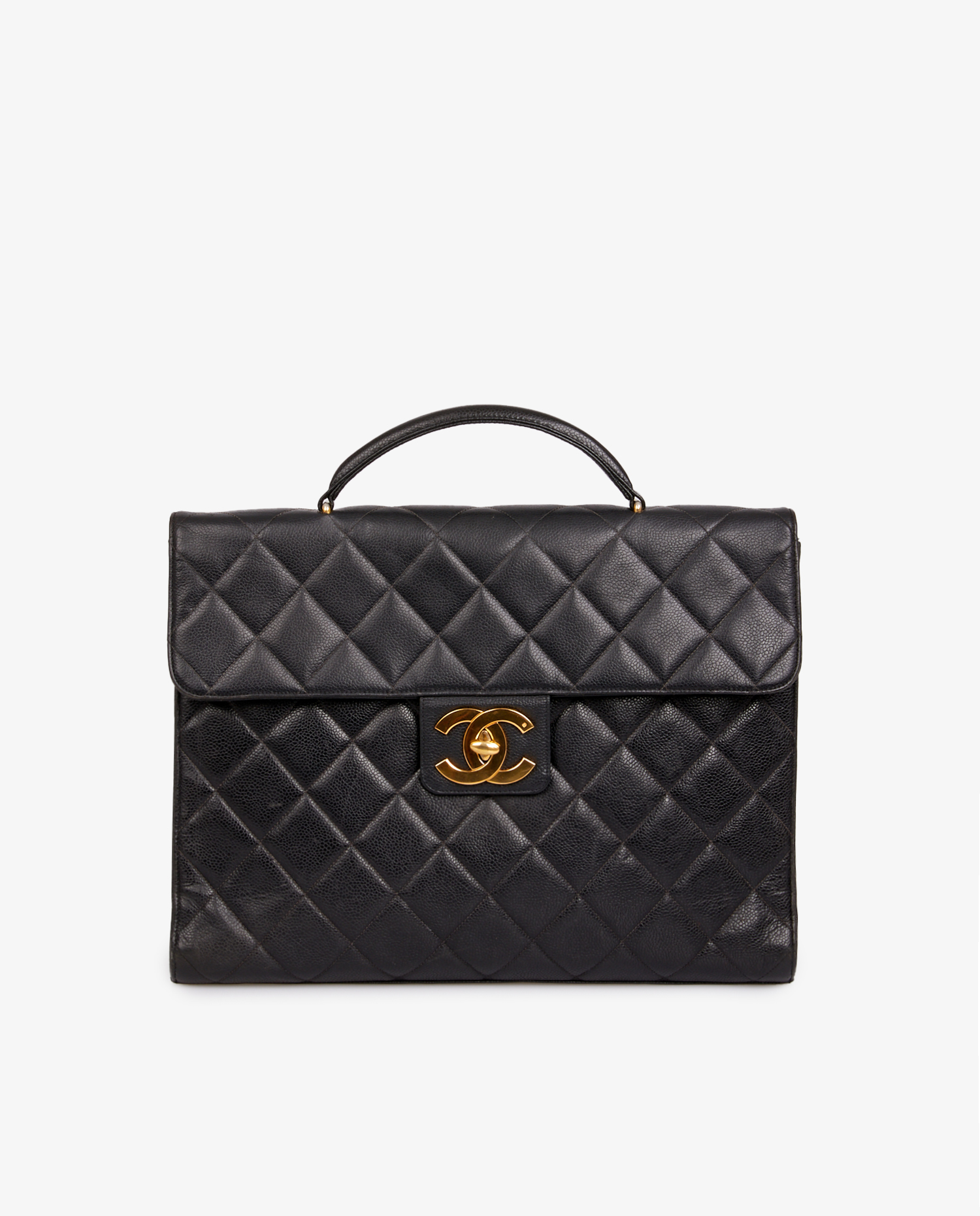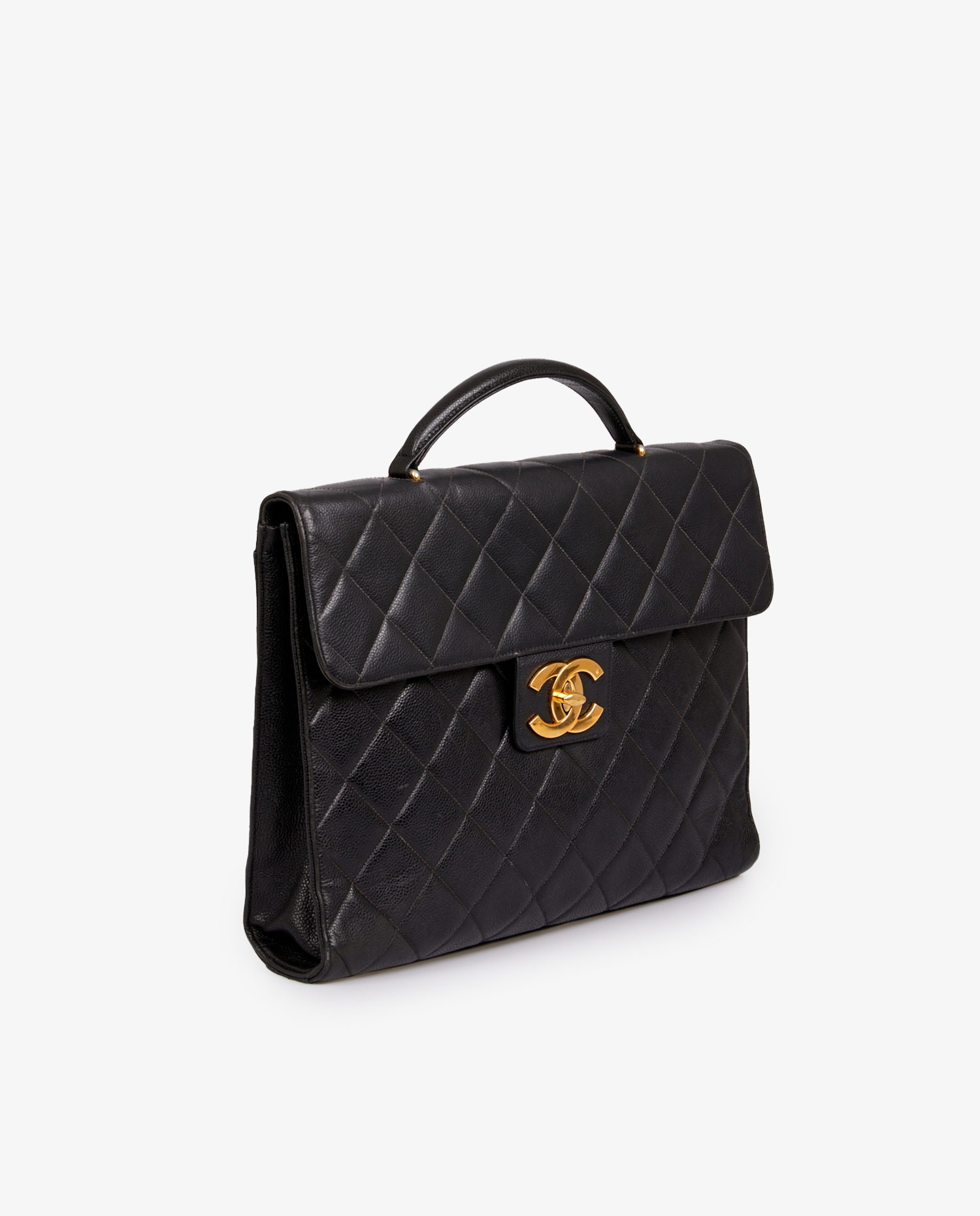Sacoche Chanel vintage en cuir grainé noir. L’intérieur est en cuir noir. Idéal pour y glisser ces documents et ordinateur. En très bon état.