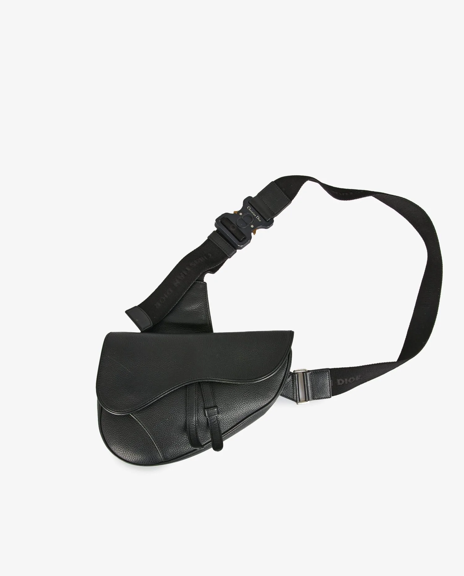 Saddle bag Dior pour homme en cuir grainé noir. Porté épaule ou crossbody. La bandoulière est réglable. Fermeture par bouton pression ainsi qu’un zip à l’intérieur. L’intérieur est en tissu noir. En très bon état.