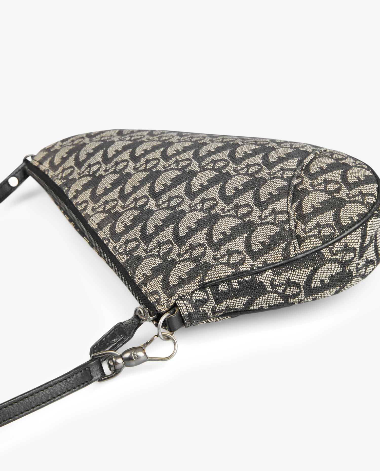 Mini Saddle Dior en tissu oblique. Fermeture zippée. Bijouterie argent. En très bon état.