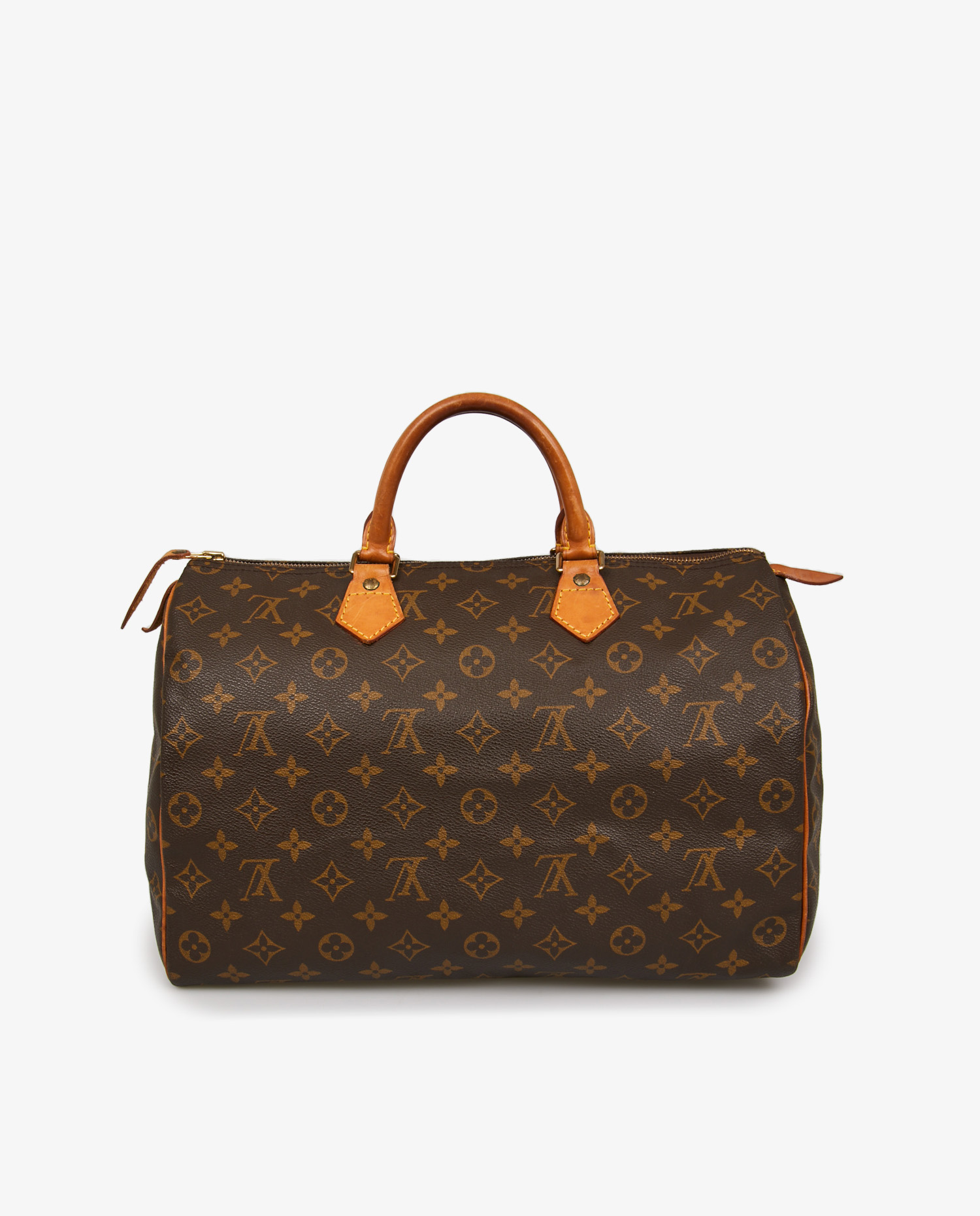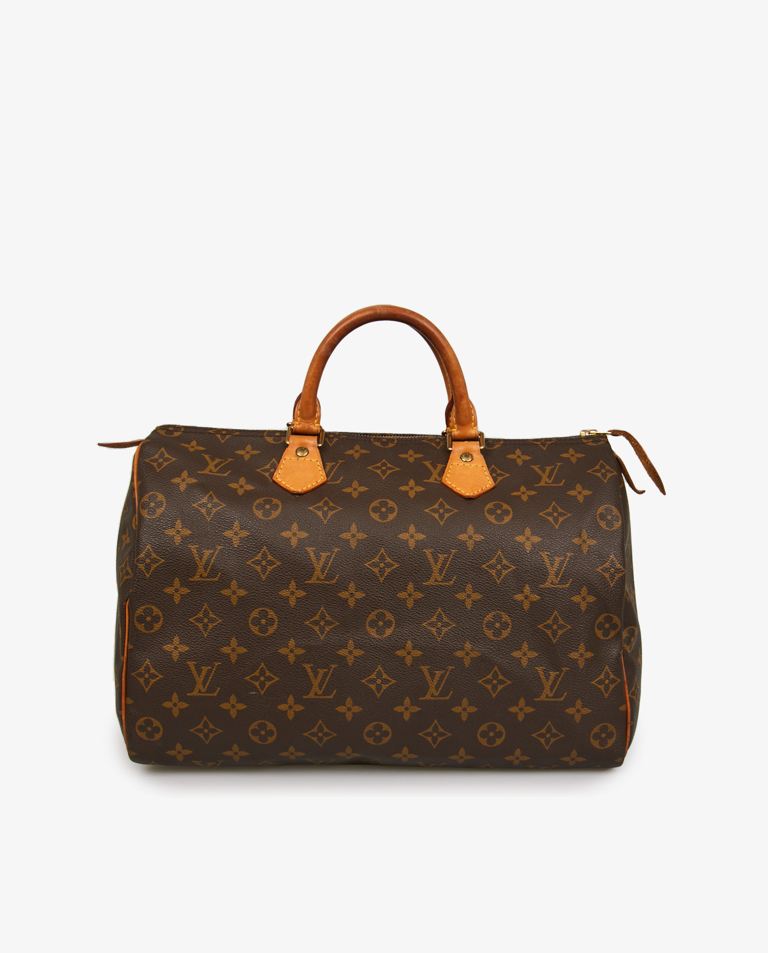 Le Speedy voit le jour dans les années 1930, imaginé comme une déclinaison plus compacte du Keepall, répondant à une demande croissante pour des sacs de ville légers mais spacieux. C’est dans les années 1960, grâce à la demande spécifique d’Audrey Hepburn pour une version plus petite, que le Speedy devient un modèle iconique. Le Speedy 35, lancé dans les décennies suivantes, devient un format intermédiaire très apprécié pour sa capacité de rangement sans excès d’encombrement. Il conserve toutes les caractéristiques historiques du modèle : forme cylindrique, absence de structure rigide, toile enduite et cuir naturel.