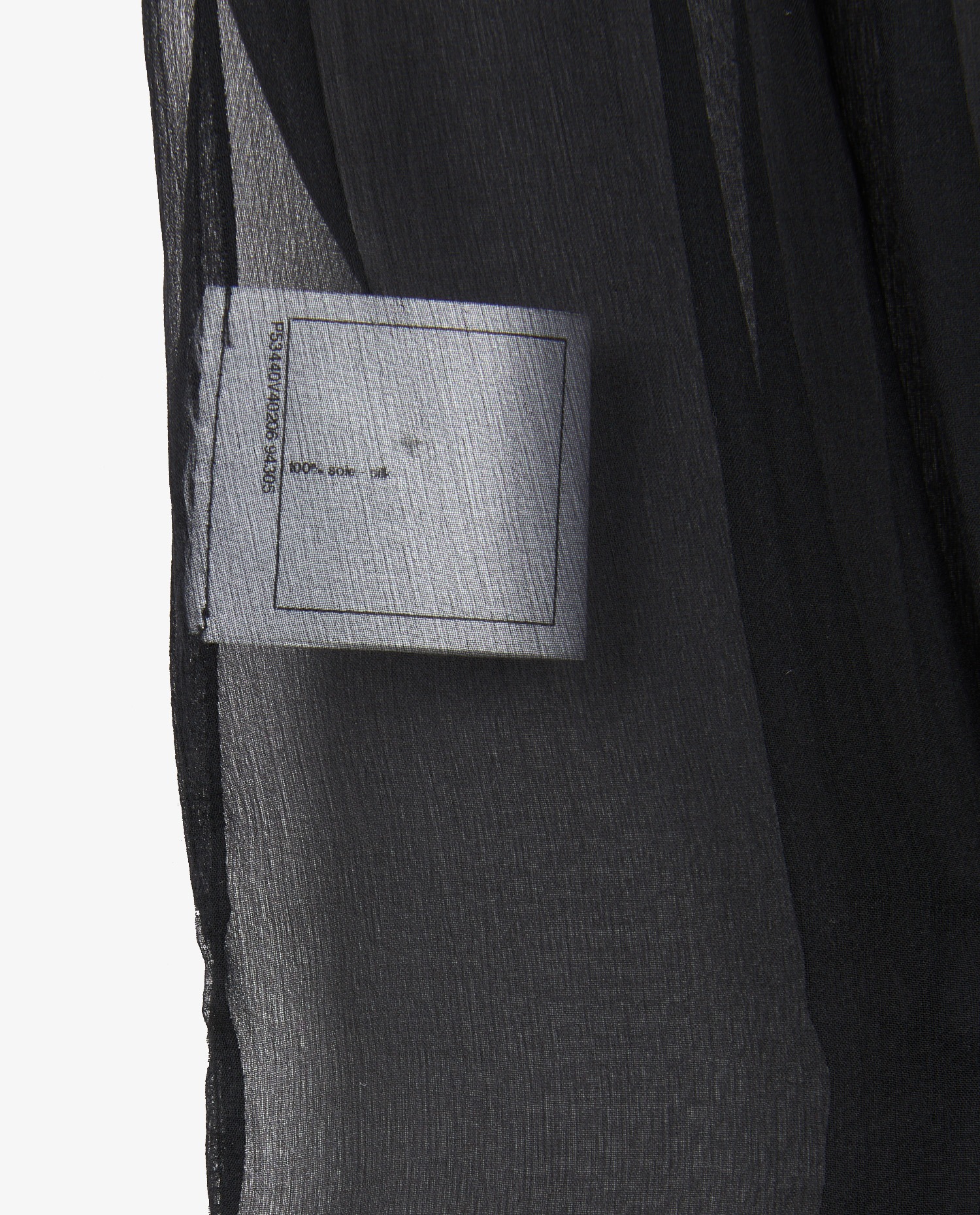 Top Chanel transparent en soie noire. Boutons sigles Chanel Paris. Cintré à la taille. Taille 34. En très bon état.