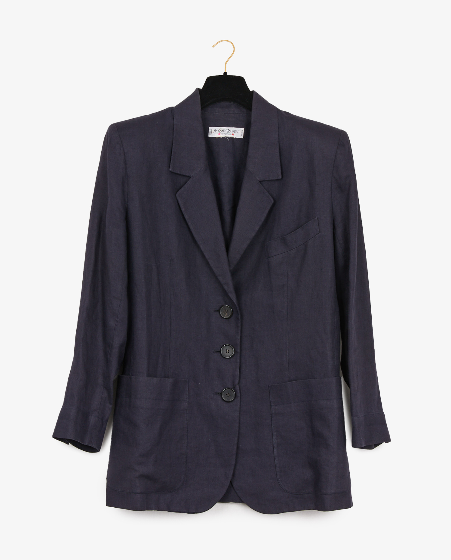 Veste oversize Yves Saint Laurent en lin bleu vintage. Epaulettes. En très bon état.