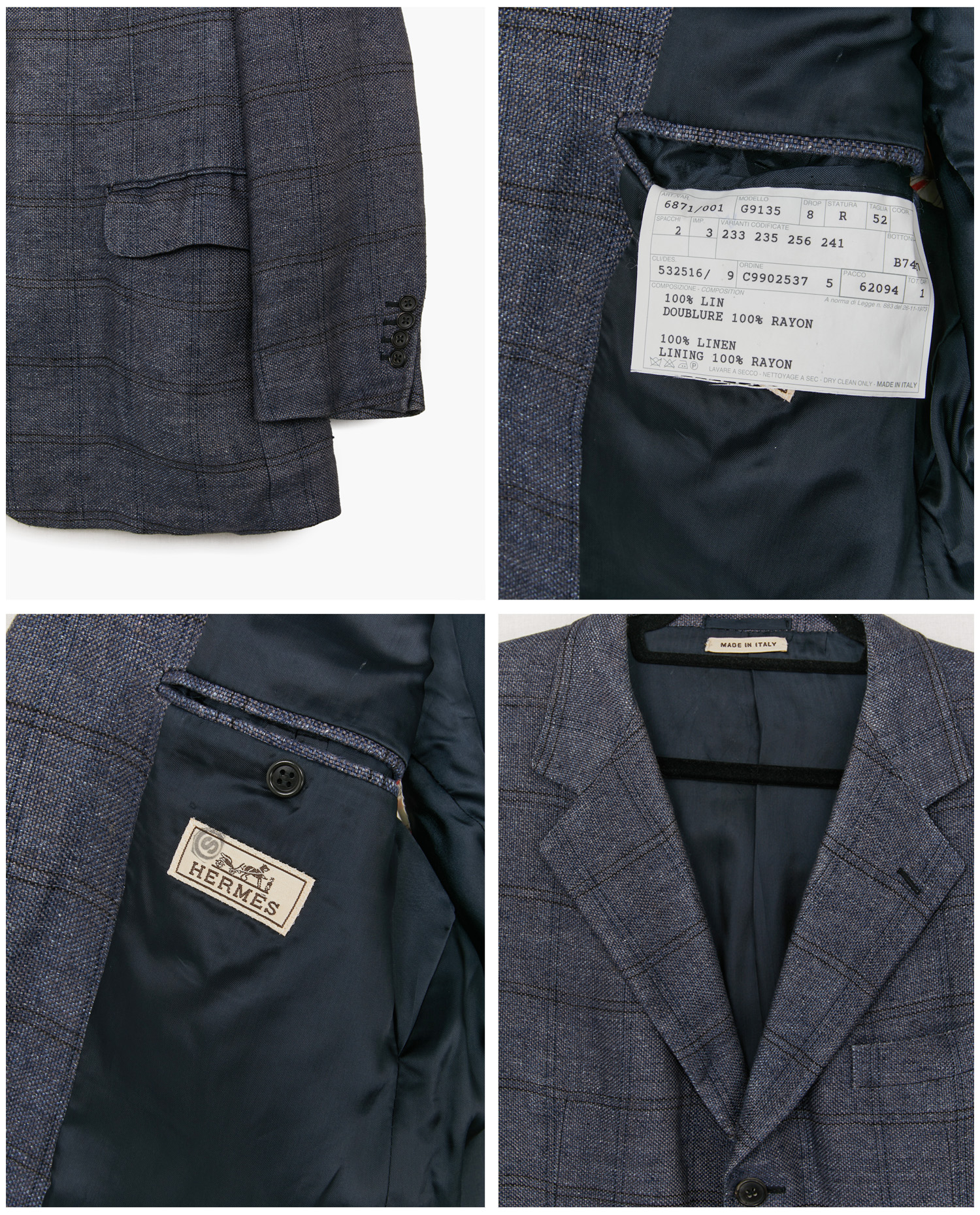 Depuis le milieu du XXe siècle, Hermès a su transposer son savoir-faire issu de la sellerie vers le prêt-à-porter masculin, en proposant des vestes et costumes aux finitions irréprochables. Le motif prince-de-galles, d’origine britannique, a été adopté par les grandes maisons françaises dès les années 50 pour habiller un homme moderne et raffiné. Cette veste témoigne de cette tradition d’élégance et de confort.